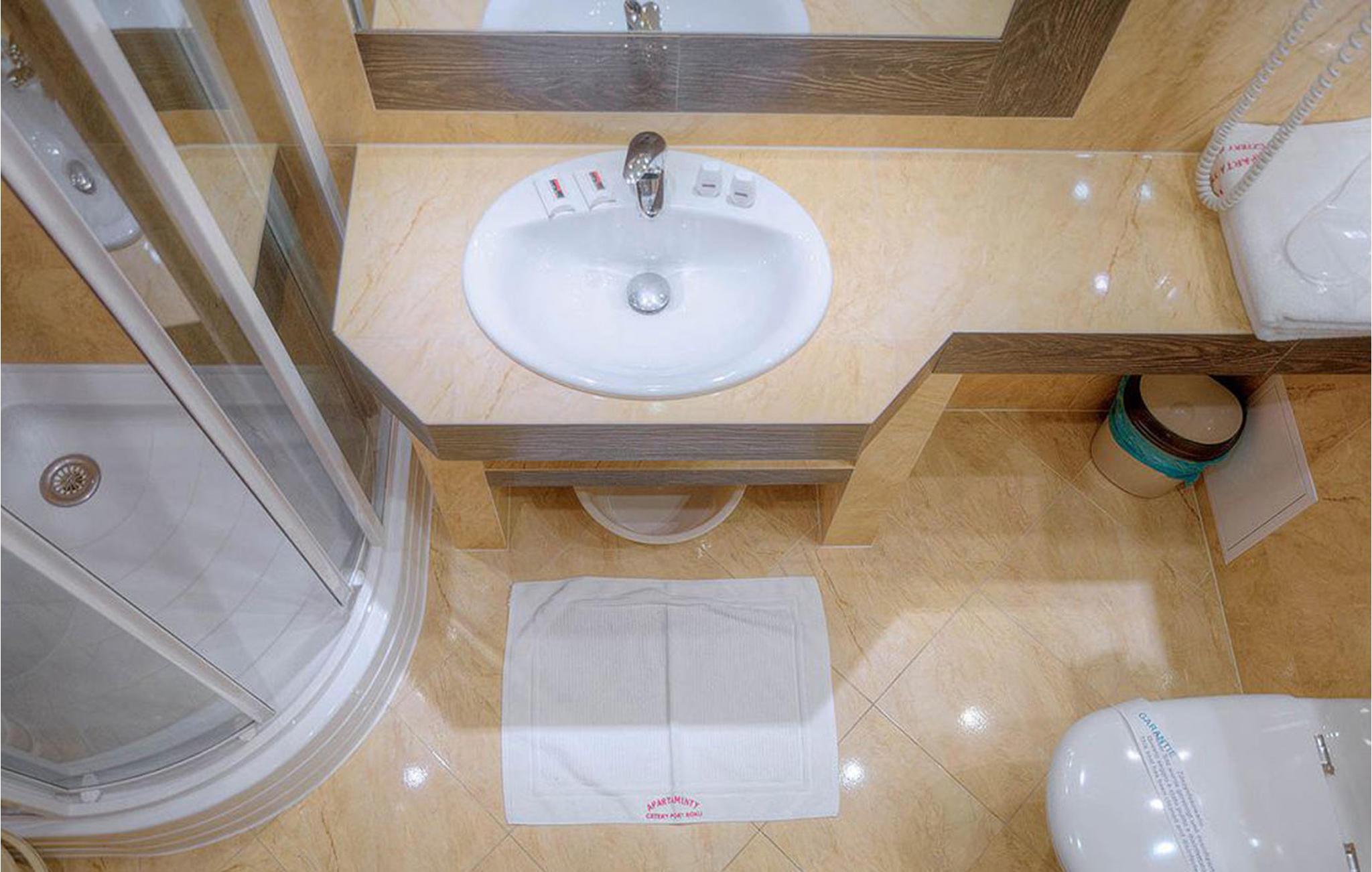 - WC mit warmem und kaltem Wasser, Dusche