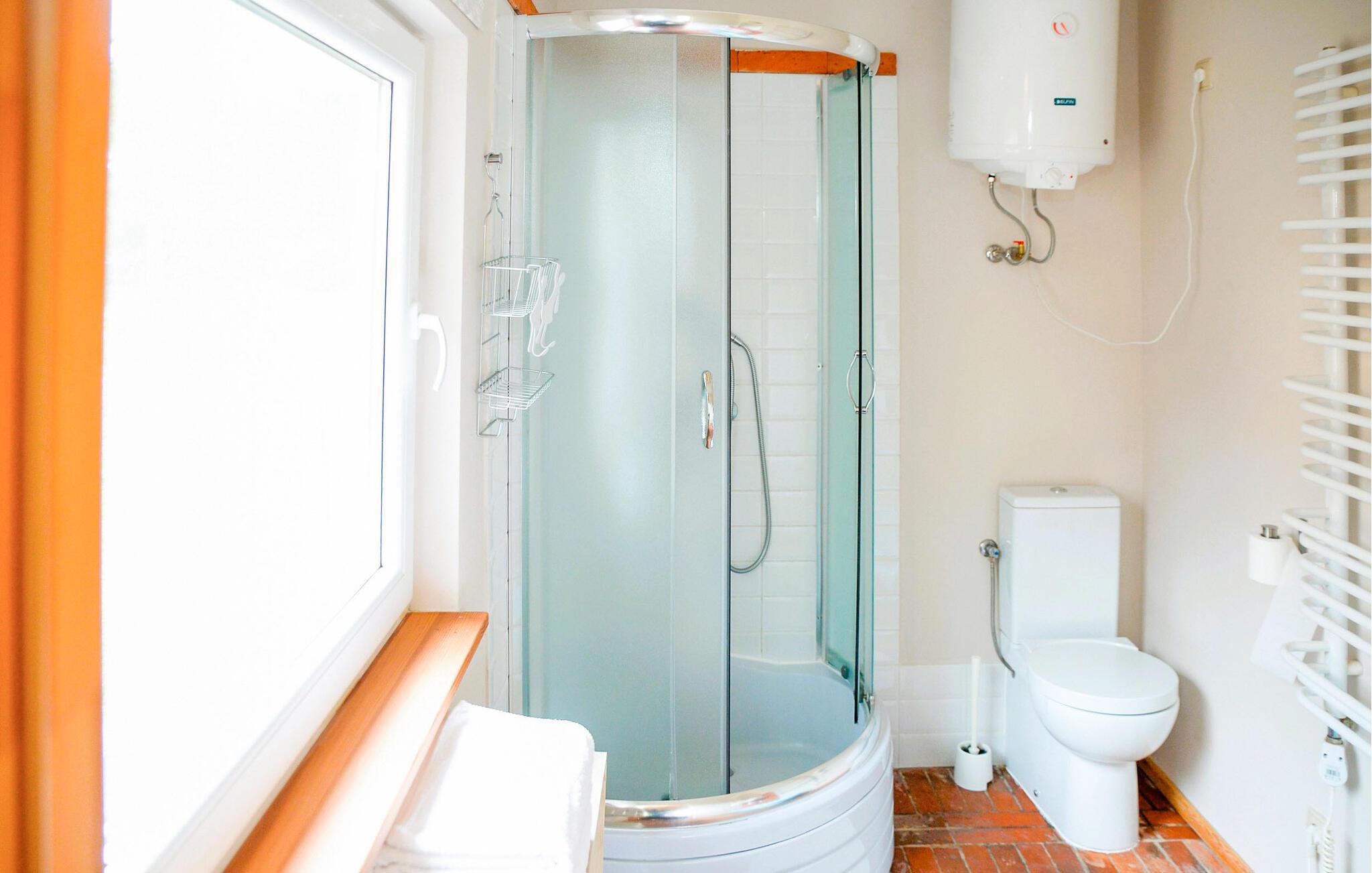 Badezimmer 4m2 (nr. 1) - WC. Warmes und kaltes Wasser. Dusche