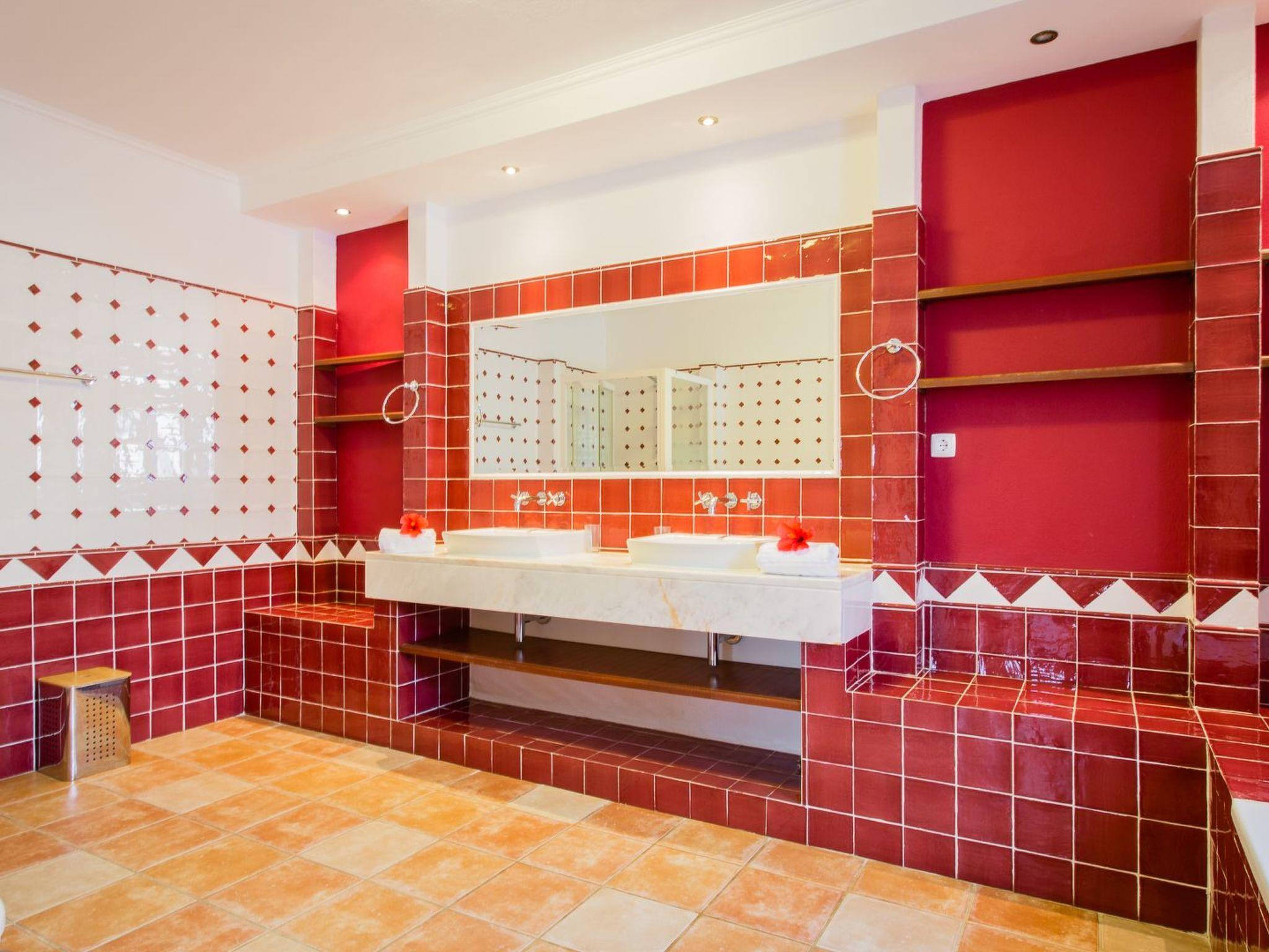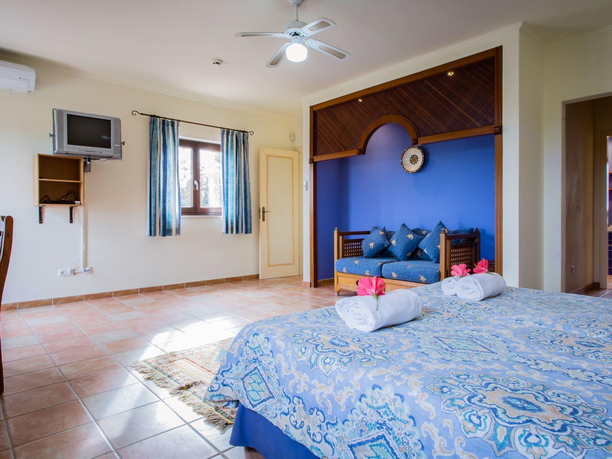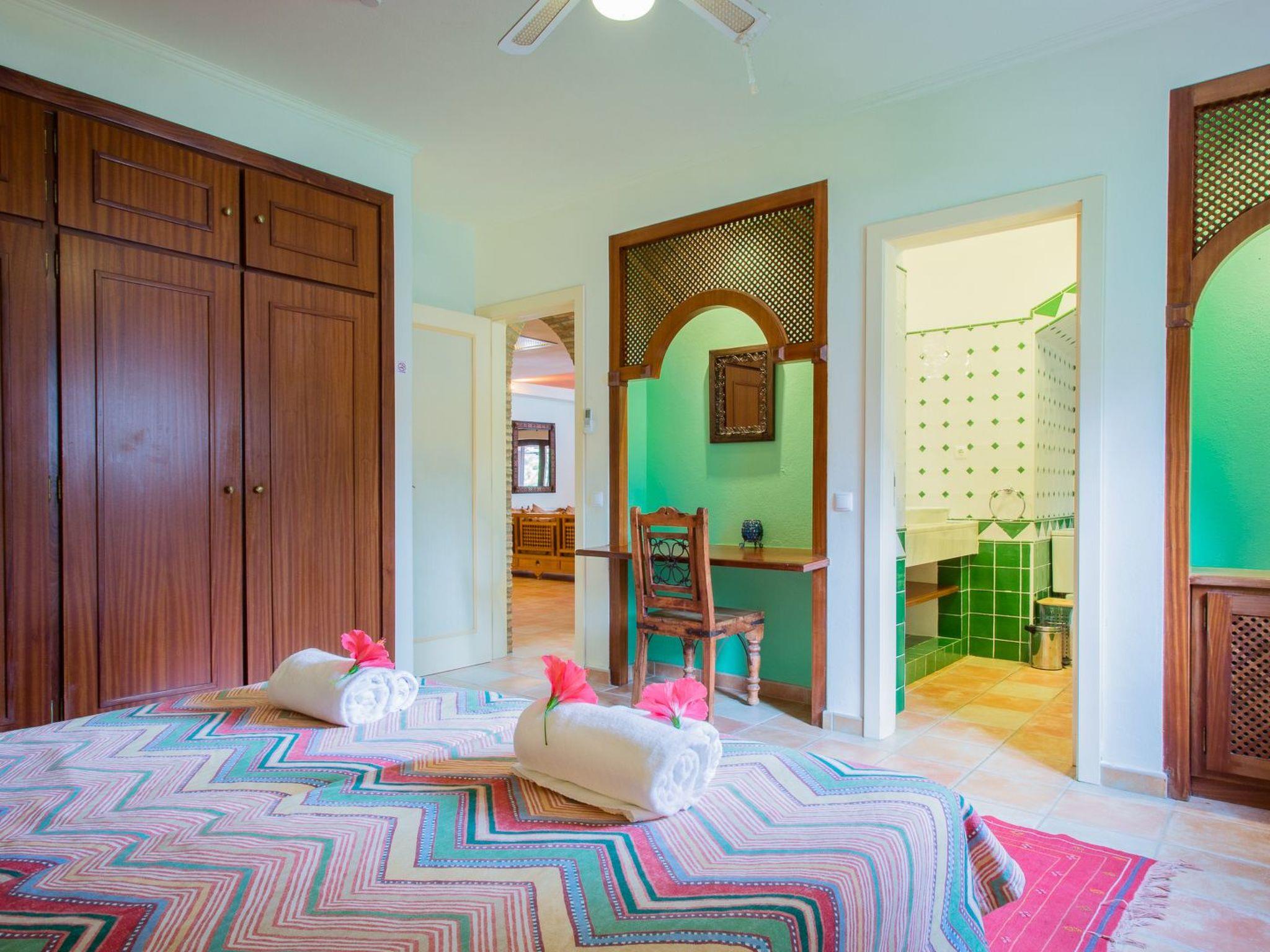 Die Villa verfügt über sieben (Doppel-)Schlafzimmer mit eigenem Bad. Vier Schlafzimmer befinden sich im Erdgeschoss und drei Schlafzimmer im ersten Stock. Alle Schlafzimmer sind mit Klimaanlage und Deckenventilatoren ausgestattet. Das Hauptschlafzimmer im Erdgeschoss (im Obergeschoss befindet sich ein zweites) hat Flügeltüren zur Terrasse und zum Swimmingpool. Im Studio (ca. 25 m2) befindet sich das achte (Doppel-)Schlafzimmer mit Bad (inkl. Dusche und WC), Küche und Wohn-/Schlafzimmer.