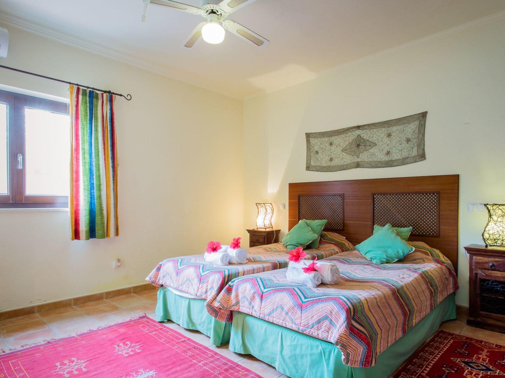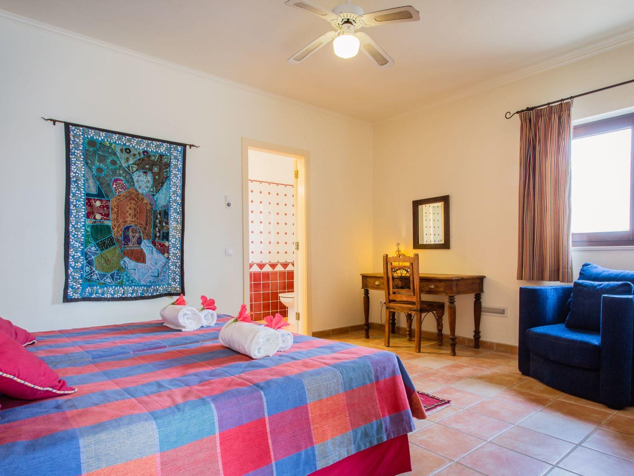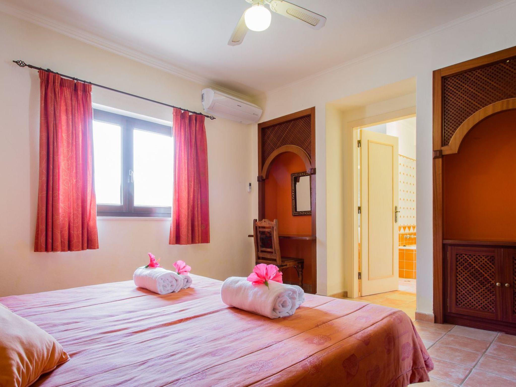 Die Villa verfügt über sieben (Doppel-)Schlafzimmer mit eigenem Bad. Vier Schlafzimmer befinden sich im Erdgeschoss und drei Schlafzimmer im ersten Stock. Alle Schlafzimmer sind mit Klimaanlage und Deckenventilatoren ausgestattet. Das Hauptschlafzimmer im Erdgeschoss (im Obergeschoss befindet sich ein zweites) hat Flügeltüren zur Terrasse und zum Swimmingpool. Im Studio (ca. 25 m2) befindet sich das achte (Doppel-)Schlafzimmer mit Bad (inkl. Dusche und WC), Küche und Wohn-/Schlafzimmer.