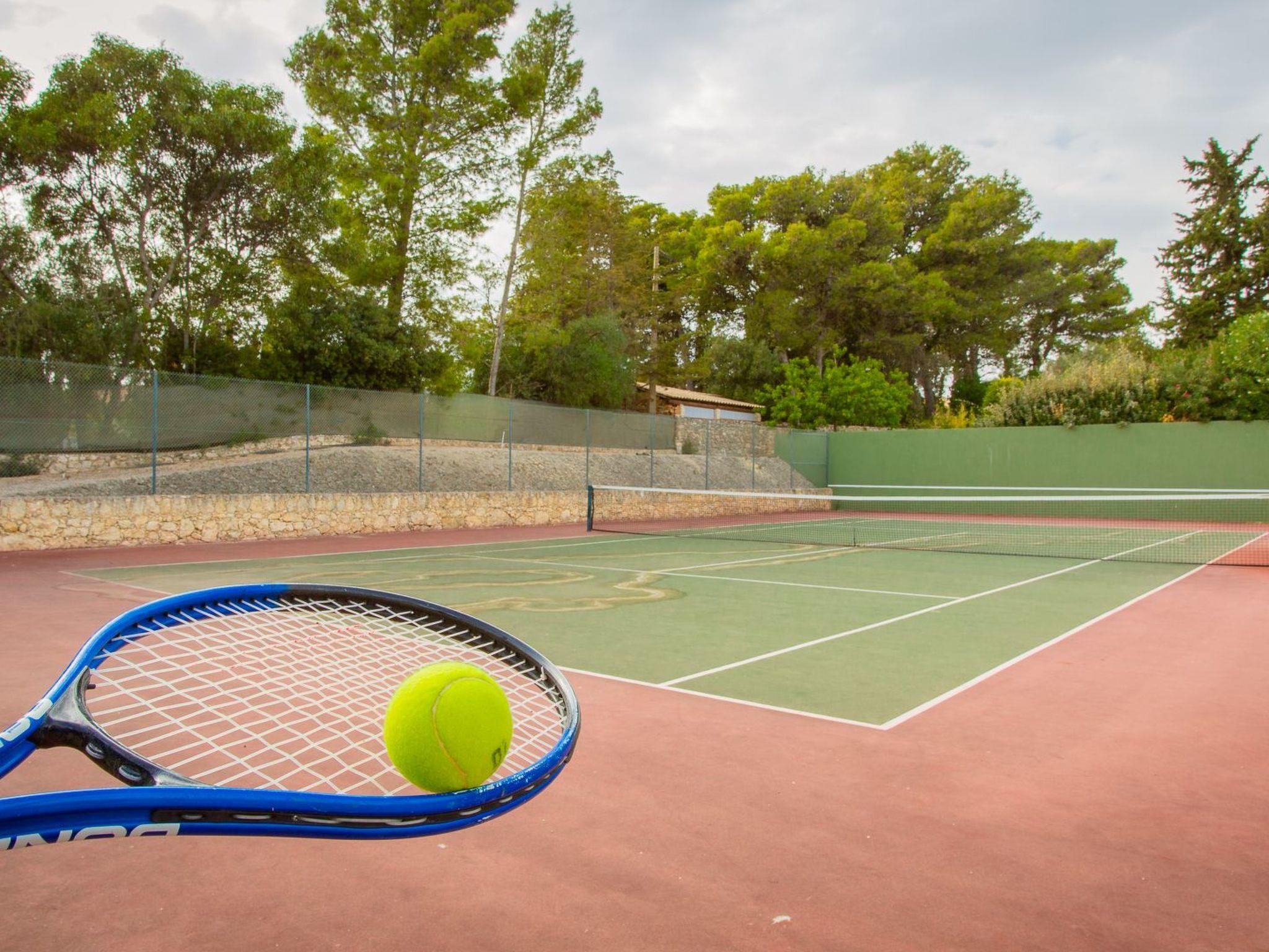 In dem weitläufigen Garten (5000 m2) mit vielen schönen Bäumen und blühenden Pflanzen befindet sich ein privater Tennisplatz (Schläger und Bälle sind selbst mitzubringen). Der Tennisplatz und das Schwimmbad sind direkt neben dem Haus, so dass Sie einen Blick auf alles haben. Im Garten gibt es viele Palmen, Oliven- und Zitronenbäume.