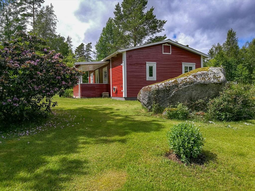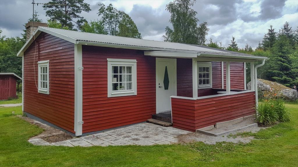 Das typische rote Ferienhaus Ella befindet sich in Alleinlage im tiefen Wald in der südschwedischen Region Småland in der Nähe des Ortes Ryd. Mit etwas Glück kannst du dort sogar auf Elche treffen. Der nächstgelegene Badeplatz befindet sich 9,6 km entfernt am See Sandören, wo auch geangelt werden darf. Die hierfür erforderliche Angelkarte kannst du online auf iFiske kaufen, wo du in eigener Verantwortung auch Boote mieten kannst. Der große und populäre See Åsnen mit Naturparks und Badeplätzen ist ungefähr 19 Kilometer entfernt. Lebensmittelgeschäfte, Restaurants und Cafés findest du in den Orten Ryd (ca. 8 km) und Häradsbäck (ca. 11 km). Lohnenswerte Tagesziele könnten sein: - Der berühmte Autofriedhof "Bilkyrkogården Kyrko mosse" (6 km) - Das IKEA-Museum in Älmhult (30 Minuten) - Der Elchpark "Älgriket" bei Tingsryd (30 Minuten) - Die Ostseeküste ist ca. 45 km entfernt. Zu empfehlen ist beispielsweise ein Besuch der Hafenstadt Karlshamn.