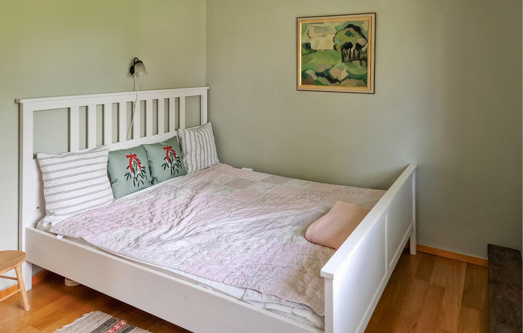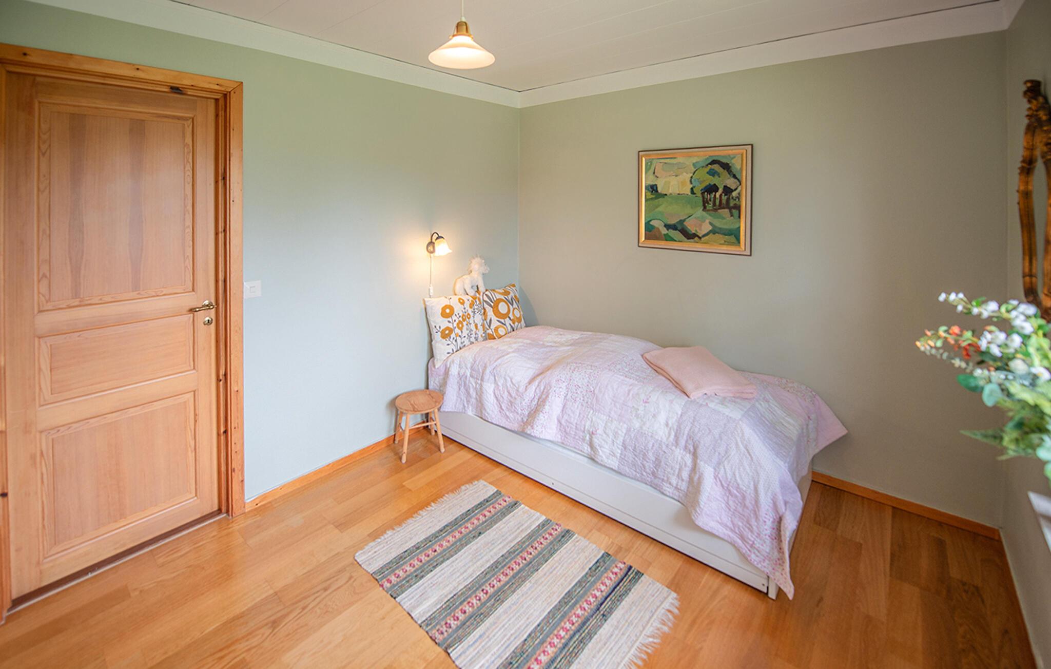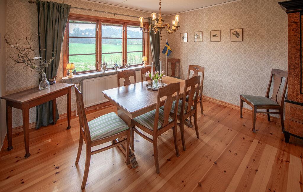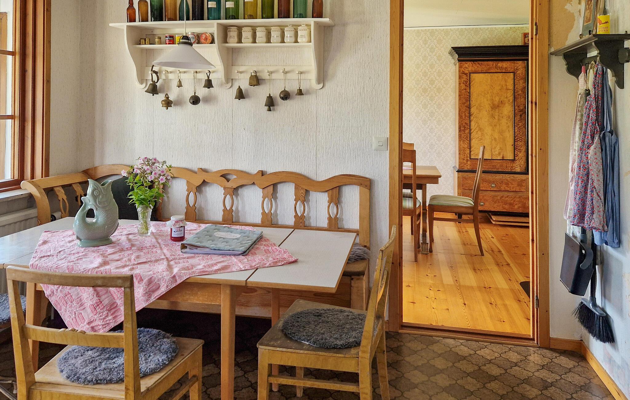 Dieses helle und mit viel Liebe zum Detail eingerichtete Ferienhaus begrüßt Sie mit echter Wohlfühlatmosphäre. Kochen Sie gemeinsam in der geräumigen, gut ausgestatteten Küche und speisen Sie mit Blick in die Naturlandschaft – vielleicht schauen hier Kraniche, Hasen, Füchse oder Hirsche vorbei. Entfachen Sie den Kaminofen, nehmen Sie auf dem Sofa Platz und genießen Sie die Aussicht auf den Gårdsjön und den kleinen Badeteich,