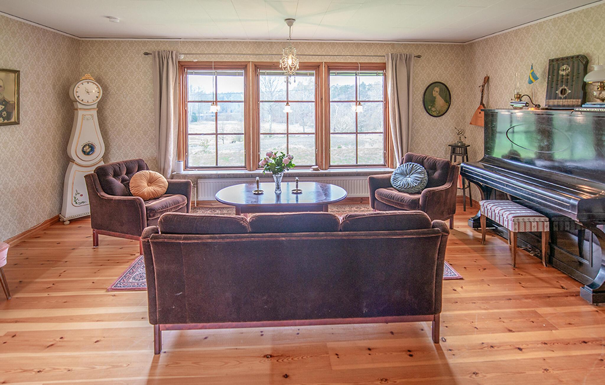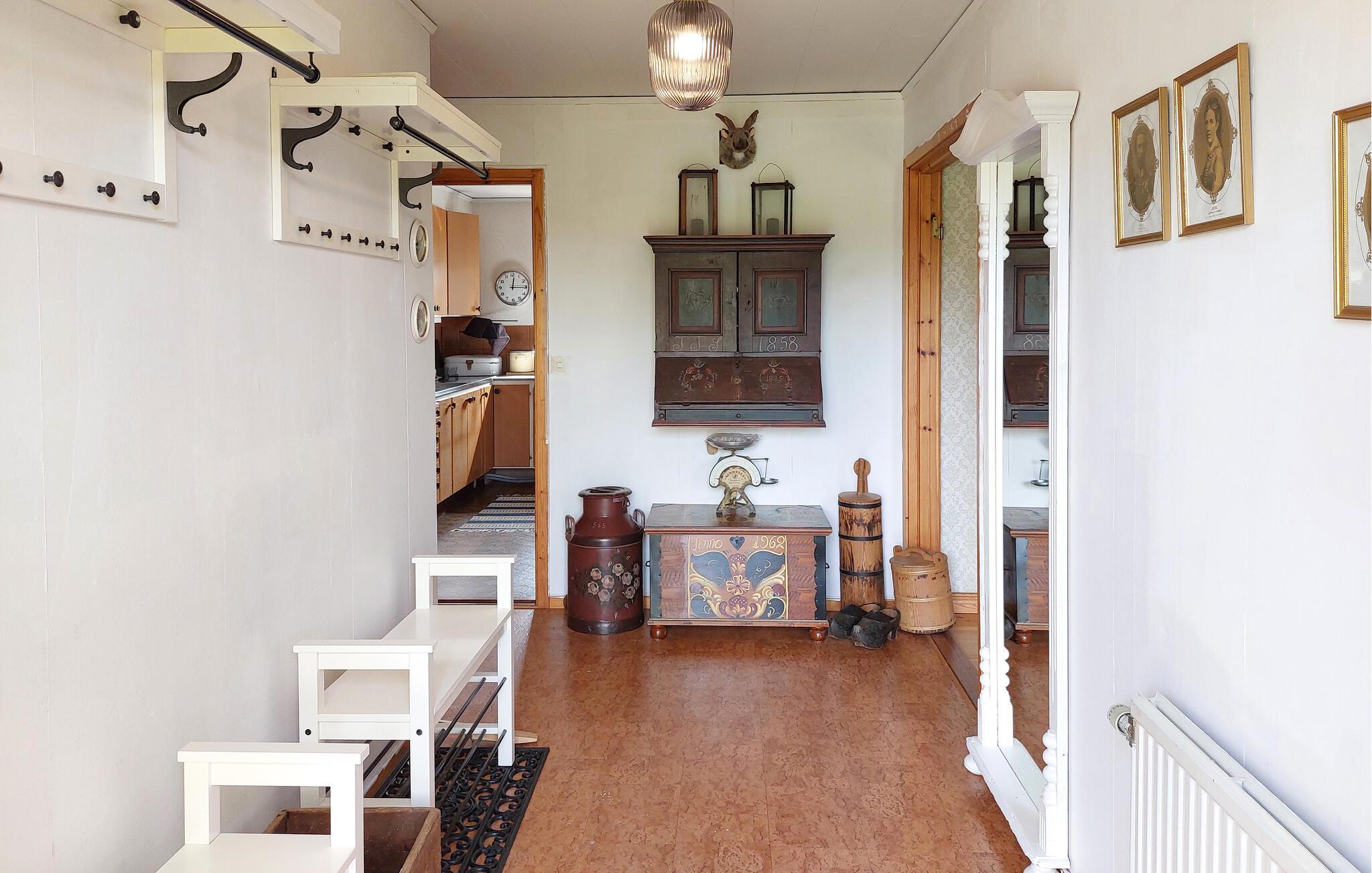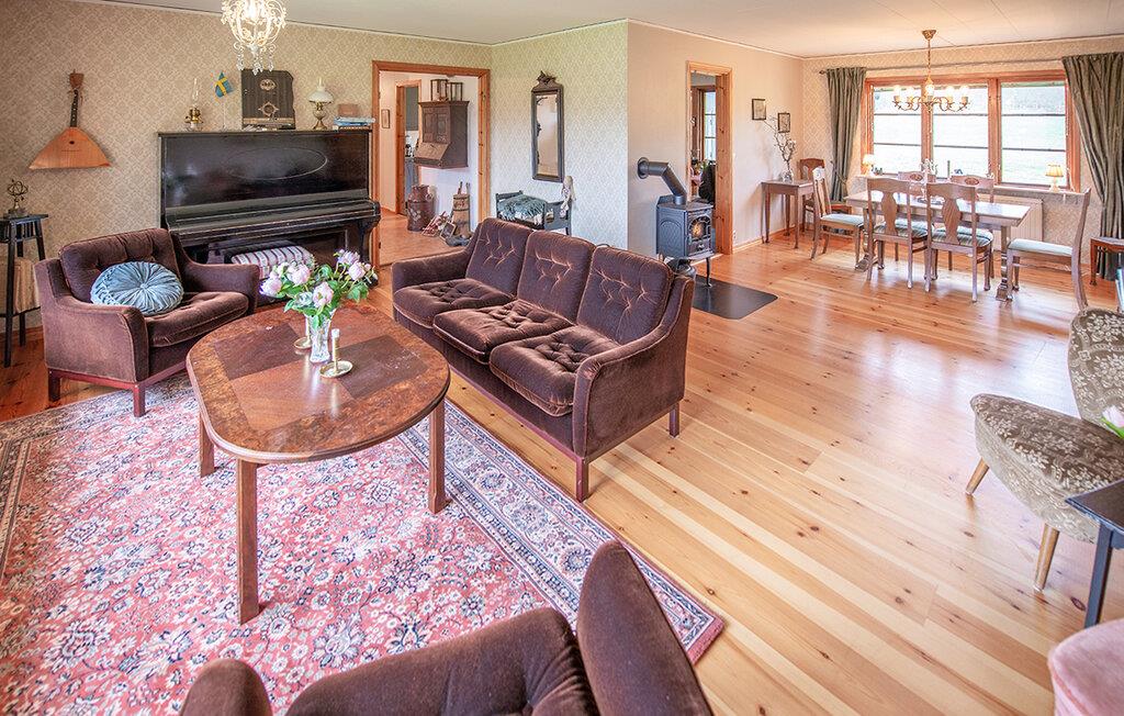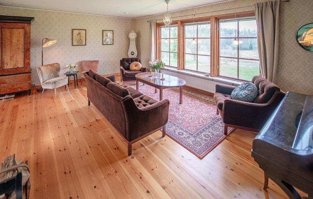 Dieses helle und mit viel Liebe zum Detail eingerichtete Ferienhaus begrüßt Sie mit echter Wohlfühlatmosphäre. Kochen Sie gemeinsam in der geräumigen, gut ausgestatteten Küche und speisen Sie mit Blick in die Naturlandschaft – vielleicht schauen hier Kraniche, Hasen, Füchse oder Hirsche vorbei. Entfachen Sie den Kaminofen, nehmen Sie auf dem Sofa Platz und genießen Sie die Aussicht auf den Gårdsjön und den kleinen Badeteich,