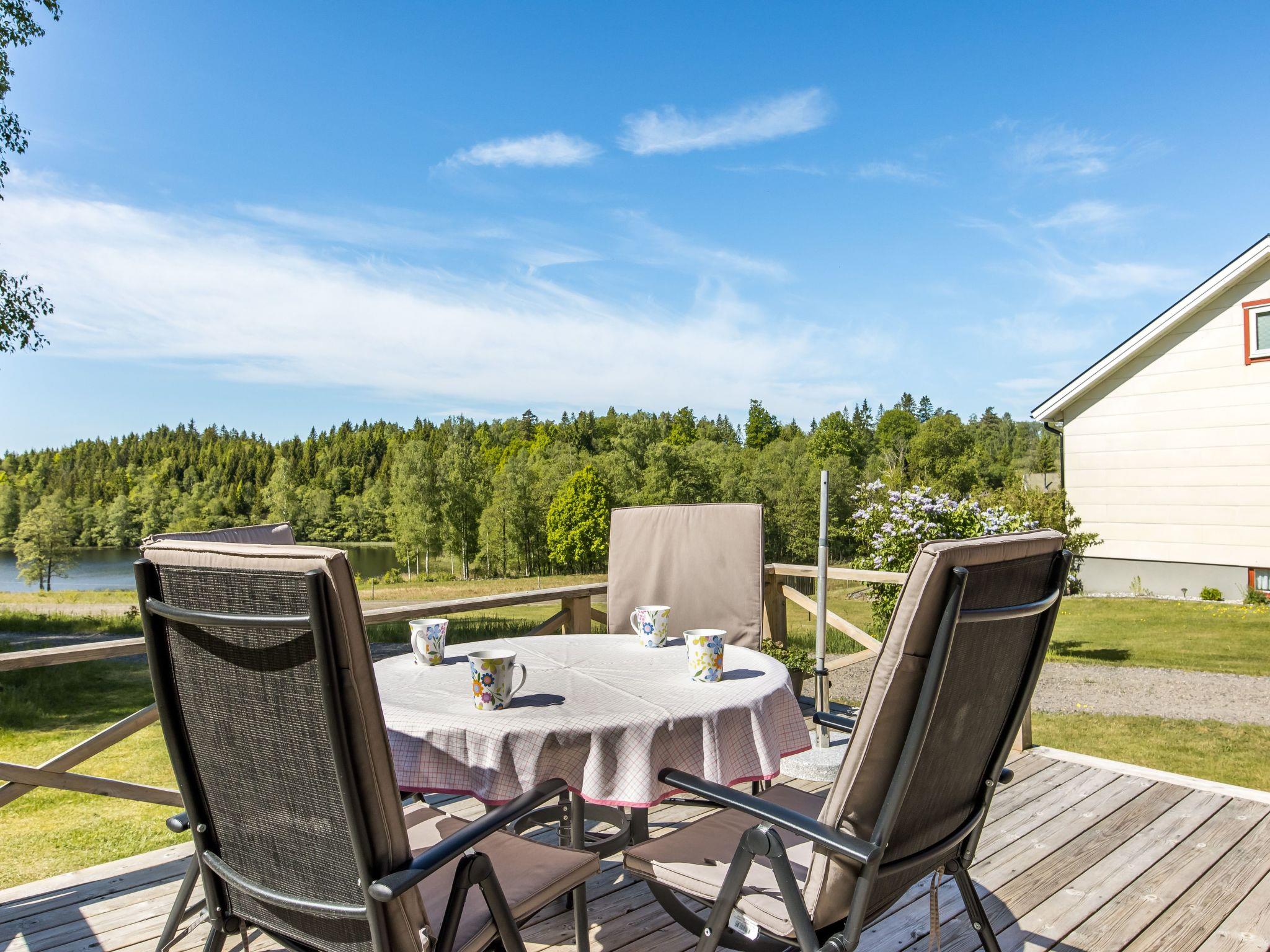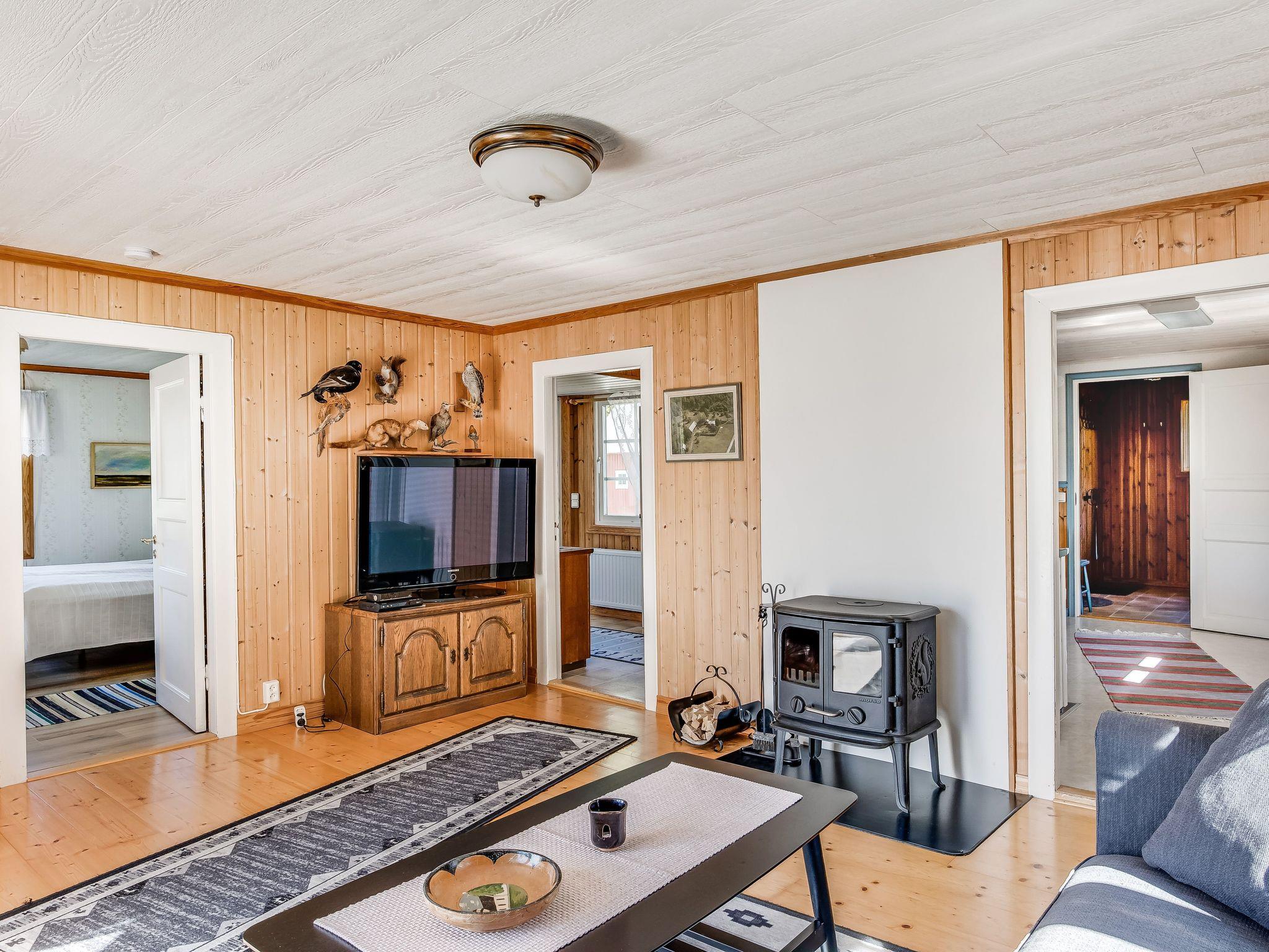 "Mjöhult Utsikten", 3-Zimmer-Haus 80 m2. Hell, gemütlich eingerichtet: Wohn-/Schlafzimmer mit 1 Doppeldiwanbett, Schwedenofen und Sat-TV. Ausgang zur Veranda. 1 Doppelzimmer mit 1 Doppelbett und Schwedenofen (nur Deko). 1 Zimmer mit 1 Doppelbett. Ausgang zur Veranda. Küche (Backofen, Geschirrspüler, 4 Glaskeramikplatten, Toaster, Wasserkocher, Mikrowelle, Tiefkühler, elektrische Kaffeemaschine) mit Schwedenofen (nur Deko), Esstisch. Dusche/WC. Heizung. Holzdielenboden. Terrassenmöbel, Gartengrill (mobil). Sicht auf den See. Zur Verfügung: Waschmaschine, Bügeleisen, Kinderhochstuhl, Babybett. Bitte beachten: ein Doppelzimmer liegt außerhalb der Wohnung. Nichtraucher-Haus. Keine interne Verbindung zwischen den separaten Wohneinheiten.