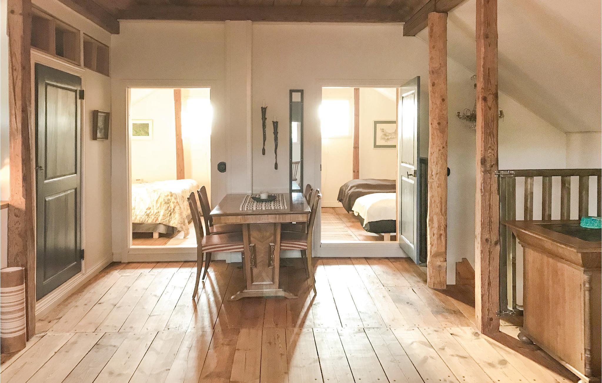 Geräumiges Ferienhaus in wunderschöner Lage auf einem bewirtschafteten Bauernhof. Das Haus verfügt über große Räume zum Entspannen und eine große überdachte Veranda mit herrlichem Blick auf Felder und Wälder. Das Gebiet bietet gute Angelmöglichkeiten mit vier Seen im Umkreis von 1,6 km, die im selben Angelschein enthalten sind. Feines Eislaufen auf dem See unterhalb des Hauses und auf mehreren Seen ringsum.