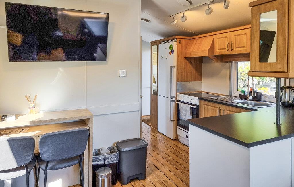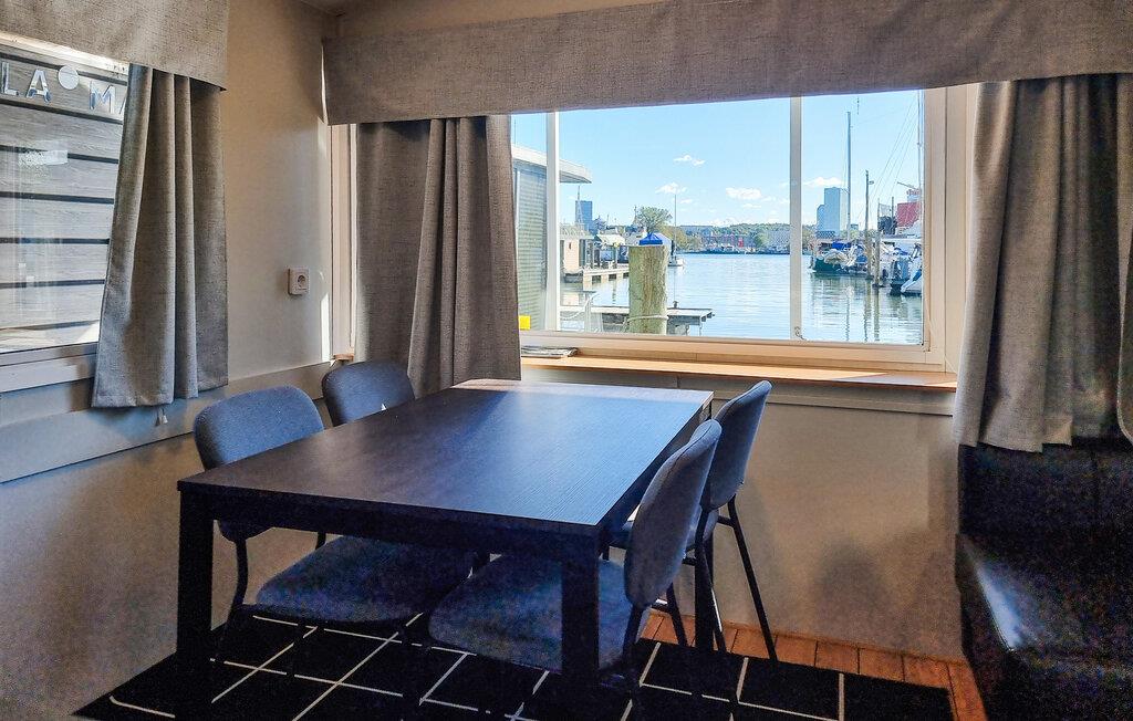 Dieses Hausboot liegt direkt an der Hafenmole und bietet Ihnen eine schöne Panoramaaussicht aufs Wasser. Ein lichtdurchfluteter Wohnraum, ein bequemes Sofa und eine praktische Küche schaffen eine entspannte Stimmung, in der Sie schnell in den Urlaubsmodus kommen. Verbringen Sie erholsame Stunden beim Lesen oder Musikhören oder probieren Sie gemeinsam neue Rezepte beim Kochen aus.