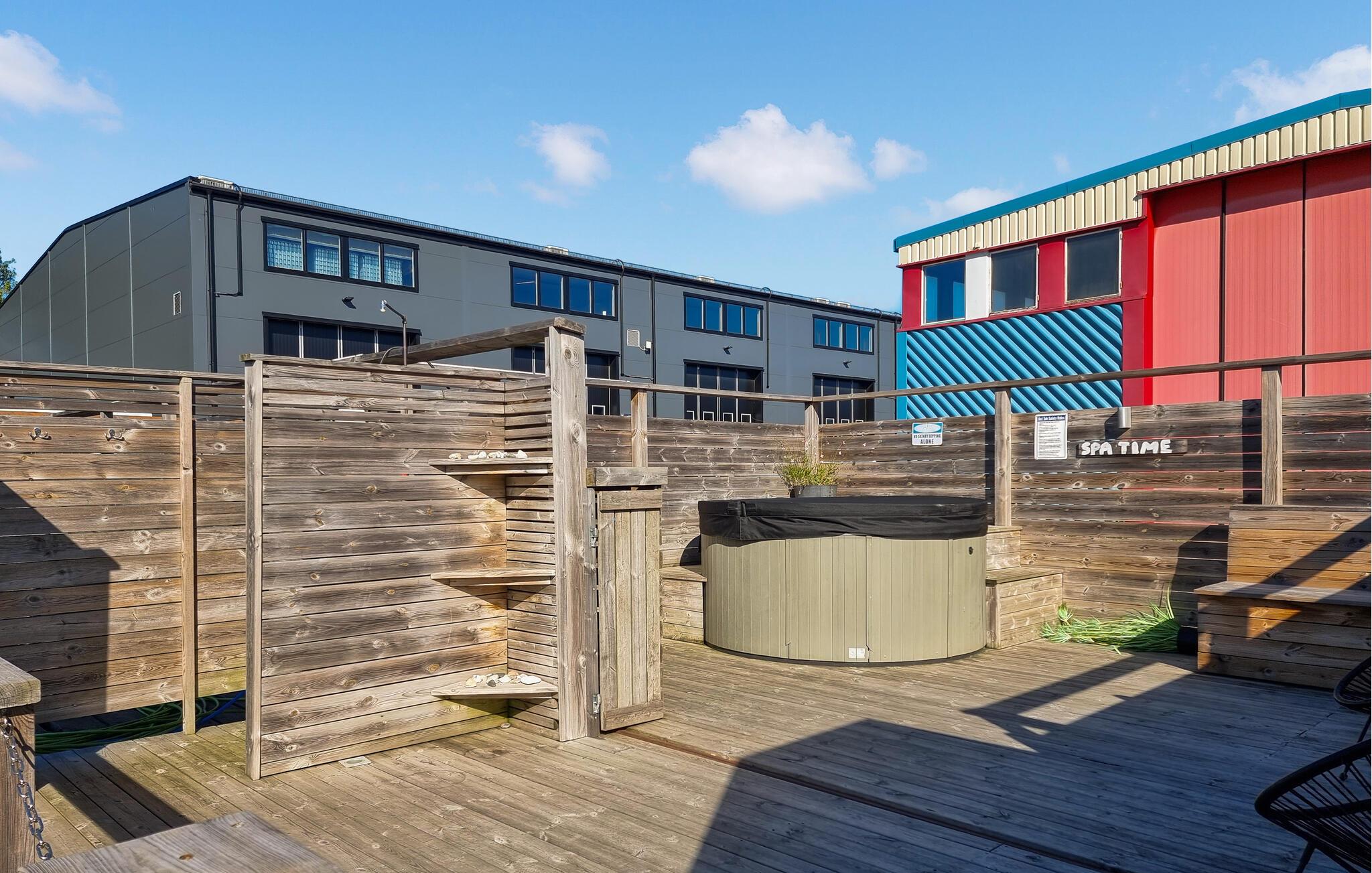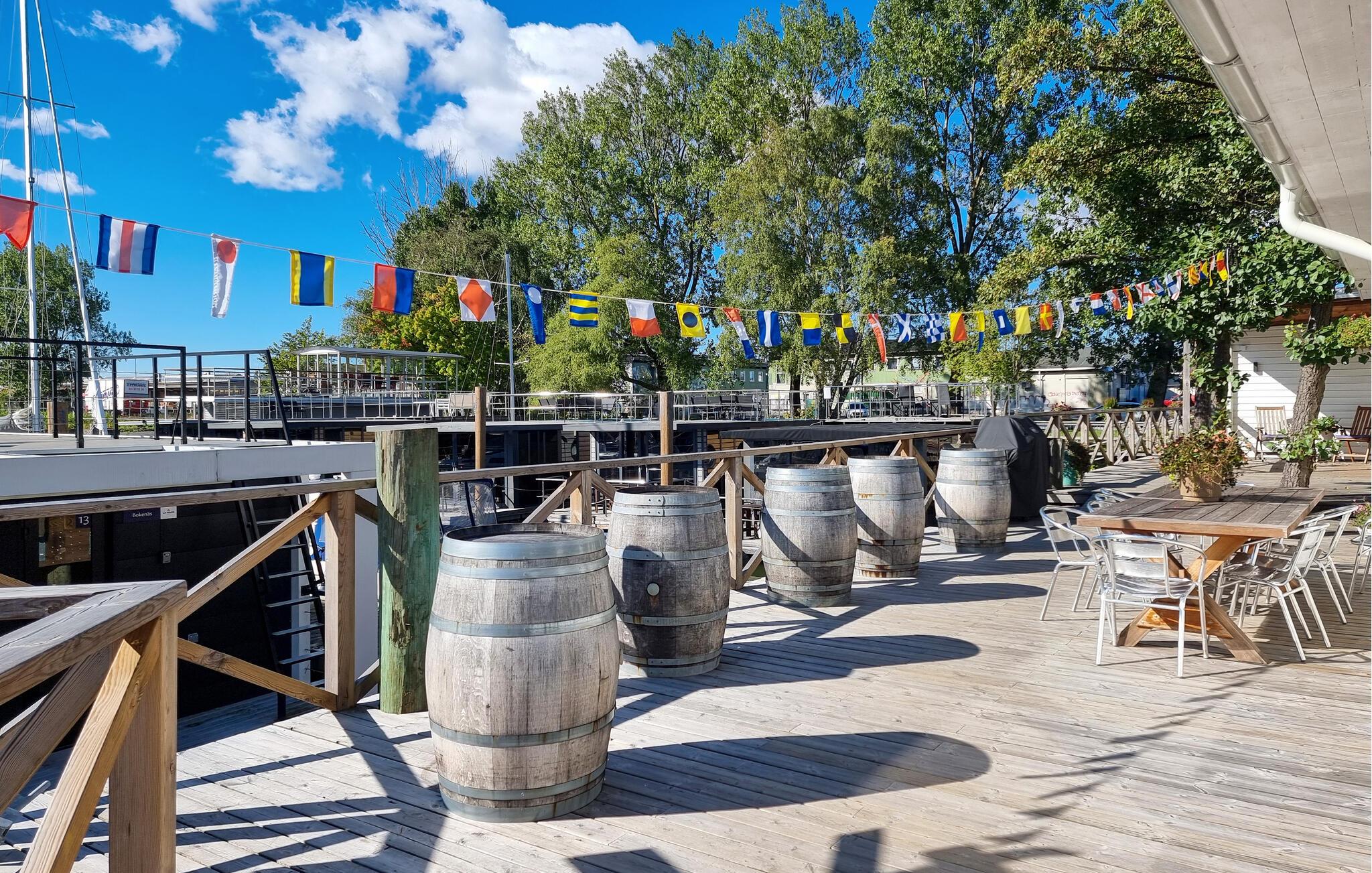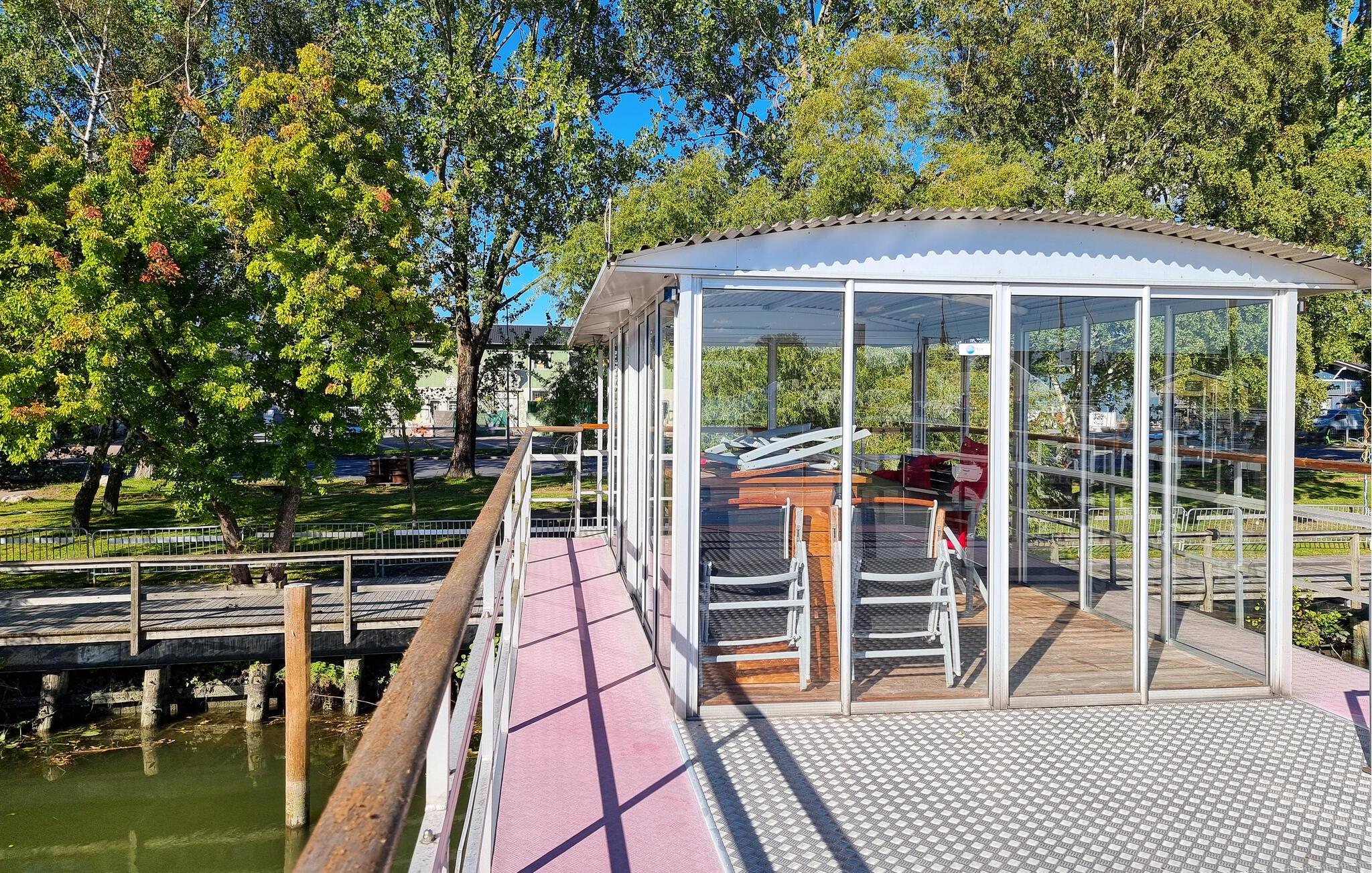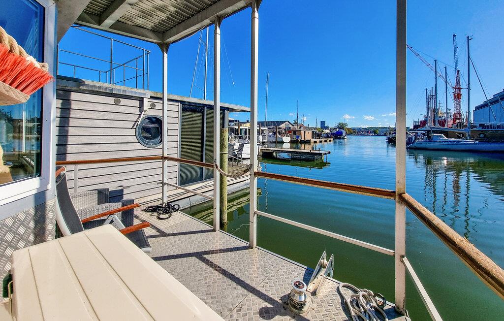 Öffnen Sie morgens die Tür zur Terrasse und lassen Sie die Hafenstimmung hereinwehen. Setzen Sie sich nach draußen, frühstücken Sie in Ruhe und genießen Sie das minimale Schaukeln des Hausbootes. Wenn Sie sich nach wohliger Wärme sehnen, sind entspannte Stunden in der gemeinsamen Sauna genau das Richtige für Sie.