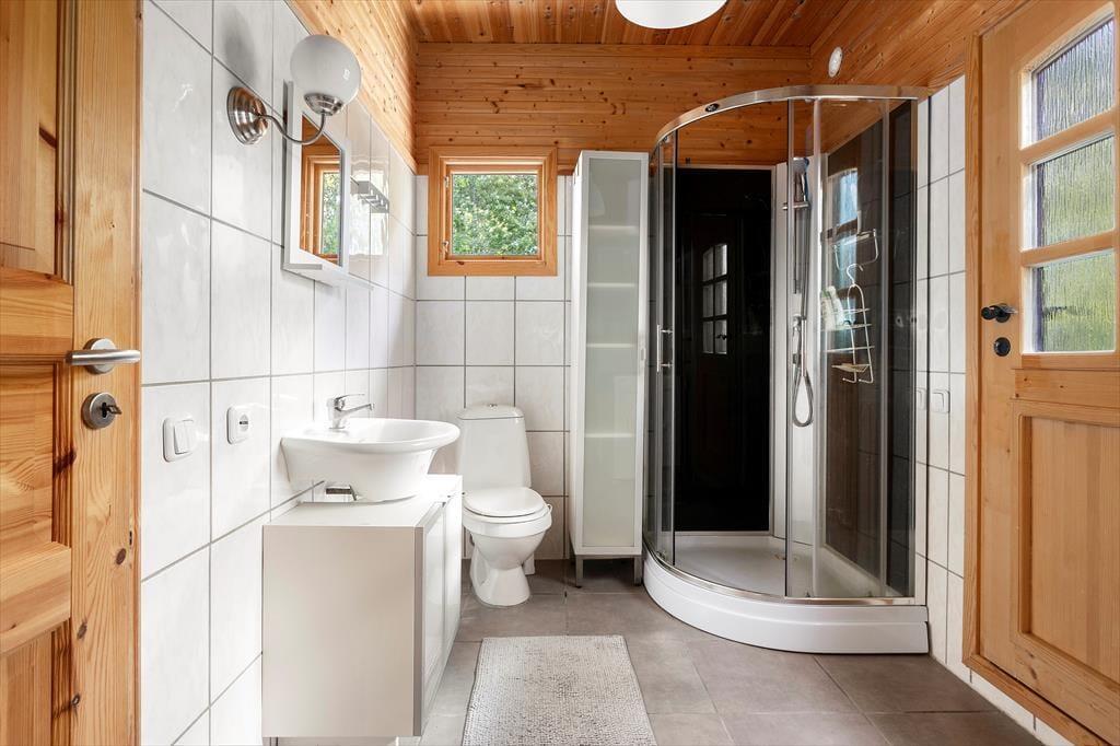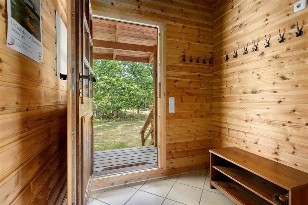 Das erst 2012 neu erbaute Ferienhaus bietet auf etwa 80 m² Wohnfläche eine sehr gute, moderne Ausstattung. Der Wohn- und Essbereich sowie die Küche sind miteinander kombiniert und mit einer gemütlichen Sitzecke mit SAT-TV (deutsche Programme), Kaminofen sowie einer dort integrierten Essecke ausgestattet. Die Küchenzeile verfügt unter anderem über eine Kühl-Gefrierkombination, einen Elektroherd mit Backofen, Mikrowelle und Kaffeemaschine. Ein Kinderhochstuhl ist ebenfalls vorhanden. Darüber hinaus gibt es ein modernes und gefliestes Badezimmer mit moderner Duschkabine, WC, Waschmaschine und einer geräumigen Sauna. Das Haus verfügt über zwei Schlafzimmer, eines davon ist mit einem Doppelbett, das zweite mit zwei guten Einzelbetten möbliert. Das Haus hat fließend kaltes und warmes Wasser und kann sowohl elektrisch als auch mit dem Kaminofen beheizt werden. Auf der großen, teilweise überdachten Terrasse stehen den Gästen Gartenmöbel und Grill zur Verfügung. Am See liegt außerdem ein Ruderboot zur freien Nutzung bereit.
