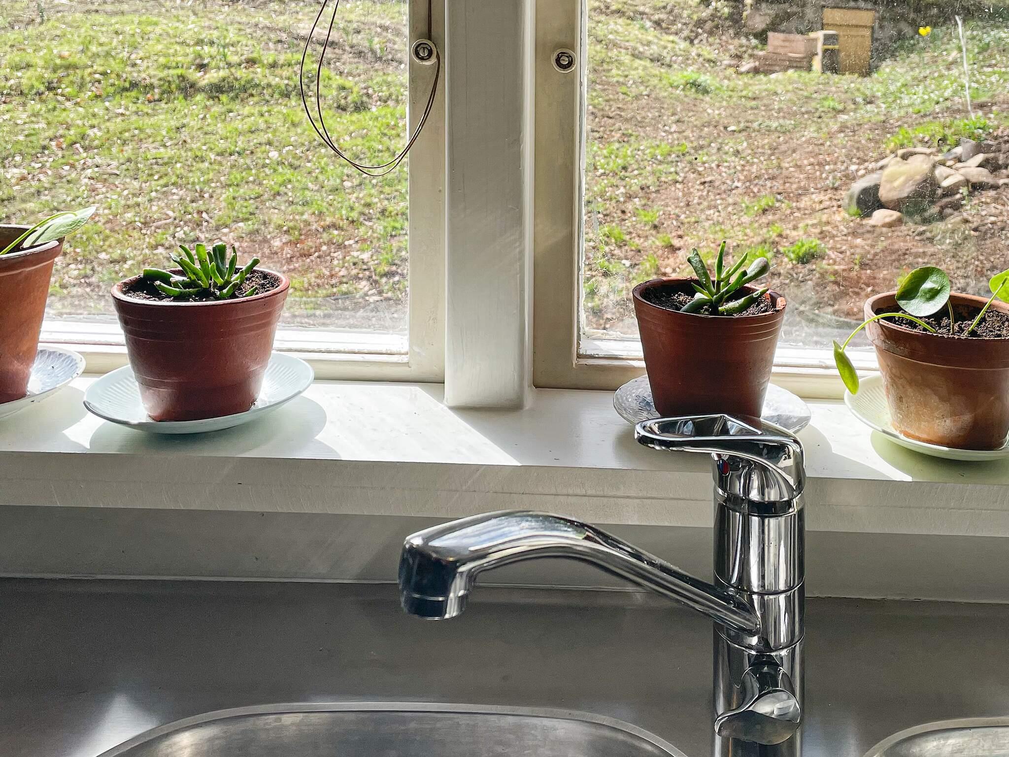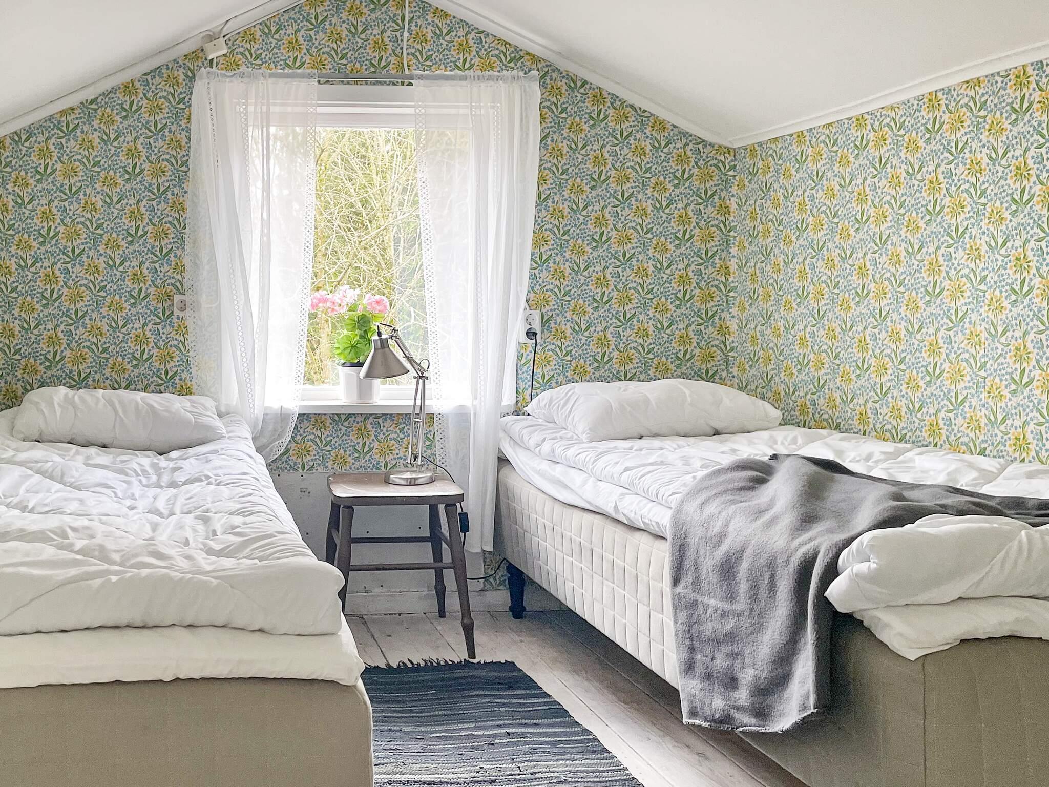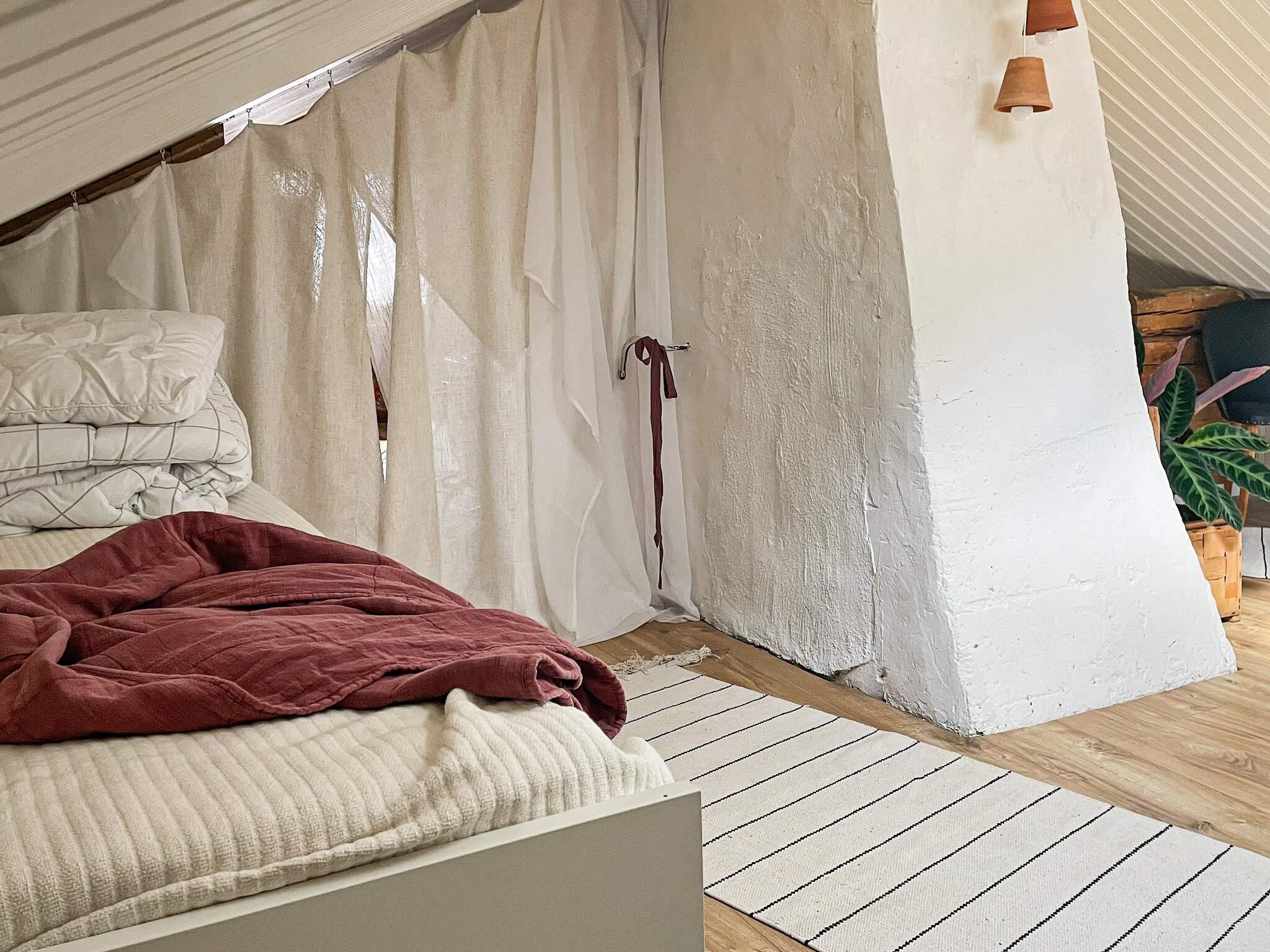 Die Unterkunft erstreckt sich über zwei Ebenen. Den Eingang finden Sie auf der bezaubernden, verglasten Veranda des Hauses. Von dort haben Sie Zutritt in die Diele. Weiter geht es in die helle, zeitgemäß ausgestattete Küche mit Küchentisch. Natürlich gibt es einen Elektroherd, aber wenn Sie möchten, können Sie auch den alten Holzherd zum Kochen nutzen. Das Badezimmer von 2023 ist ansprechend mit WC, Dusche und Waschbecken ausgestattet. Zudem praktische Waschküche im Haus mit separatem Eingang und kleiner Waschmaschine. Großes Schlafzimmer mit Doppelbett (140 cm Breite), einem Etagenbett (90 + 90 cm) und einem schönen Kachelofen (nicht in Gebrauch). Zudem gemütliches Wohnzimmer im Erdgeschoss mit Esszimmermöbeln, Sofa und funktionierendem Kamin.