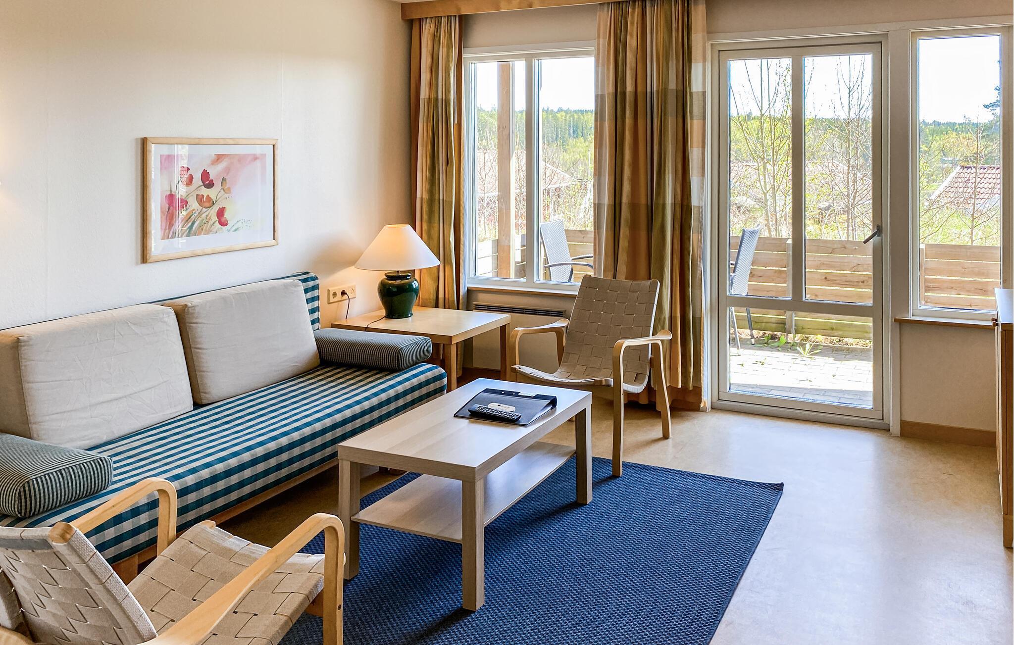 Die Ferienanlage liegt erhöht nahe dem Wald und bietet einen schönen Blick auf den Fluss Härån. Unternehmen Sie herrliche Spaziergänge und Wanderungen oder besuchen Sie in der Nähe einen Gutshof mit Wellnessangeboten. Astrid Lindgrens Welt erreichen Sie von hier aus ebenfalls unkompliziert.