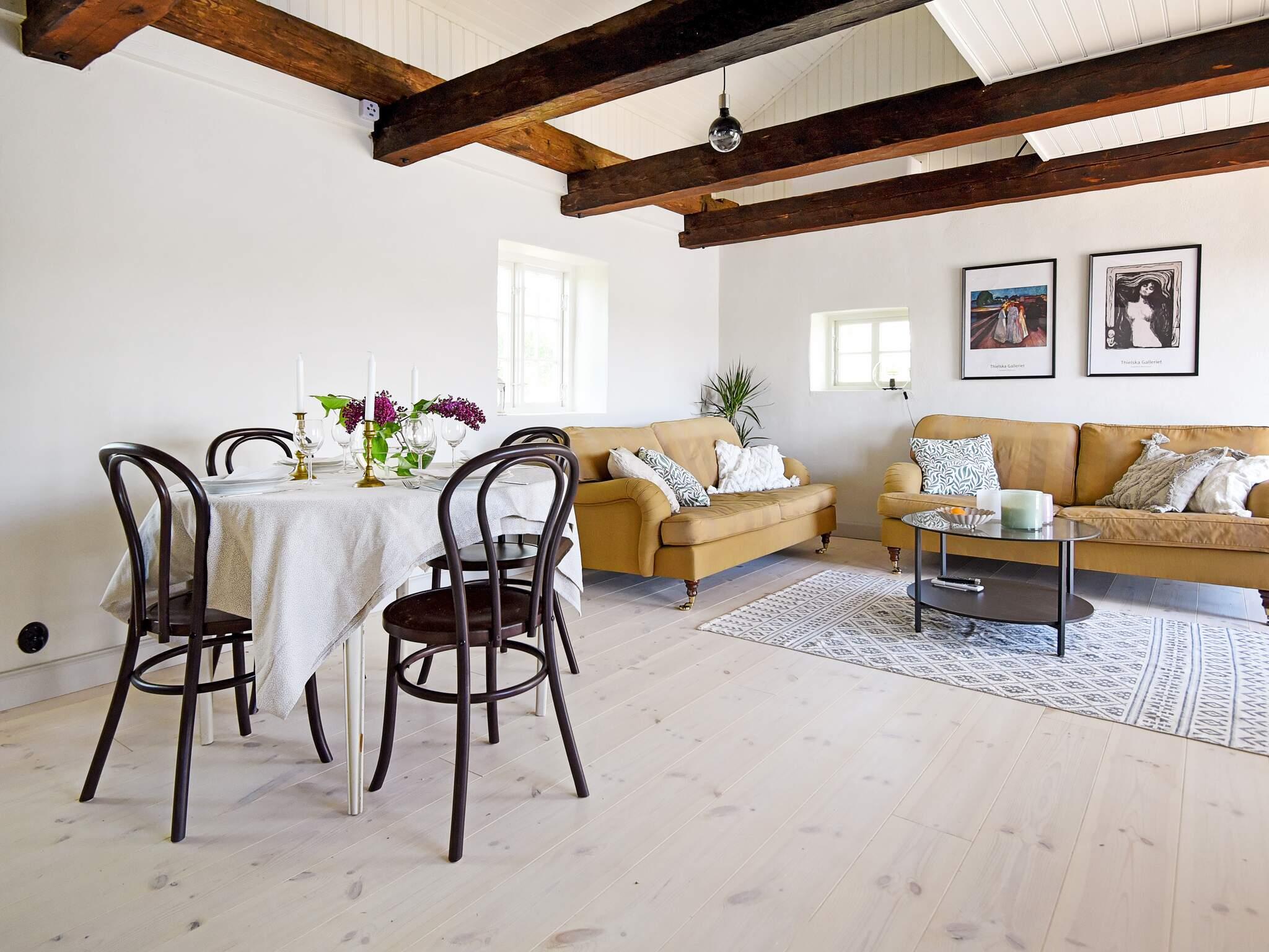 Das 2023 frisch renovierte Haus bietet ein helles, ansprechendes Interieur im nordischen Landhausstil, das ihm eine entspannte und sehr einladende Atmosphäre verleiht. Sie betreten einen kleinen Flur mit einem Badezimmer gleich rechts. Auf der linken Seite öffnen sich der offene Küchen-/Wohnbereich für das Familienleben.