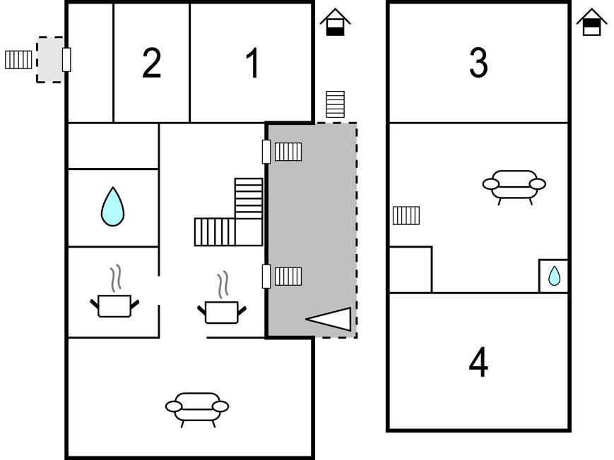 - WC mit warmem und kaltem Wasser, Handbrause, Badewanne und Dusche
