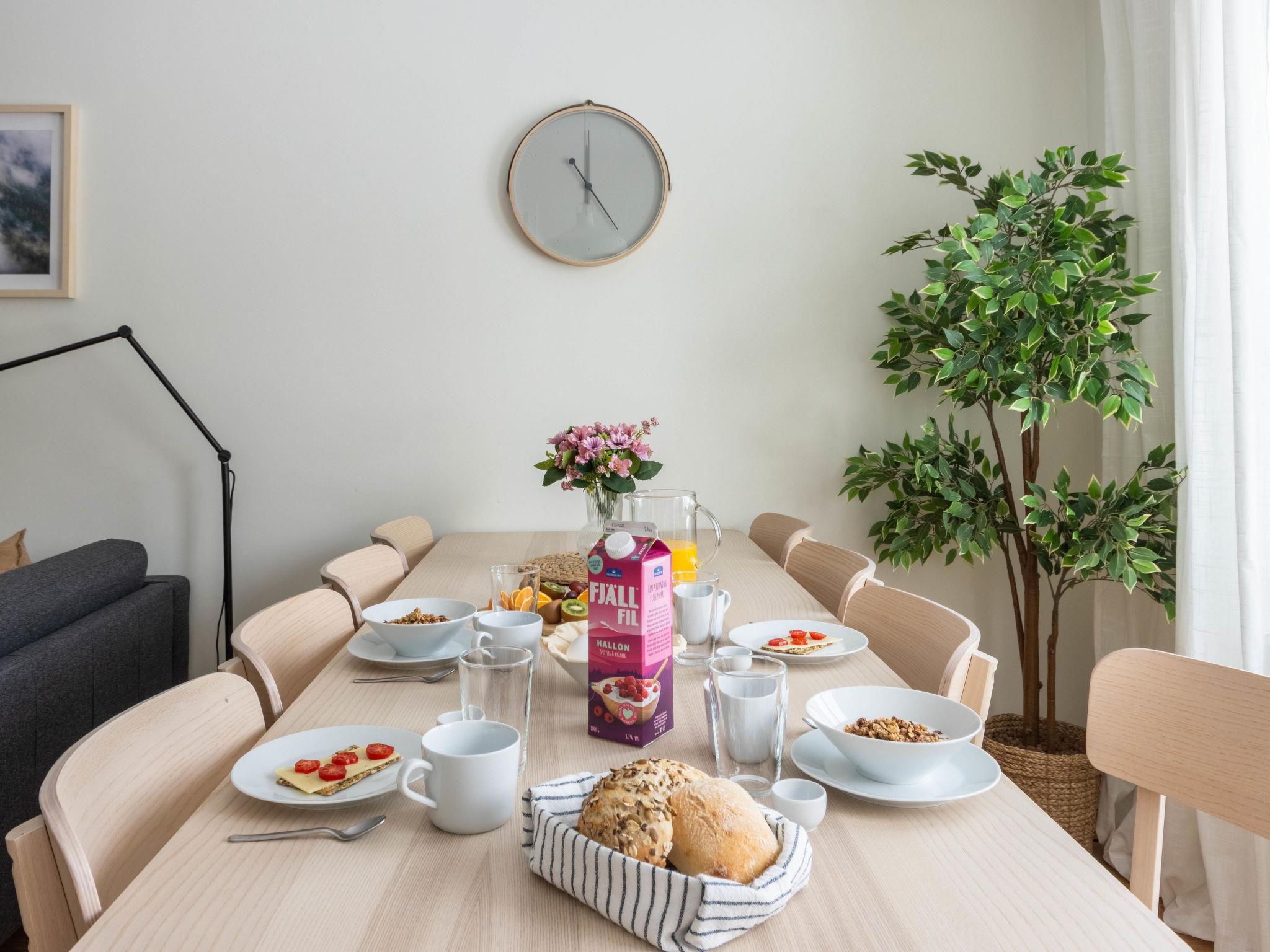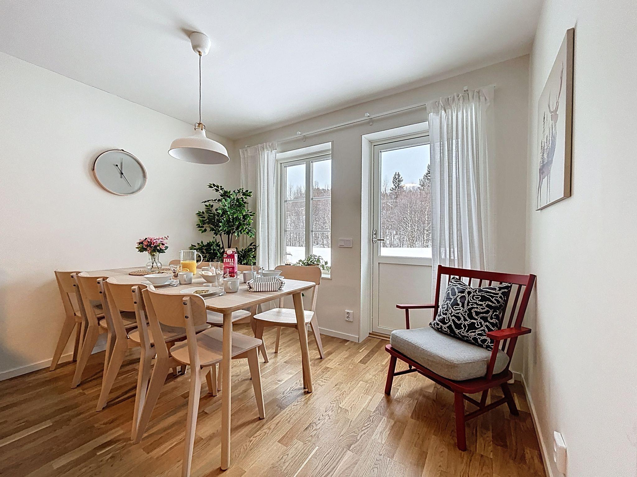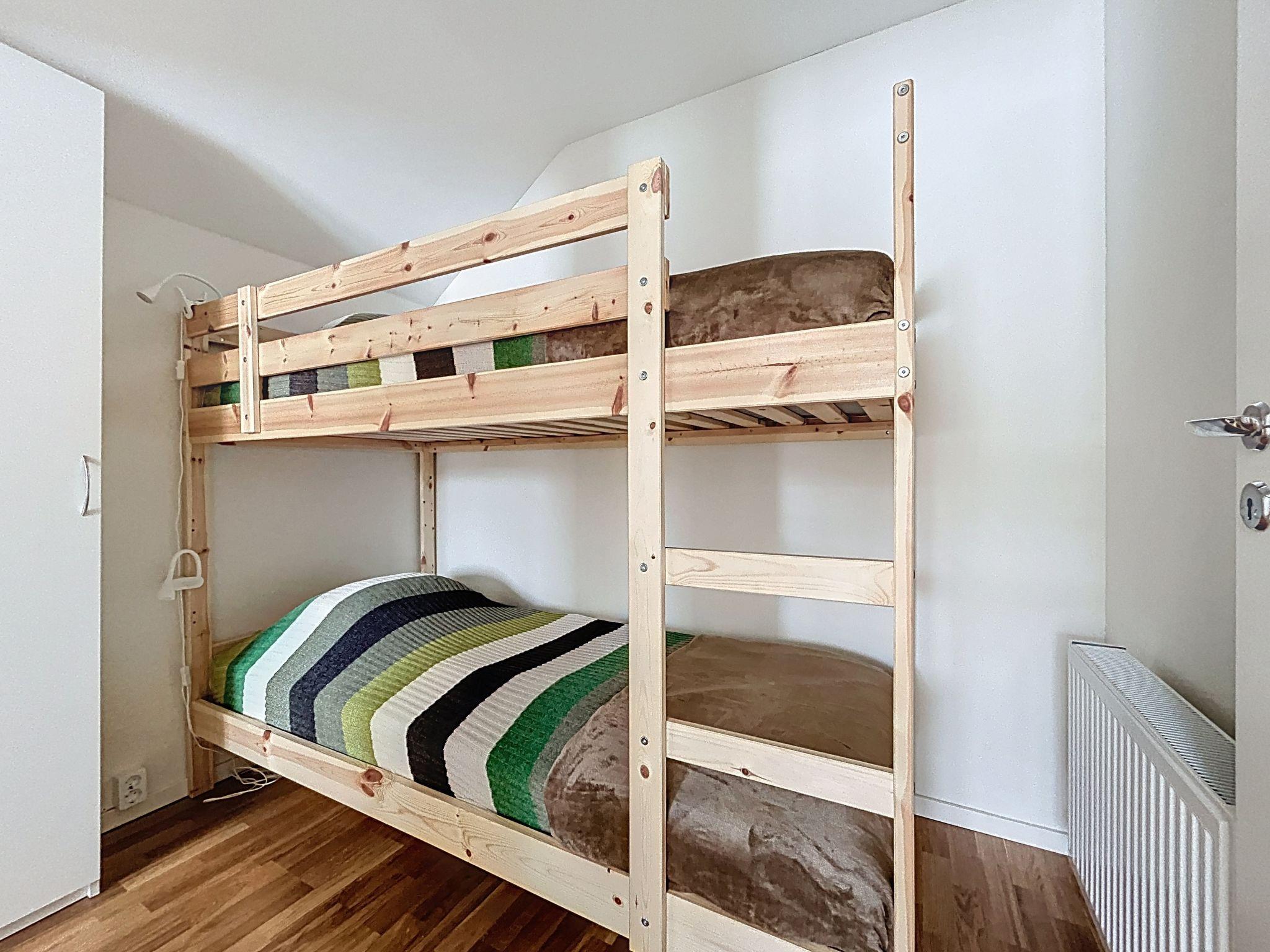"Norra Svanhågna Gård", 4-Zimmer-Wohnung 87 m2 auf 2 Stockwerken. Einfach und modern eingerichtet: offenes Wohn-/Esszimmer mit Schwedenofen, Esstisch und TV. Ausgang zur Veranda. 1 Zimmer mit 1 Doppelbett (180 cm, Länge 200 cm). Küche (Backofen, Geschirrspüler, 4 Induktionskochplatten, Toaster, Wasserkocher, Mikrowelle, Tiefkühler, elektrische Kaffeemaschine). Dusche/WC, Sauna. Heizung, Holzheizung. Obergeschoss: 1 Zimmer mit 1 x 2 Etagenbetten (90 cm, Länge 200 cm). 1 Zimmer mit 1 x 2 Etagenbetten (90 cm, Länge 200 cm), 1 Doppelbett (180 cm, Länge 200 cm). Dusche/WC. Parkettboden. Terrasse 20 m2. Sitzplatz. Eingeschränkte auf den See, die Berge und das Tal. Zur Verfügung: Waschmaschine, Wäschetrockner, Kinderhochstuhl, Babybett. Internet (WLAN, gratis). Bitte beachten: Nichtraucher-Haus. Rauchmelder.