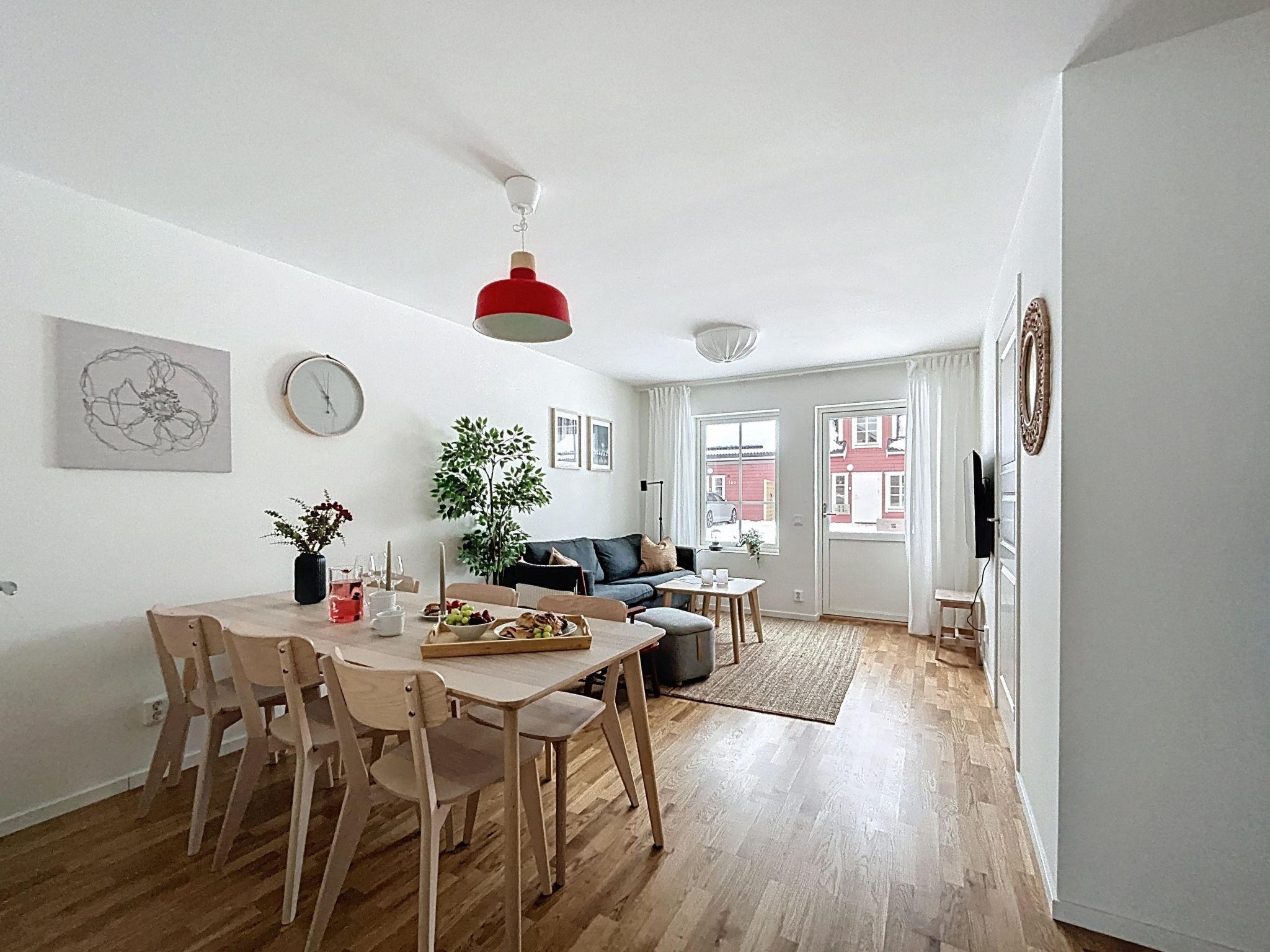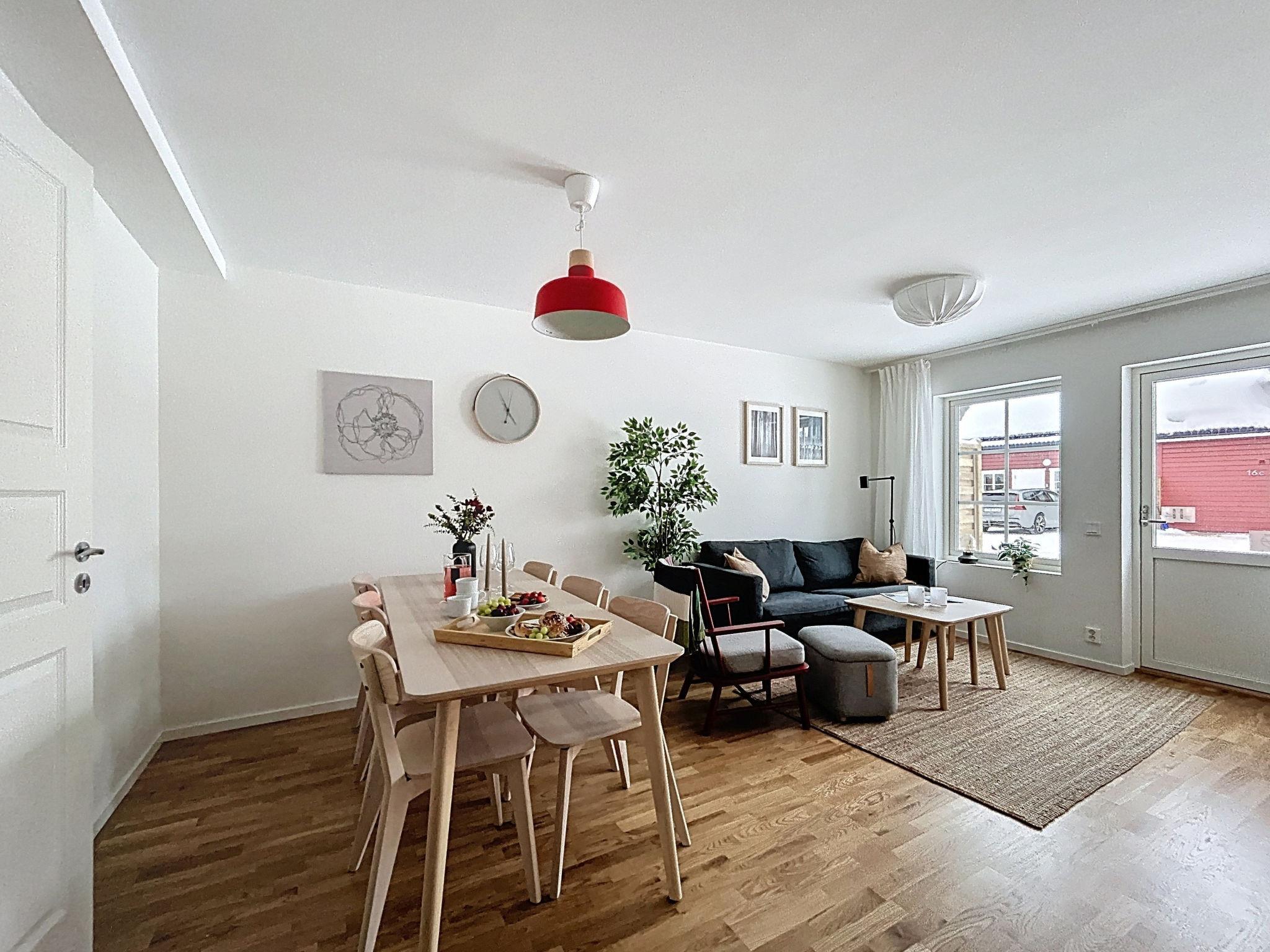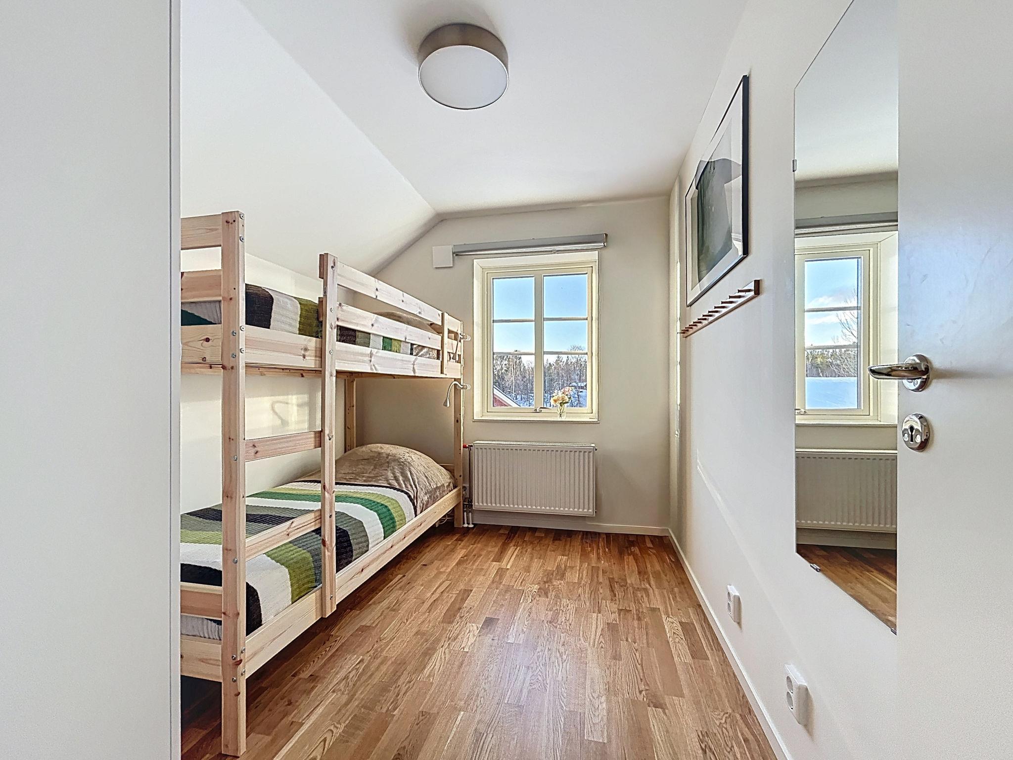 "Södra Svanhågna Gård", 4-Zimmer-Wohnung 87 m2 auf 2 Stockwerken. Einfach und modern eingerichtet: offenes Wohn-/Esszimmer mit Esstisch und TV. Ausgang zur Veranda. 1 Zimmer mit 1 Doppelbett (180 cm, Länge 200 cm). Küche (Backofen, Geschirrspüler, 4 Induktionskochplatten, Toaster, Wasserkocher, Mikrowelle, Tiefkühler, elektrische Kaffeemaschine). Dusche/WC, Sauna. Heizung, Holzheizung. Obergeschoss: 1 Zimmer mit 1 x 2 Etagenbetten (90 cm, Länge 200 cm). 1 Zimmer mit 1 Doppelbett (180 cm, Länge 200 cm). Dusche/WC. Parkettboden. Terrasse 20 m2. Sitzplatz. Eingeschränkte auf den See, die Berge und das Tal. Zur Verfügung: Waschmaschine, Wäschetrockner, Kinderhochstuhl, Babybett. Internet (WLAN, gratis). Bitte beachten: Nichtraucher-Haus. 2 Haustiere/Hunde erlaubt. Rauchmelder.