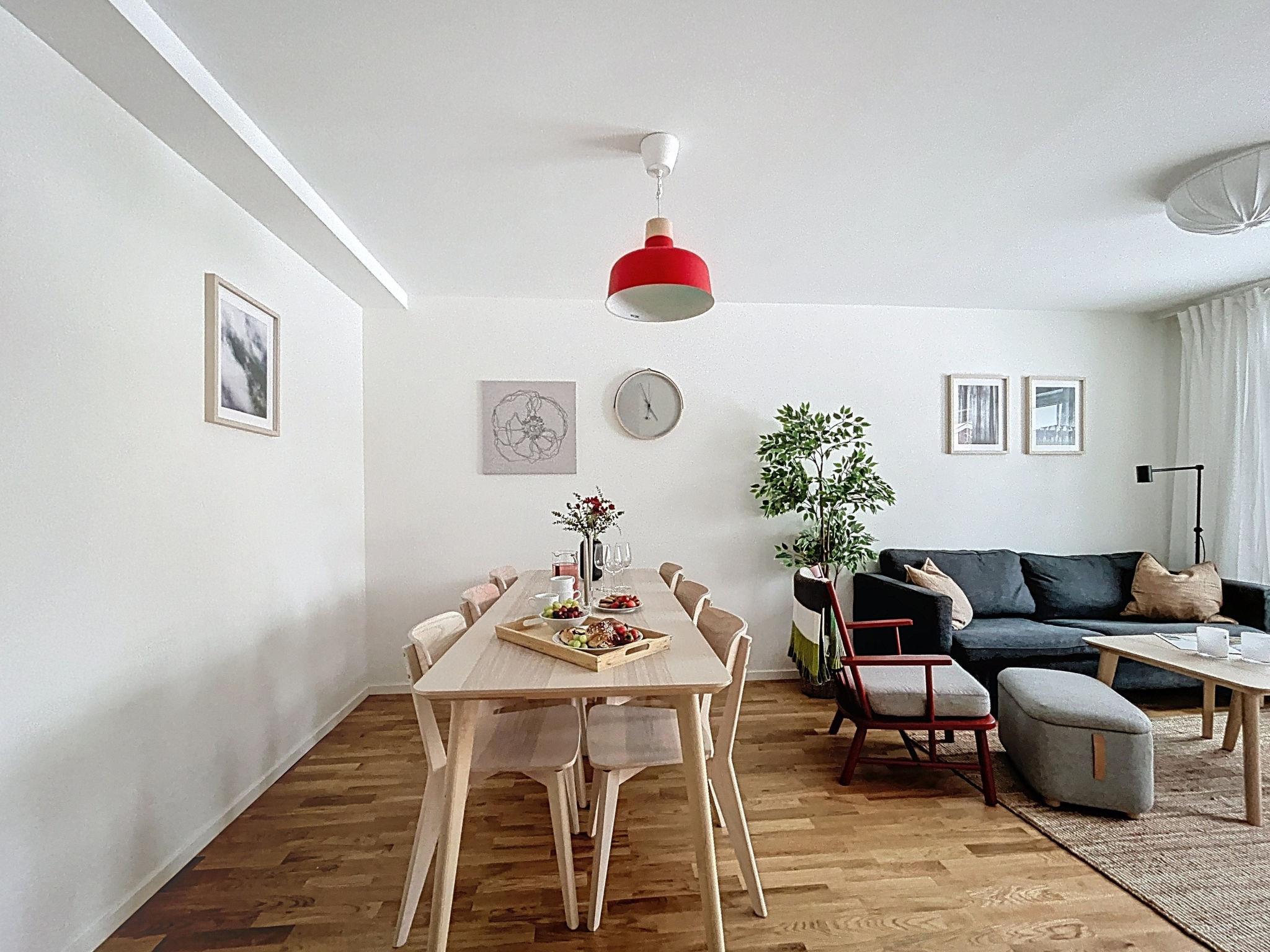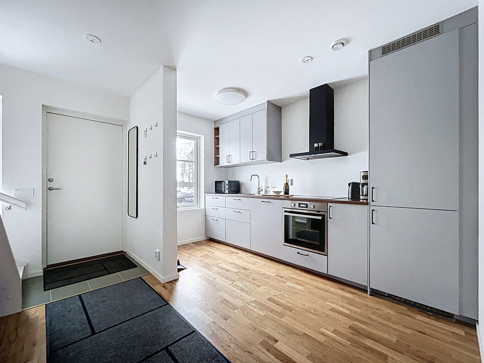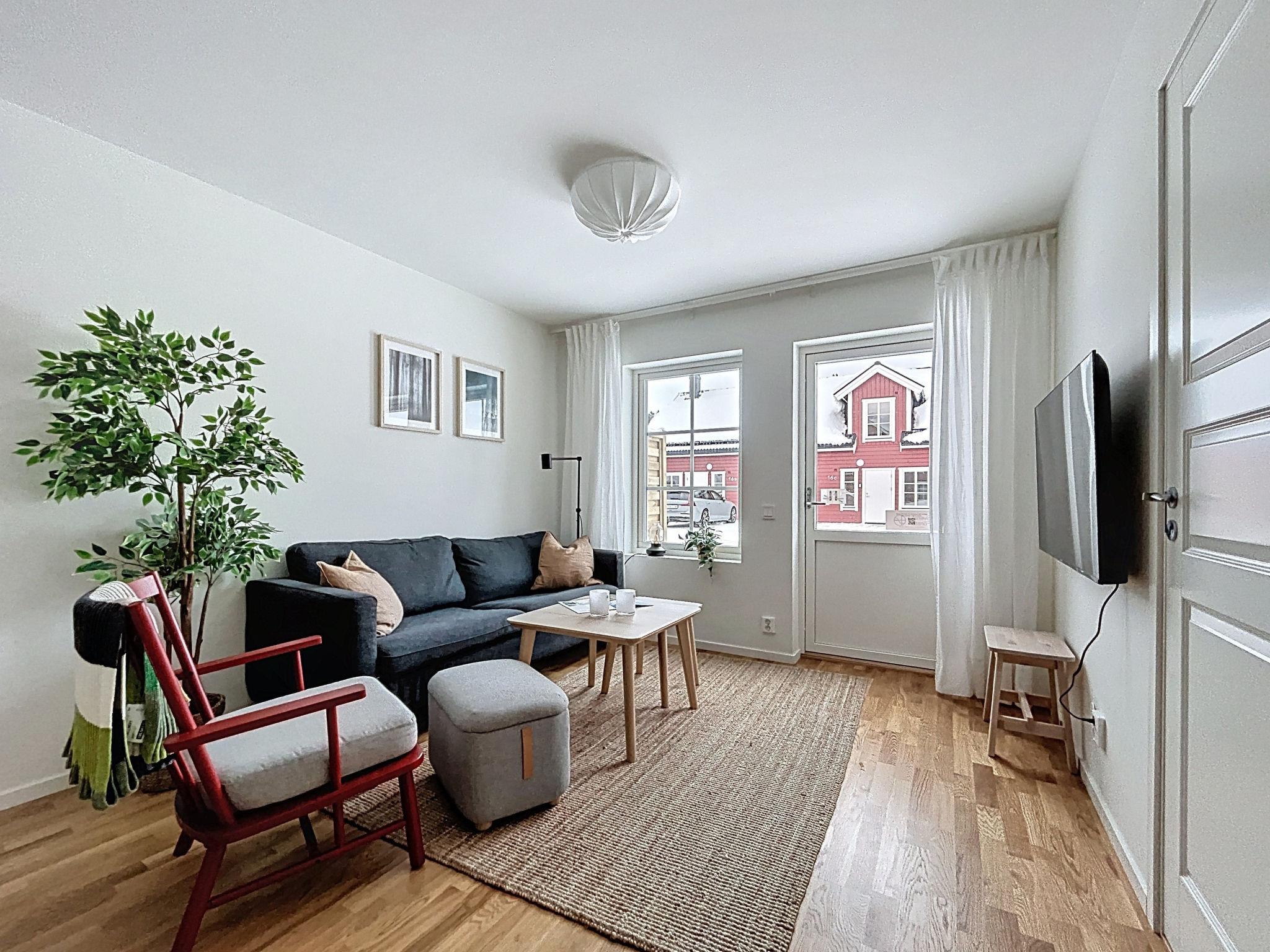 "Södra Svanhågna Gård", 4-Zimmer-Wohnung 87 m2 auf 2 Stockwerken. Einfach und modern eingerichtet: offenes Wohn-/Esszimmer mit Esstisch und TV. Ausgang zur Veranda. 1 Zimmer mit 1 Doppelbett (180 cm, Länge 200 cm). Küche (Backofen, Geschirrspüler, 4 Induktionskochplatten, Toaster, Wasserkocher, Mikrowelle, Tiefkühler, elektrische Kaffeemaschine). Dusche/WC, Sauna. Heizung, Holzheizung. Obergeschoss: 1 Zimmer mit 1 x 2 Etagenbetten (90 cm, Länge 200 cm). 1 Zimmer mit 1 Doppelbett (180 cm, Länge 200 cm). Dusche/WC. Parkettboden. Terrasse 20 m2. Sitzplatz. Eingeschränkte auf den See, die Berge und das Tal. Zur Verfügung: Waschmaschine, Wäschetrockner, Kinderhochstuhl, Babybett. Internet (WLAN, gratis). Bitte beachten: Nichtraucher-Haus. 2 Haustiere/Hunde erlaubt. Rauchmelder.