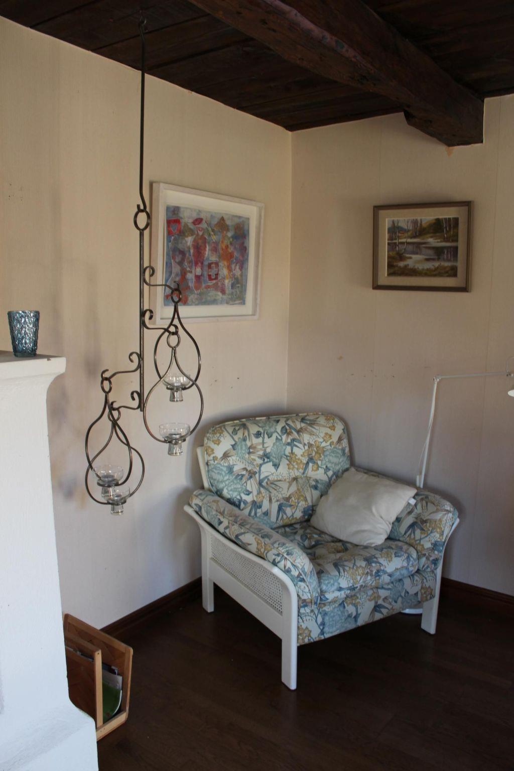 Das rustikale Haus mit moderner Einrichtung bietet sieben Personen Platz und ist ideal für Familien mit Kindern geeignet. Das geräumige Wohn- und Esszimmer verfügt über eine Couchgarnitur mit Sesseln, einen Fernseher mit Sat.-TV mit deutschen Programmen sowie einen Esstisch mit sechs Stühlen. Die Küche ist komplett mit Herd, Ofen, Kühl-Gefrierschrank, Mikrowelle, Toaster, Wasserkocher, Kaffeemaschine und Spülmaschine ausgestattet. Hier steht ein weiterer Esstisch mit Stühlen bereit. Und auch eine Waschküche ist vorhanden. Das Badezimmer besteht aus einer Dusche, Waschbecken und Toilette. Im Obergeschoss stehen ein Schlafzimmer mit einem Doppelbett, ein Zimmer mit einem Einzelbett und ein Vier-Bettzimmer abgeteilt mit einer Zwischenwand (zwei Einzelbetten und ein Etagenbett). Insgesamt gibt es also sieben Schlafgelegeneheiten.