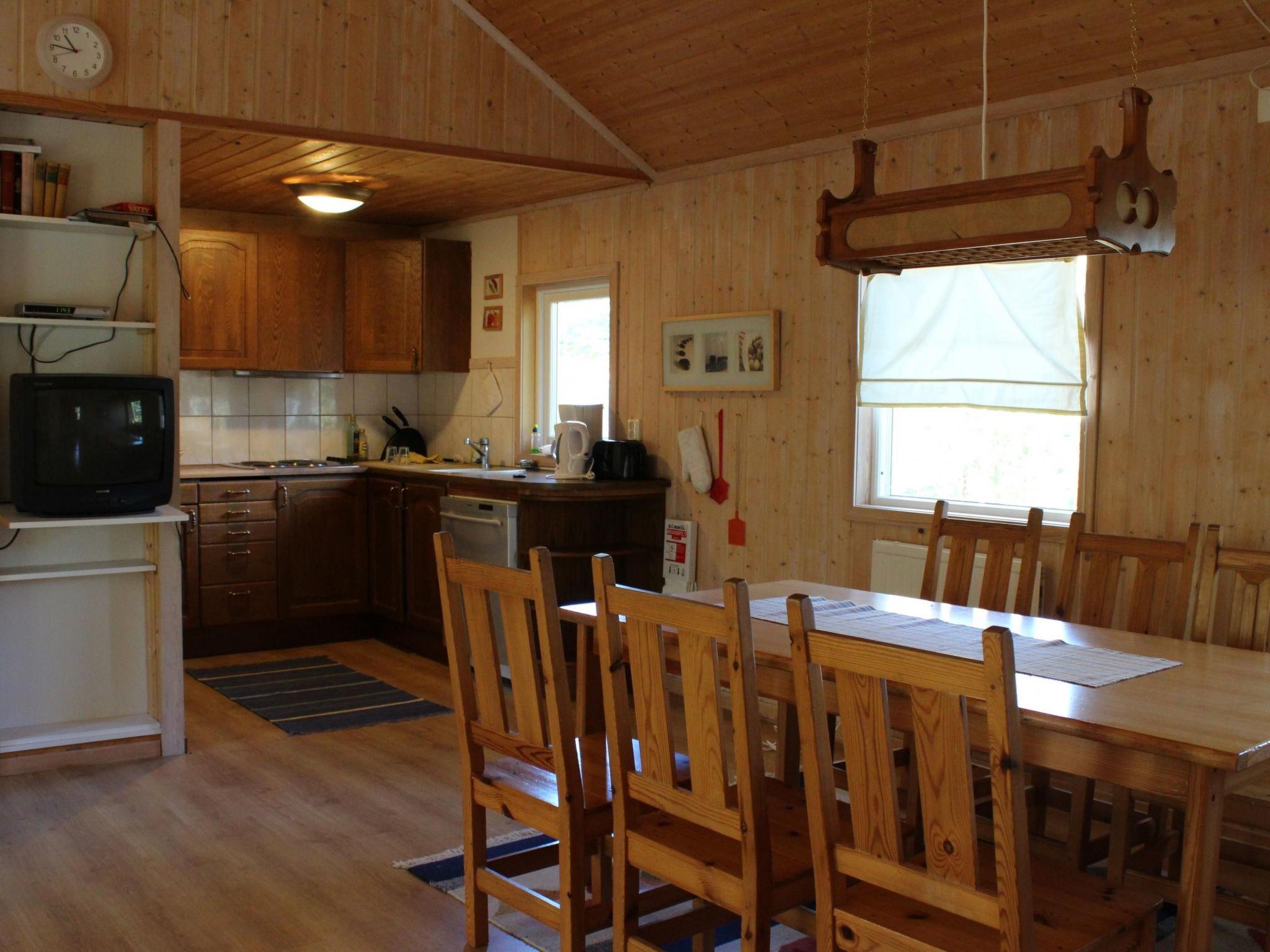 Das Ferienhaus liegt an einem Hand und bietet fünf Personen Platz. Das Hauptschlafzimmer bietet zwei zusammenschiebbare Einzelbetten und ein Kleiderschrank. Das andere Schlafzimmer verfügt über ein Einzelbett sowie ein Etagenbett. Der offen gestaltete Wohn- und Essraum mit der offenen Küche ist mit einer Couchgarnitur mit Sesseln, einem Fernseher mit Sat.-TV sowie einem Esstisch mit sechs Stühlen eingerichtet. Die Küche ist komplett mit Herd, Ofen, Kühl-Gefrierschrank, Mikrowelle, Toaster, Wasserkocher, Kaffeemaschine und Spülmaschine ausgestattet. Das Badezimmer besteht aus einer Dusche, Waschbecken und Toilette. Zudem kann eine Waschmaschine mit den Gästen aus dem Nachbarhaus in einem separaten Haus gemeinschaftlich genutzt werden.