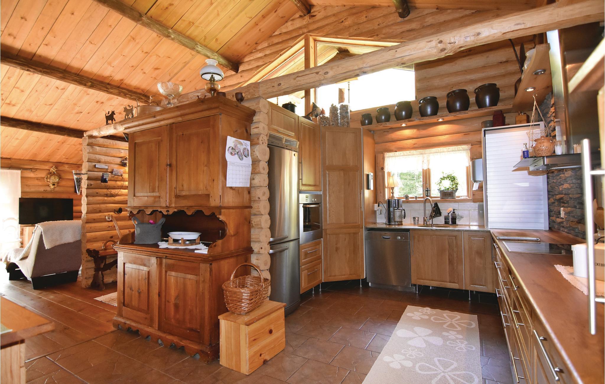 Das Haus überzeugt im Inneren mit hohen Decken und durch seinen offenen Kamin und die verglaste Terrasse ist es sehr gemütlich. Die offene Terrasse zeigt zum Waldrand hin. Im Ferienhaus stehen Ihnen drei Schlafzimmer und ein Schlafboden zur Verfügung. Die Küche und das Bad sind gut ausgestattet.