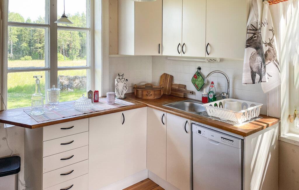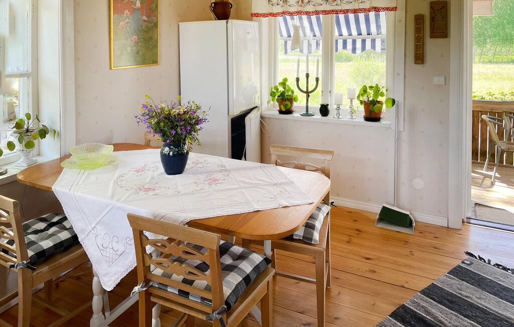 Erleben Sie einen erholsamen Urlaub in diesem familiären Ferienhaus in Ramsnäs. Die angnehme Einrichtung und die helle Gestaltung sorgen für eine gemütliche und einladende Atmosphäre. Der Mix aus zeitgemäßem Design und rustikalem Charme schafft eine harmonische Umgebung, die Entspannung und Wohlbefinden fördert. Die hellen Innenräume bieten Komfort, während die Veranda ein idealer Ort ist, um bei einem Kaffee den Blick auf die umliegende Natur zu genießen.