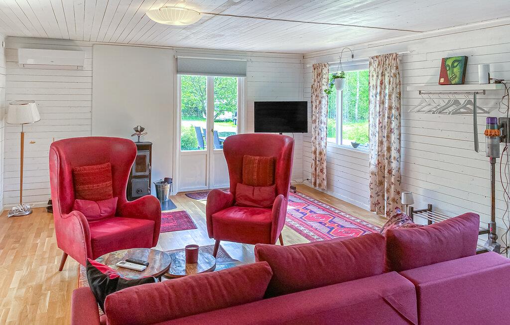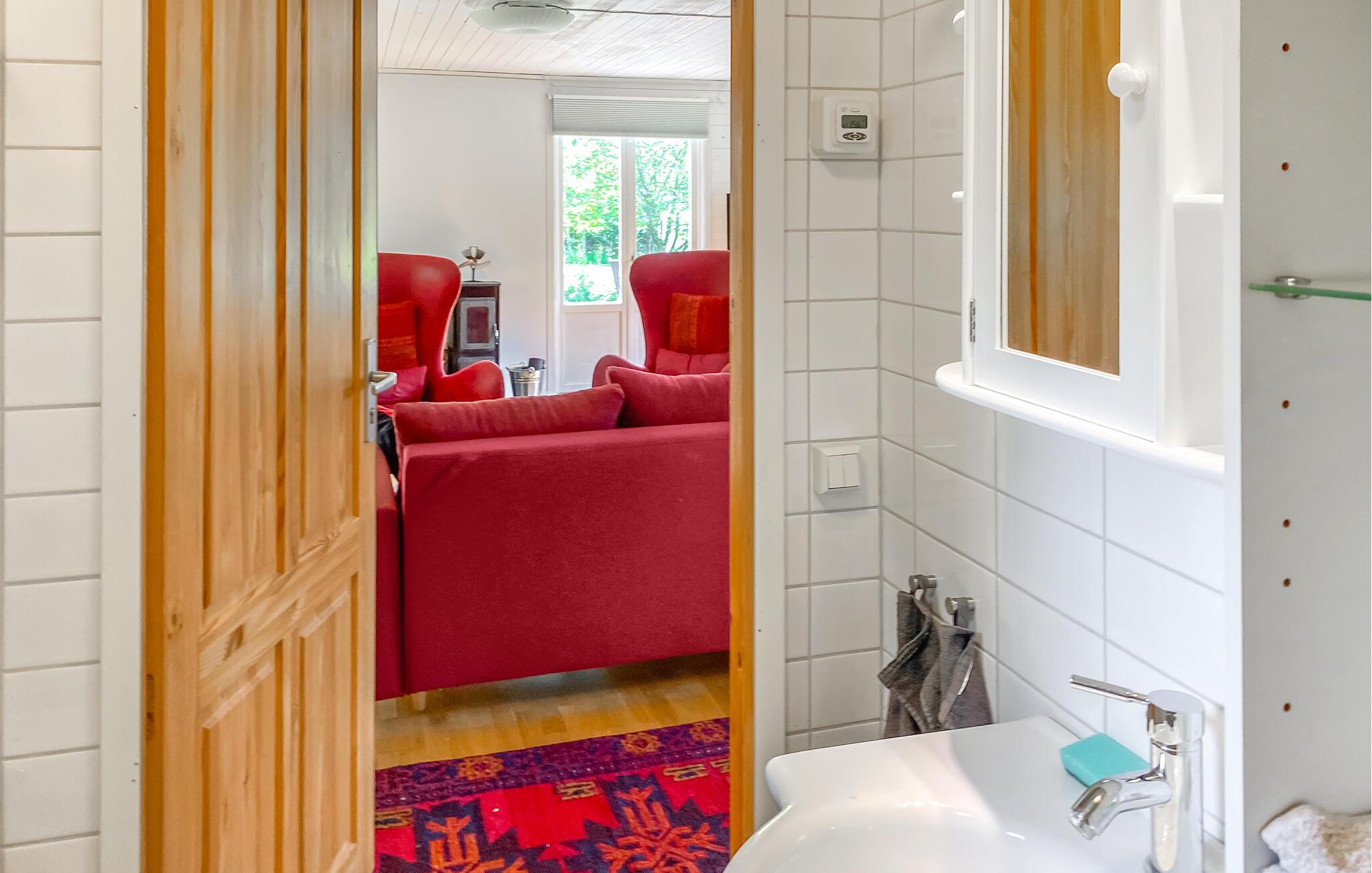 Ihr gemütliches Ferienhaus liegt direkt am See Hönshyltefjorden und bietet ideale Voraussetzungen für erholsame Ferientage am Wasser. Machen Sie es sich im liebevoll gestalteten Innenbereich bequem. Die offene Raumaufteilung verbindet Wohn-, Ess- und Küchenbereich zu einem einladenden Ganzen. Lehnen Sie sich auf dem weichen Sofa zurück oder entspannen Sie in den bequemen Sesseln. Genießen Sie Ihre Mahlzeiten am Esstisch neben der praktisch eingerichteten Küche.