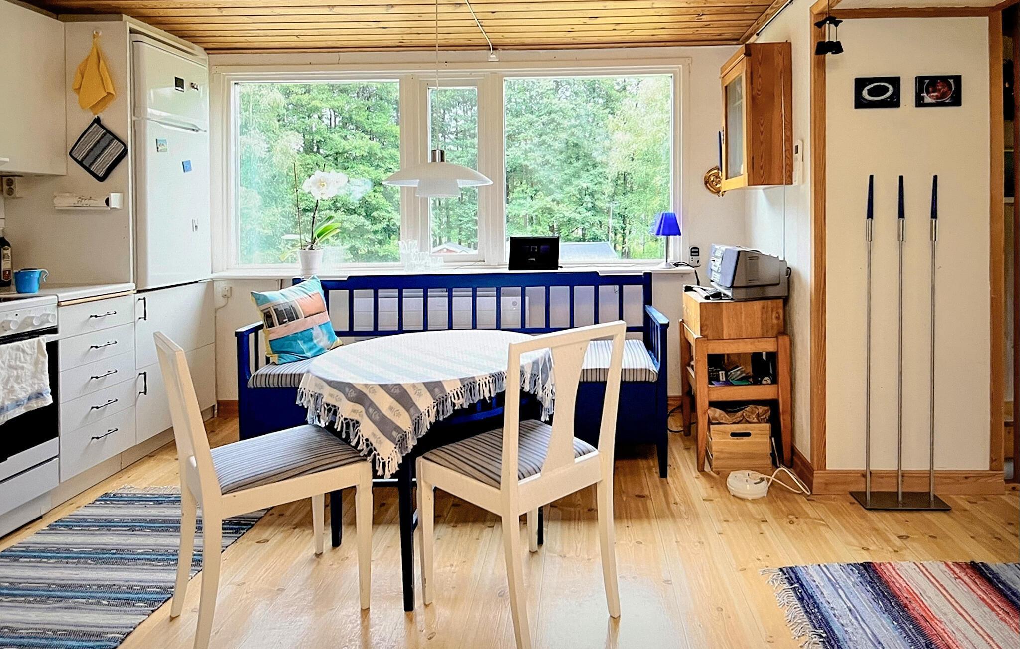 Dieses einladende Ferienhaus bietet die Gelegenheit, umgeben von der Schönheit der schwedischen Natur zur Ruhe zu kommen. Mit seiner idyllischen Lage in der Nähe des Sees Vallsjön lädt es zu entspannten Tagen und spannenden Entdeckungstouren ein. Der Innenbereich des Hauses wartet mit rustikalem Charme und einer gemütlichen Einrichtung auf. Der Wohnbereich ist mit bequemen Sitzmöbeln ausgestattet und wird durch warme Holzelemente unterstrichen. Die offene Küche bietet alles, was Sie zur Zubereitung köstlicher Mahlzeiten benötigen, während der angrenzende Essbereich mit der langen Sitzbank und den großen Fenstern eine helle und einladende Atmosphäre schafft. Verbringen Sie entspannte Abende bei einem guten Buch oder genießen Sie Gesellschaftsspiele mit Ihrer Familie.