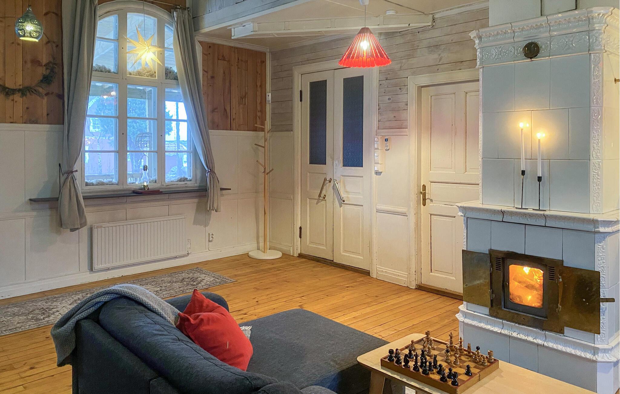 Das liebevoll eingerichtete Ferienhaus vereint rustikale Gemütlichkeit mit modernem Komfort. Die hellen Räume, die freundliche Dekoration und der einladende Wohnbereich mit Kamin sorgen für eine entspannte Atmosphäre. Gönnen Sie sich ein wenig Wellness, schwitzen in der Sauna oder nehmen ein Schaumbad in der Badewanne. In der gut ausgestatteten Küche können Sie regionale Spezialitäten zubereiten und Ihre Mahlzeiten anschließend auf der schönen Holzterrasse genießen – ideal für entspannte Stunden an der frischen Luft. Der weitläufige Garten lädt Sie zu Spielen und Erholung ein.