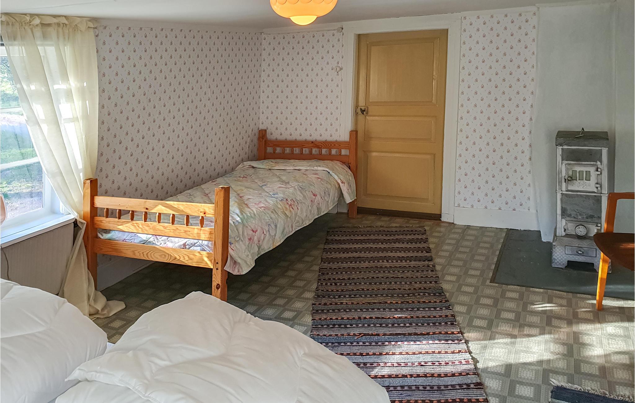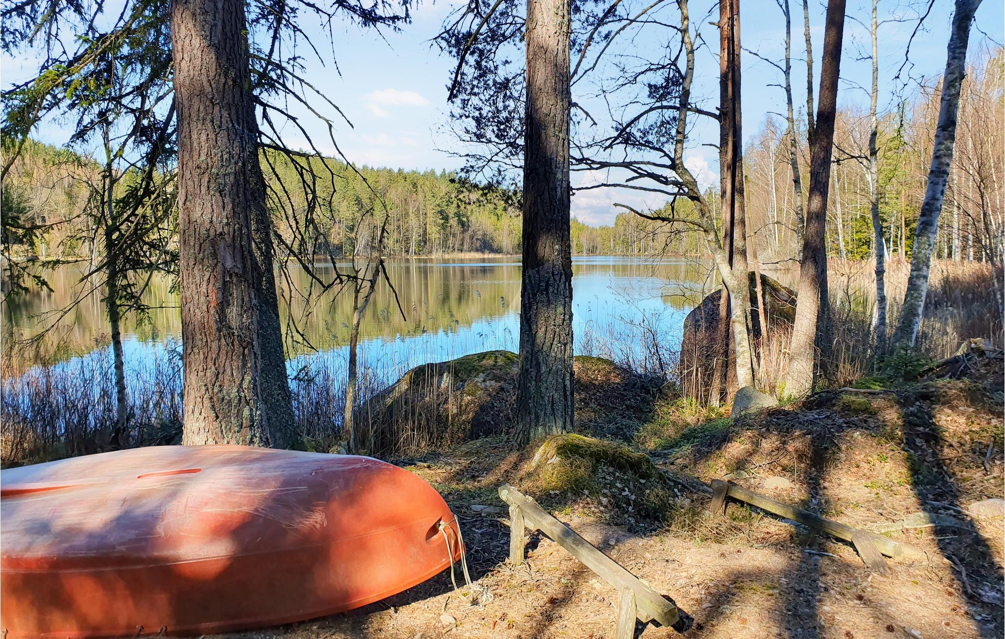 Willkommen in diesem altem, roten Holzhaus in einer Naturkulisse wie aus einem Roman von Astrid Lindgren. In den stimmungvollen Räumen mit niedlichen Tapeten und charmanten Details gibt es genug Platz für die etwas größere Familie. Der alte Herd in der Essküche trägt zur historischen Atmosphäre bei. Während Sie kochen, können die Kinder am Esstisch ein Puzzle machen. Vergessen Sie nicht die Puzzlematte! Verwenden Sie Ihre frisch gepflückten Blaubeeren für köstliche Muffins, die Sie später auf der offenen Terrasse genießen können. Gehen Sie zum See und versuchen Sie Ihr Glück beim Angeln.