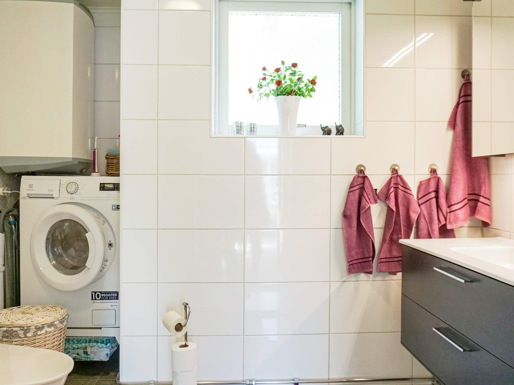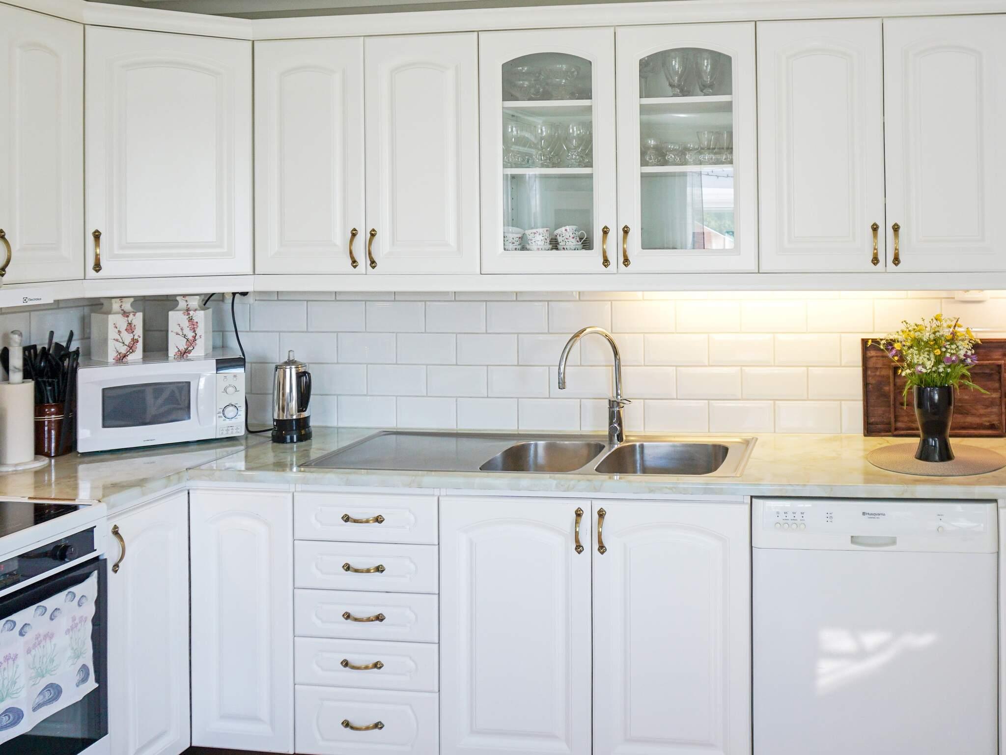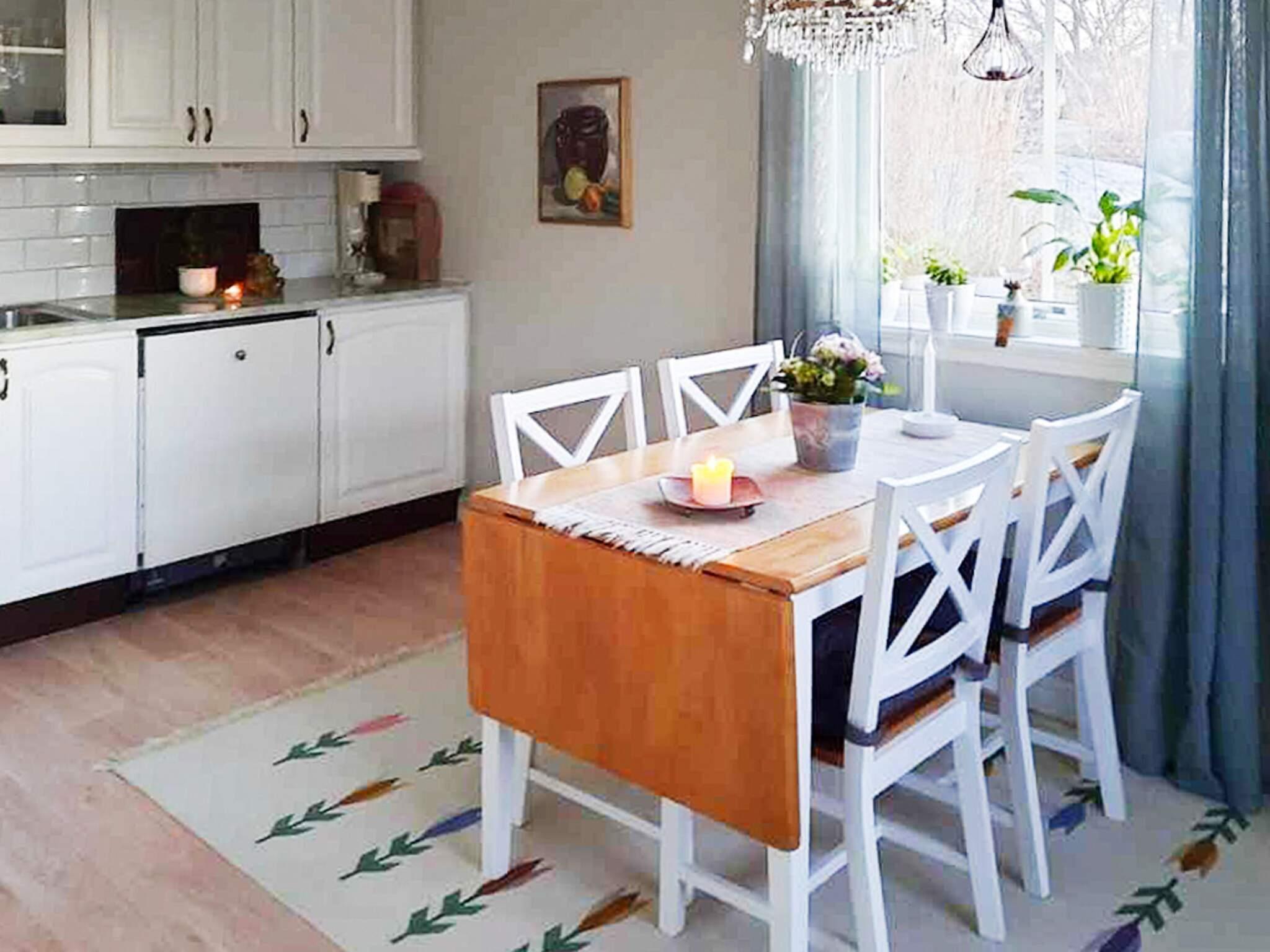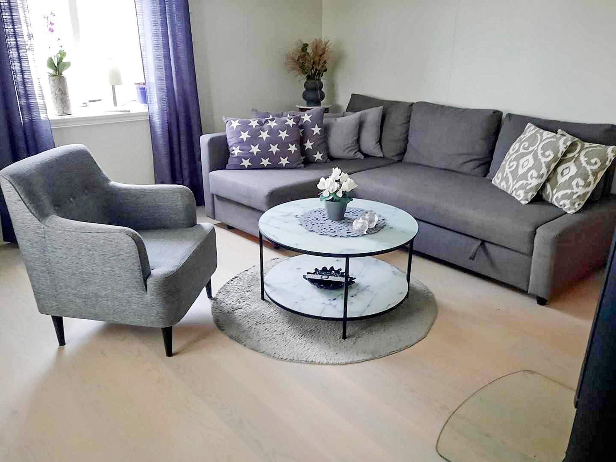 Das Ferienhaus besteht aus einem luftigen und schönen Wohnzimmer mit ansprechenden Möbeln, doppelter Schlafcouch und Holzofen. Der Raum wirkt durch die etwas niedrigere Deckenhöhe von ca. 195 cm besonders wohnlich. Gut ausgestattete Küche mit Herd, Mikrowelle, Kühl-/Gefrierschrank, Kaffeemaschine und Geschirrspüler. In der Küche gibt es auch einen Küchentisch und Stühle sowie Zugriff auf einen Hochstuhl. Im Schlafzimmer nebenan befindet sich ein schönes Doppelbett. Geräumiges Badezimmer mit Fußbodenheizung, Dusche, WC und Waschmaschine. Vom Flur führt eine Treppe hinauf zu einem Schlafboden/Hems. Die Deckenhöhe oben beträgt max. 165 cm, ein bei Kindern beliebter Schlaf- und Spielbereich.