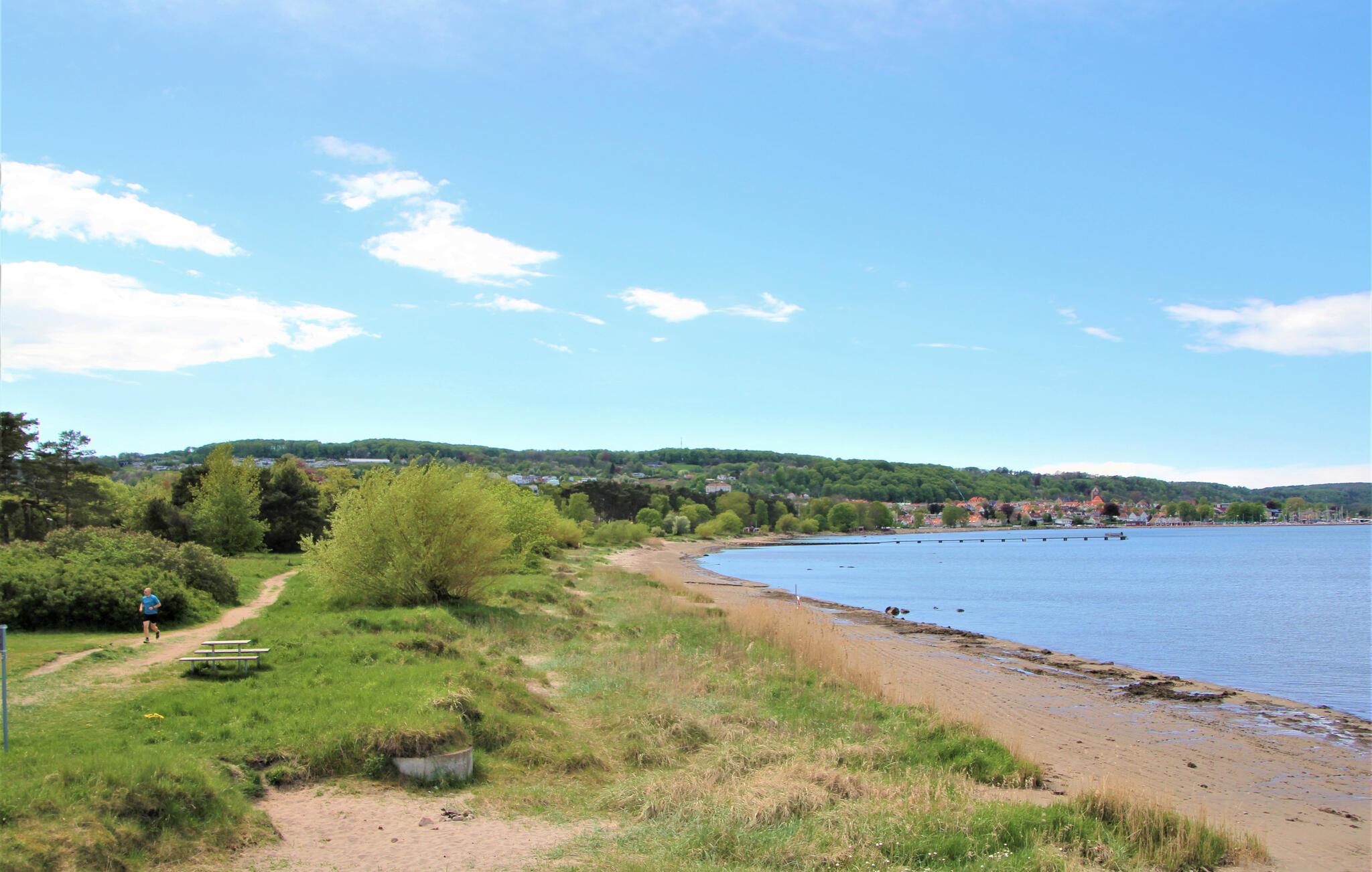 Ihr Ferienhaus in Skummeslövsstrand beeindruckt mit seinem gepflegten Garten und der gemütlichen Holzterrasse, auf der Sie entspannte Stunden verbringen können. Genießen Sie Ihr Frühstück im Freien oder veranstalten Sie ein gemütliches Barbecue mit der Familie. Der Innenbereich des Hauses ist freundlich und einladend gestaltet. Die helle Küche ist mit modernen Geräten ausgestattet und bietet Ihnen alles, was Sie für die Zubereitung köstlicher Mahlzeiten benötigen. Der offene Wohnbereich lädt mit seinem gemütlichen Kamin und einer komfortablen Sitzecke zu erholsamen Abenden ein. Lehnen Sie sich zurück, genießen Sie die wohltuende Atmosphäre und schauen Sie einen guten Film zum Tagesausklang.