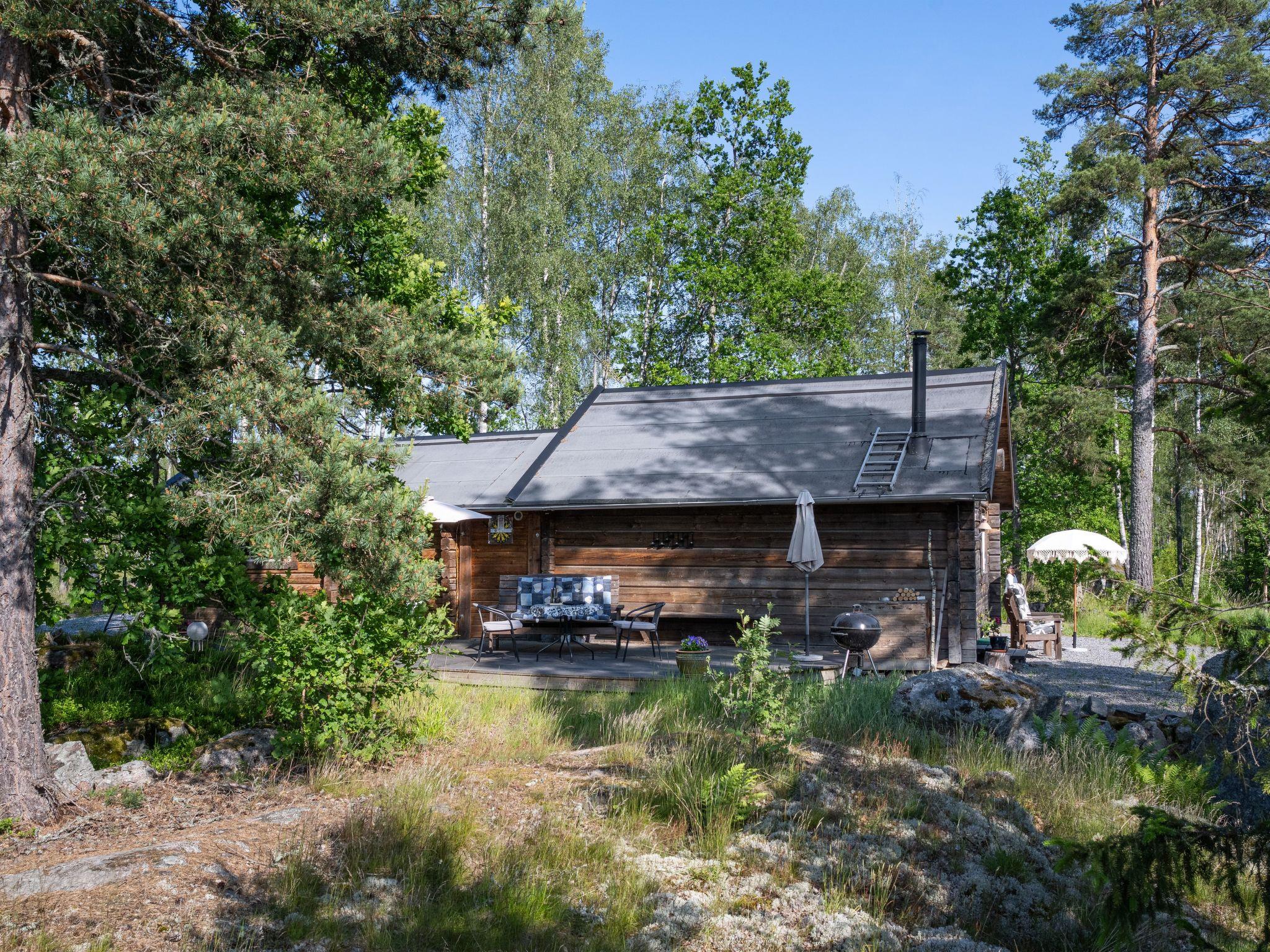 "Ekbacken", 2-Zimmer-Haus 66 m2. Objekt geeignet für 3 Erwachsene + 2 Kinder. Geräumig, abgeschrägt, geschmackvoll und gemütlich eingerichtet: offenes Wohn-/Schlafzimmer mit 1 Doppelbett (180 cm, Länge 200 cm), TV. Kabine mit 1 Bett (80 cm, Länge 200 cm). Grosse, offene Küche (4 Kochplatten, Backofen, Mikrowelle, Tiefkühler, elektrische Kaffeemaschine) mit Esstisch. Ausgang zum Garten. Dusche/WC. Heizung, E-Heizung, Boiler (70 Liter). Obergeschoss: (Leiter) kleine Kabine 12 m2 mit 2 Betten. Holzdielenboden. Komfortable Einrichtung im Landhausstil. Grosse Terrasse 24 m2. Terrassenmöbel, Gartengrill (mobil). Schöne Sicht auf den See, die Landschaft und den Wald. Zur Verfügung: Waschmaschine, Bügeleisen, Holz (extra). Internet (Wireless LAN, gratis). Bitte beachten: Nichtraucher-Haus. Maximal 1 Haustier/Hund erlaubt. Rauchmelder, Feuerlöscher. Fernsehen per Casting. Anstelle eines abgeschlossenen Schlafzimmers befinden sich manche Schlafplätze in einem offenen Bereich (Galerie, Nische etc.).