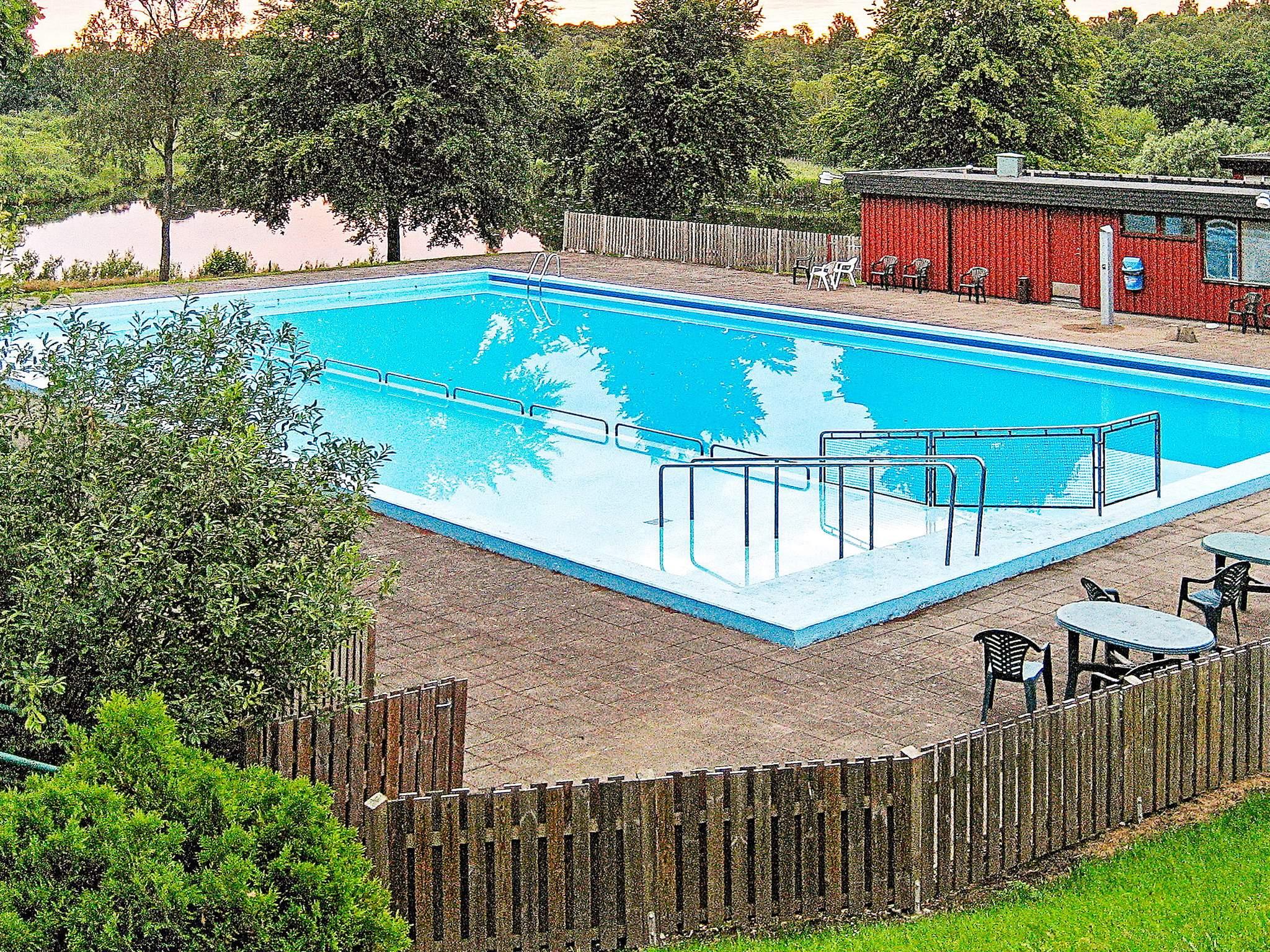 Gemütliches Ferienhaus in einem Ferienhausgebiet mit zugehörigem, gemeinschaftlichem Außenpool für die ganze Familie. Dieser wird mittels Solarenergie leicht erwärmt. Das Ferienhaus liegt gut abgeschirmt in einer kleinen Senke. Draußen stehen eine Veranda und eine Rasenfläche für Sommertage bereit.