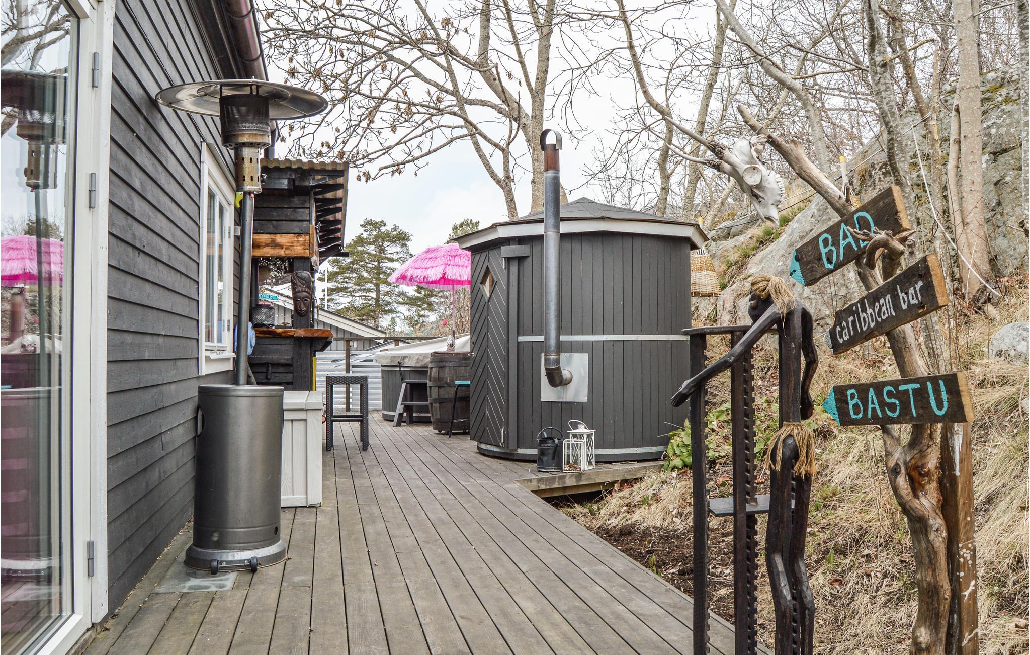 Kommen Sie mit Ihrer Familien, Ihren Freunden und den geliebten Vierbeinern in diese geräumige Ferienunterkunft, um einen wundervollen Aufenthalt in Schweden zu genießen. Machen Sie es sich in den angenehm und modern ausgestatteten Räumen bequem und genießen Sie den Blick auf das Meer von der Terrasse aus. Im Sommer können Sie herrlich an der frischen Luft frühstücken und am Abend gemütlich vor dem Außenkamin zusammensitzen und sich in die Decken kuscheln. Wer nach erlebnisreichen Tagen mehr Entspannung braucht, besucht die Sauna oder macht es sich in der riesigen Badewanne bequem.