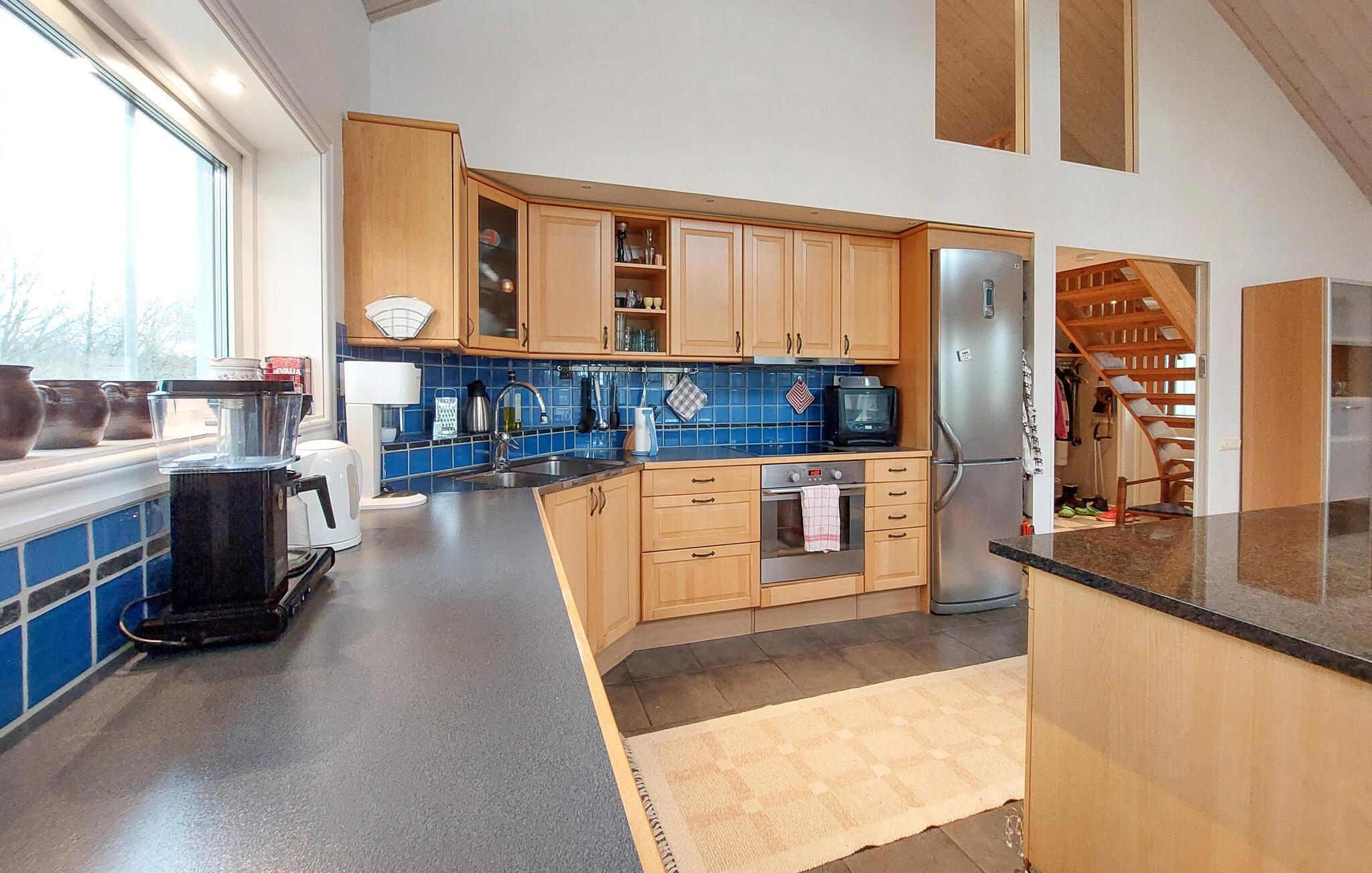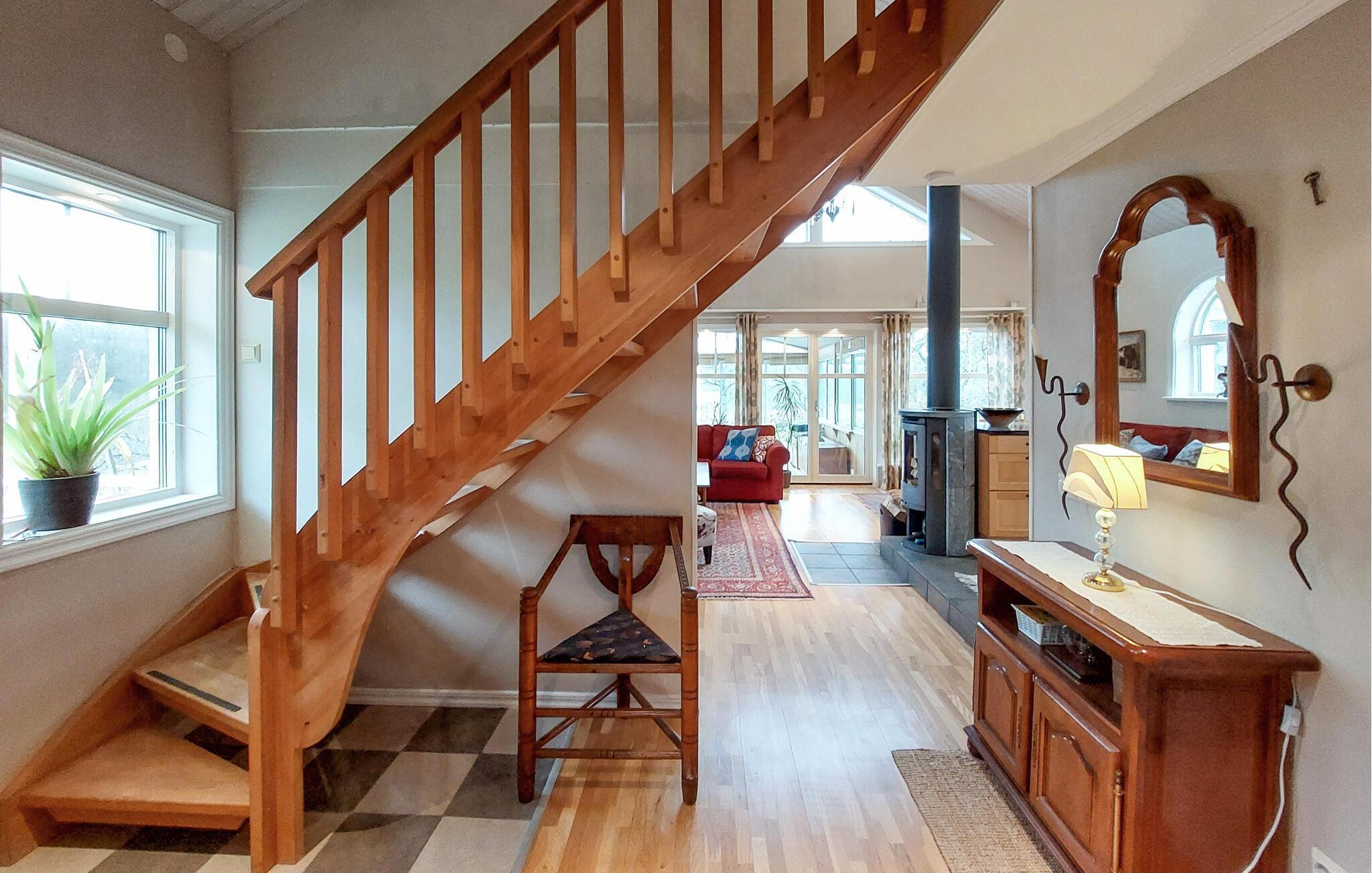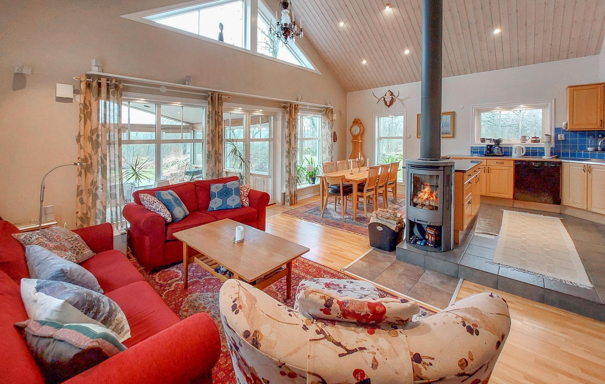 Dieses gemütliche und liebevoll eingerichtete Ferienhaus ist wie geschaffen, um mit einer größeren Familie harmonische Tage im Einklang mit der Natur zu verbringen. Entfachen Sie den Kaminofen und genießen Sie gesellige Kochabende in der offenen Küche sowie leckere Mahlzeiten im behaglichen Essbereich. Machen Sie es sich mit einem Buch auf dem Sofa bequem, gönnen Sie sich wohlige Momente in der Sauna oder veranstalten Sie einen Spieleabend.