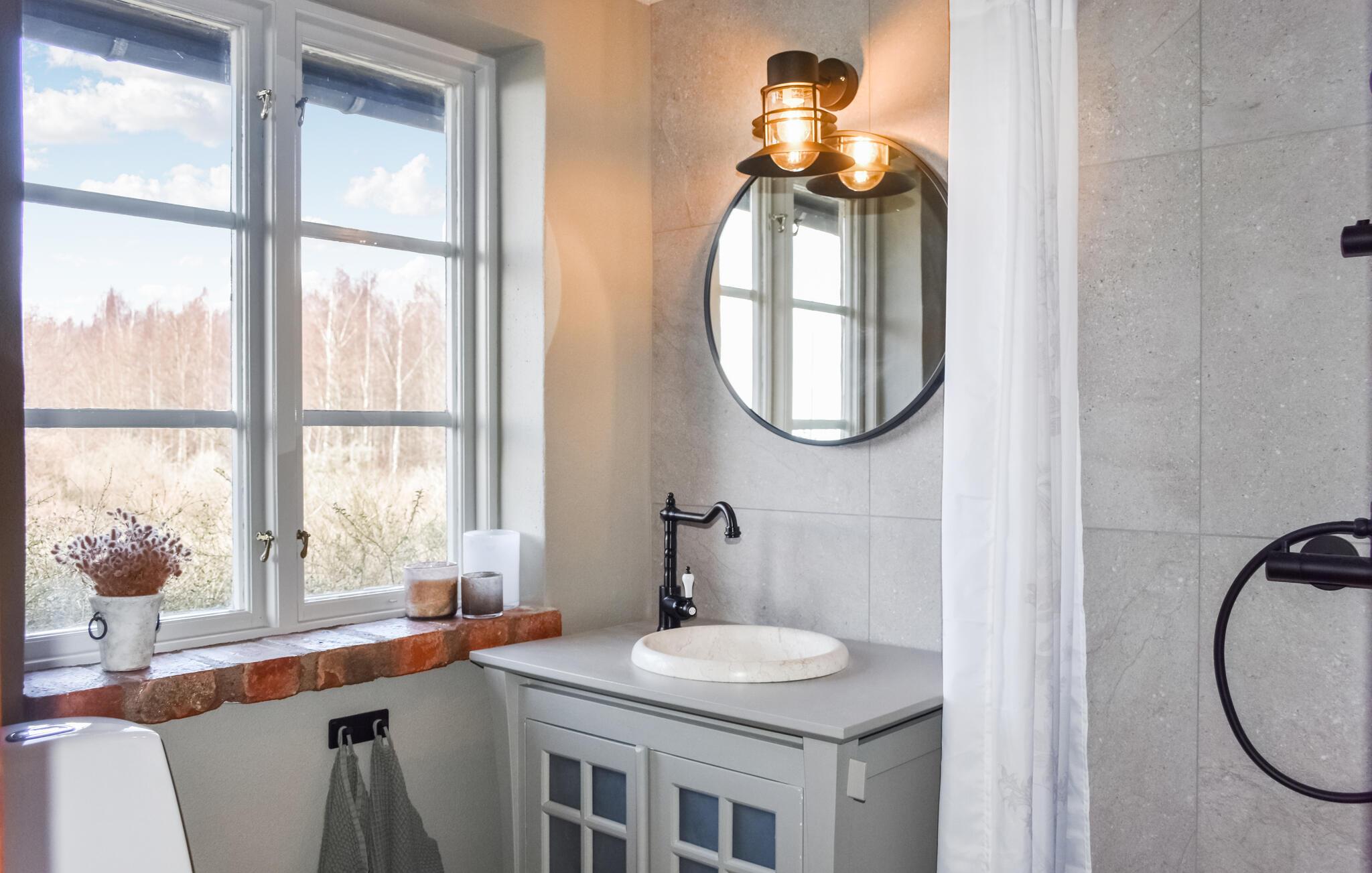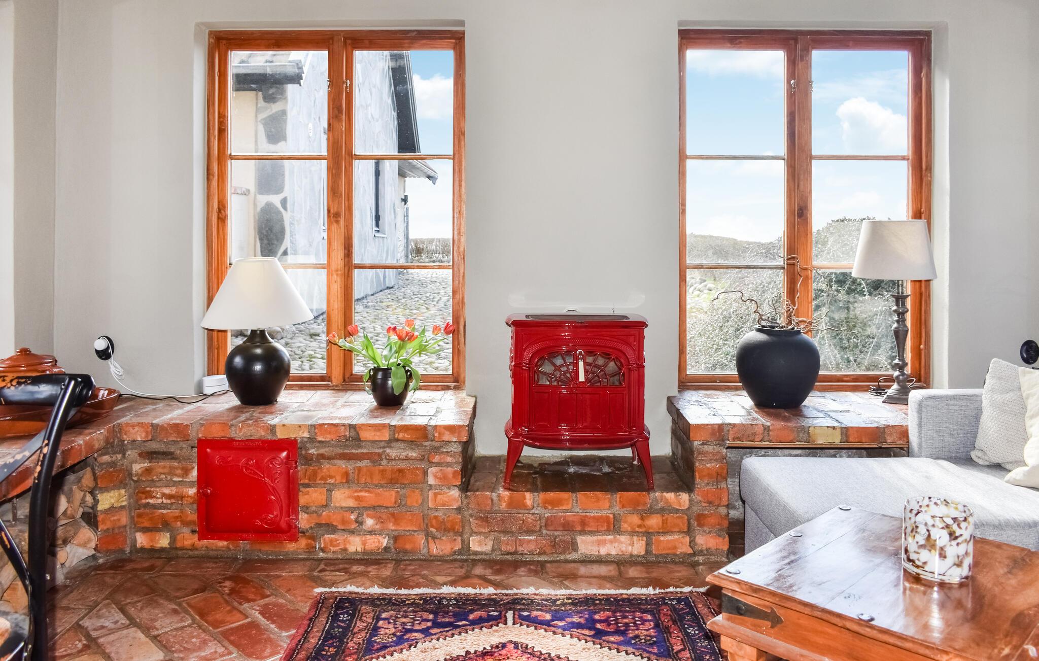 In Ihrem kompakten, schön eingerichteten Ferienhaus wohnen Sie direkt am Meer an der Südküste von Skåne. In der praktischen Küche, die offen zum Essbereich gestaltet ist, können Sie zusammen kochen und Ihre Mahlzeiten genießen. Die Kombination aus traditionellen Elementen und moderner Ausstattung schafft ein einladendes Ambiente. Setzen Sie sich in die weiche Sofaecke und genießen die schöne Aussicht aus dem Fenster, während der Kaminofen für eine entspannte Atmosphäre sorgt. Hier ist Zeit und Platz für familiäres Beisammensein.