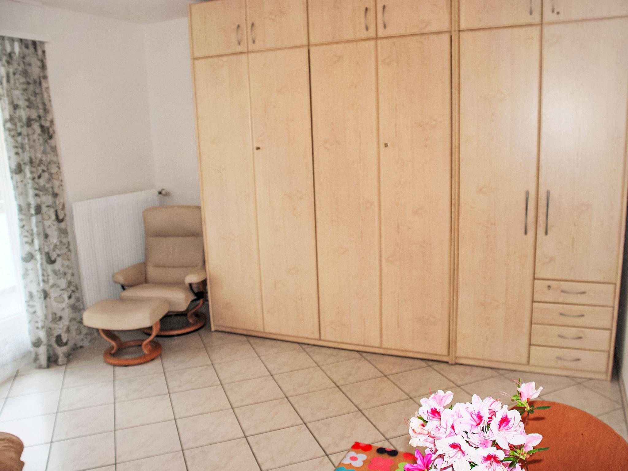 "App. 5", 1-Zimmer-Wohnung 29 m2, im Erdgeschoss. Hell, komfortabel und gemütlich eingerichtet: Wohn-/Esszimmer mit 2 Wandschrankbetten (90 cm, Länge 200 cm), Esstisch und Kabel-TV (Flachbildschirm), Radio. Ausgang zum Balkon. Kochnische im Eingang (2 Kochplatten, Wasserkocher, Mikrowelle, elektrische Kaffeemaschine, Kapseln für die Kaffeemaschine (Caffitaly) extra). Dusche/WC. Heizung. Balkon. Balkonmöbel. Bitte beachten: Nichtraucher-Unterkunft. Maximal 1 Haustier/Hund erlaubt. NL-00012322