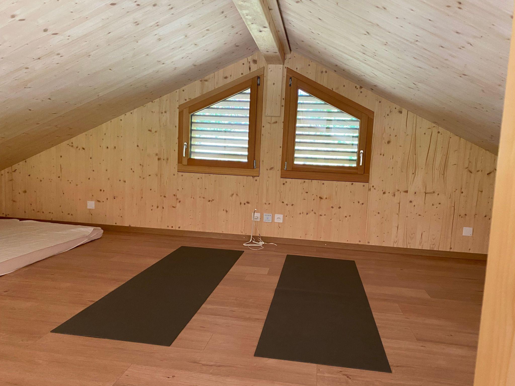 Die Unterkunft: Der Dachboden kann zur Meditation oder als zusätzlicher Schlafbereich genutzt werden. (Yoga-Matten vorhanden) Der Außenbereich verfügt über eine große Terrasse mit wertvollem Mosaiktisch und Sonnenschirm sowie einen Grill hinter dem Haus im Freien. Es gibt viel Holz für den Kamin und Holzkohle für den Grill.