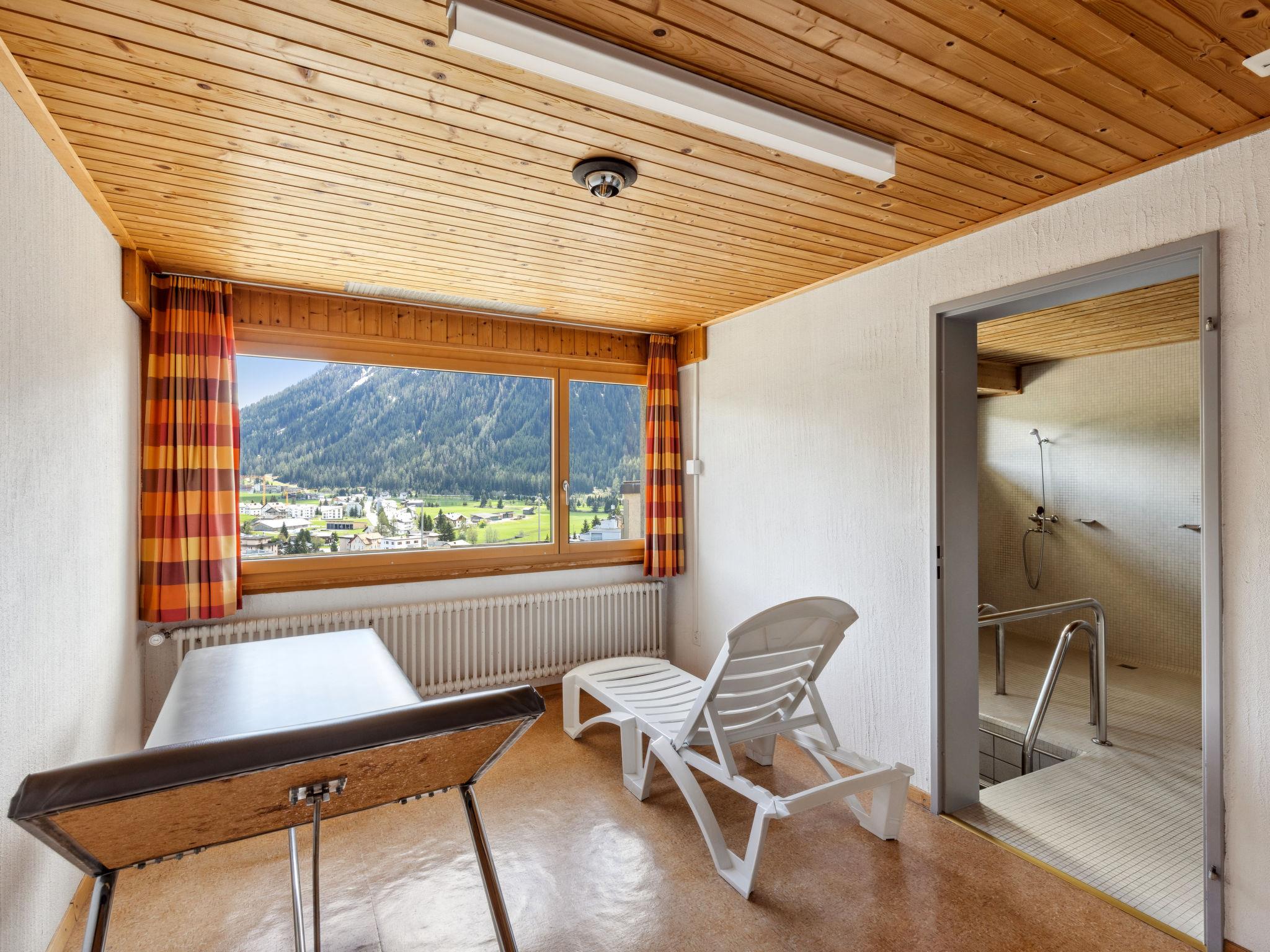 Davos: Appartementhaus "Guardaval (Utoring)". Im Ort, zentrale, ruhige, sonnige Lage am Hang, 1 km vom See, 300 m vom Skigebiet. Zur Mitbenutzung: Hallenbad. Im Hause: Empfang, Aufenthaltsraum mit TV, Wireless LAN, Sauna (extra). Spielzimmer, Fahrstuhl, Skiraum, Zentralheizung, Waschmaschine (zur Mitbenutzung). Brötchenservice und Getränkeservice. Schmale Zufahrt bis zum Haus. Parkplatz (überdacht, beschränkte Anzahl, extra), Gemeinschaftsgarage (extra). Einkaufsgeschäft 300 m, Restaurant 300 m, Bushaltestelle, Bahnstation "Davos Dorf" 400 m, Hallenbad 1 km, Badesee 1 km. Bergeisenbahn, Skisportanlagen, Skipisten, Skischule, Schlittelbahn 1.5 km, Langlaufloipe, Eisfeld 300 m. Bekannte Skigebiete sind gut erreichbar: Parsenn 300 m, Jakobshorn 1.5 km. Das Appartementhaus befindet sich oberhalb der Talstation der Parsennbahn und verfügt über eine herrliche Aussicht. Parkplatz + Garage (Reservierung bei Ankunft).