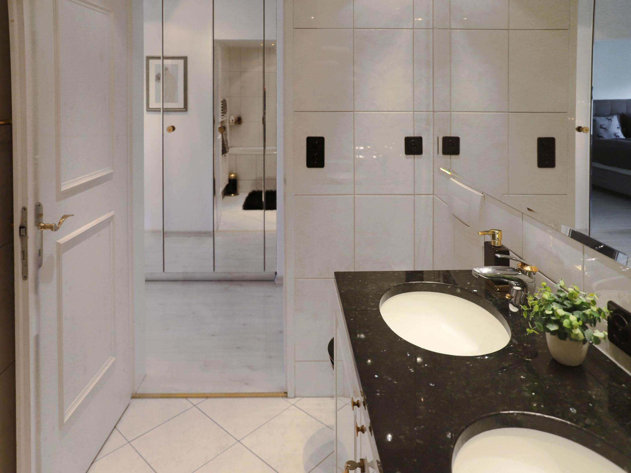 "Allod Park Haus C 401", 3-Zimmer-Wohnung 80 m2 im 4. Stock, Ostlage. Sehr schön und geschmackvoll eingerichtet: Wohn-/Esszimmer mit Esstisch, Kabel-TV und Flachbildschirm. Ausgang zum Balkon, Richtung Osten. 1 Zimmer mit 1 Doppelbett (2 x 90 cm), Flachbildschirm. 1 Doppelzimmer mit 1 Doppelbett (2 x 90 cm). Küche (Backofen, Geschirrspüler, 4 Glaskeramikplatten, elektrische Kaffeemaschine, Kapseln für die Kaffeemaschine (Nespresso) extra). Bad oder Dusche/WC, Doppelwaschbecken. Parkettboden. Schöne Sicht auf die Berge und Park. Zur Verfügung: Internet (WLAN, gratis). Parkplatz (extra) beim Haus. Bitte beachten: für Kleinkinder nicht geeignet. Nichtraucher-Unterkunft. Apt Mit Rollstuhl max 70cm erreichbar. Badezimmer Türe 75cm. 12382