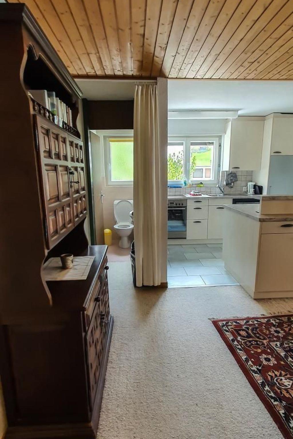 Den Skitag gemütlich in der warmen Stube ausklingen lassen und am Cheminéefeuer erholen. Die Wohnung ist gemütlich eingerichtet und kinderfreundlich. Die Unterkunft kann selbstständig betreten werden, der Schlüssel ist in einem Schlüsselsafe deponiert. Der Code wird vor Anreise bekannt gegeben. Bei der Abreise bitte den Schlüssel wieder zurücklegen. Haustiere sind erlaubt, eine kostenpflichtige Waschmaschine kann in der gemeinsamen Waschküche benutzt werden. Die Wohnung hat 3.5 Zimmer, ein Bad mit WC/Dusche und ein separates WC. Ein Schlafzimmer mit Doppelbett, ein Schlafzimmer mit 3 Betten für Kinder oder auch für Erwachsene geeignet und ein Schlafsofa im Wohnzimmer.