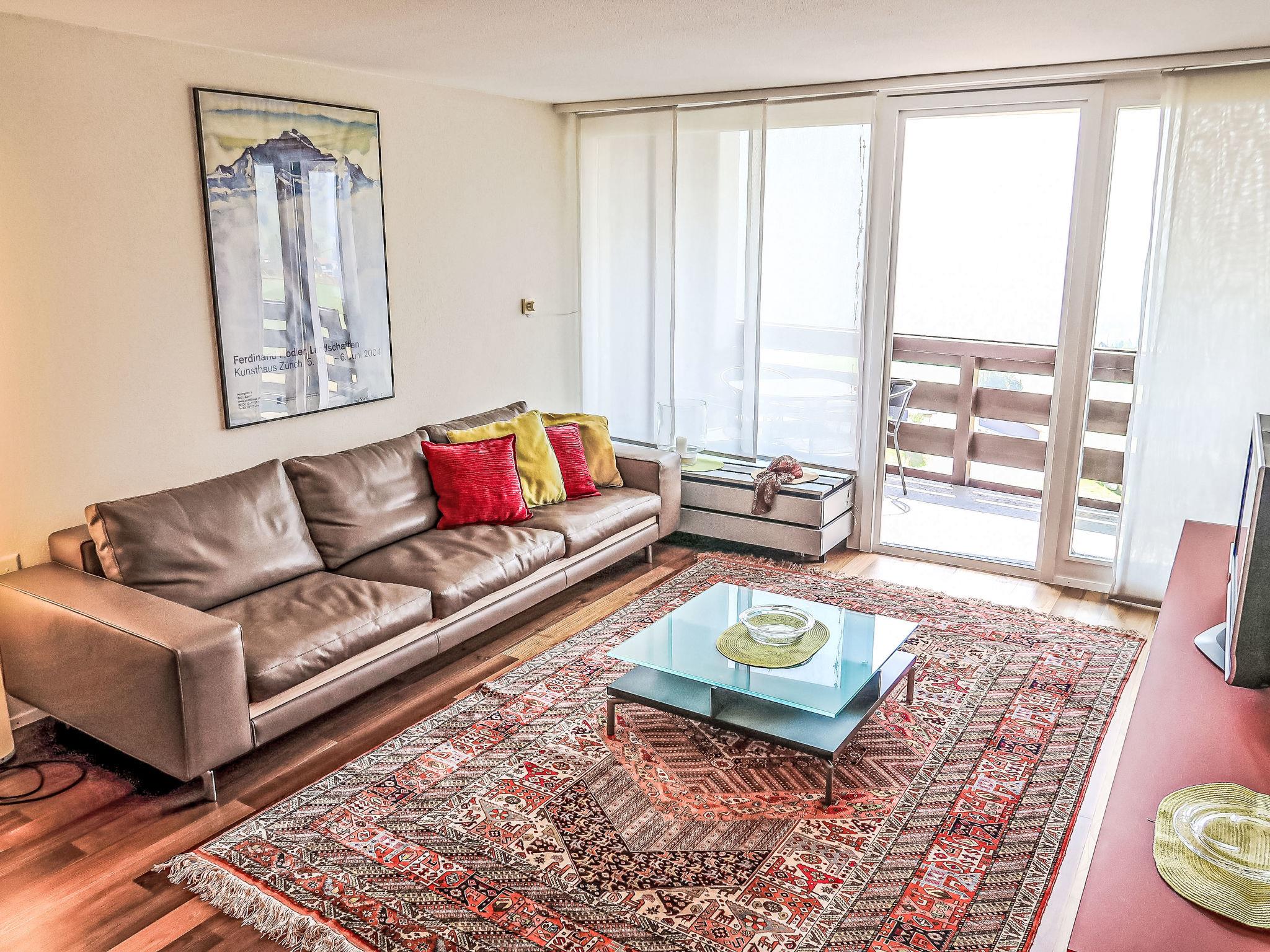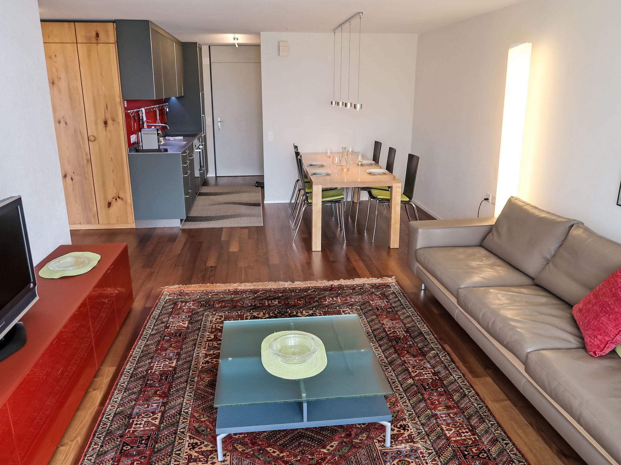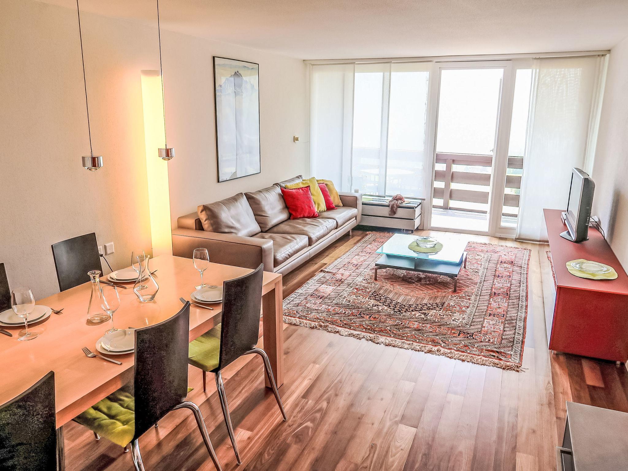 "Apt B 096", 2-Zimmer-Wohnung 63 m2 im 9. Stock. Komfortabel und gemütlich eingerichtet: Wohn-/Esszimmer mit Sat-TV (Flachbildschirm). Ausgang zum Balkon. 1 Zimmer mit 1 Doppelbett (160 cm, Länge 200 cm). Ausgang zum Balkon. Schlafnische mit 2 Betten. Offene Küche (Backofen, Geschirrspüler, 4 Induktionskochplatten, Toaster, elektrische Kaffeemaschine, Kapseln für die Kaffeemaschine (Nespresso) extra, Kombinationsmikrowelle). Bad/WC. Grosser Balkon, Südlage. Balkonmöbel. Schöne Sicht auf die Berge, die Landschaft und Madelsergletscher. Zur Verfügung: Haartrockner. Internet (WLAN, gratis). Bitte beachten: Nichtraucher-Unterkunft. Anstelle eines abgeschlossenen Schlafzimmers befinden sich manche Schlafplätze in einem offenen Bereich (Galerie, Nische etc.).