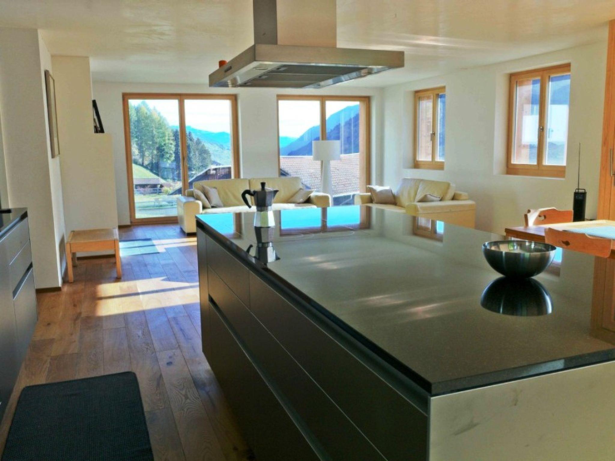 110 m2. Weitere Angaben des Anbieters: Die 4.5 Zimmer-Wohnung wurde im 2011 neu gebaut und ist luxuriös und gemütlich eingerichtet. In der offenen Küche zum Ess- und Wohnraum hin, lässt sich gut auf der Bulhaup b3 Küche kochen, welche auch bei der Austattung keine Wünsche offen lässt. 3 Doppelschlafzimmer (Doppel- und Einzelbetten), 1 davon mit Regendusche, WC und Waschbecken ausgerüstet. Ein weiteres Badzimmer mit Badwanne mit Duschmöglichkeit und WC. Wohnraum mit Cheminée, High Speed Internet, WLAN, Internet Radio/MP3 und LED TV Digital, sowie Apple TV. Bad- und Küchenwäsche im Preis inbegriffen. Bodenbelag: Alle Zimmer Naturholz