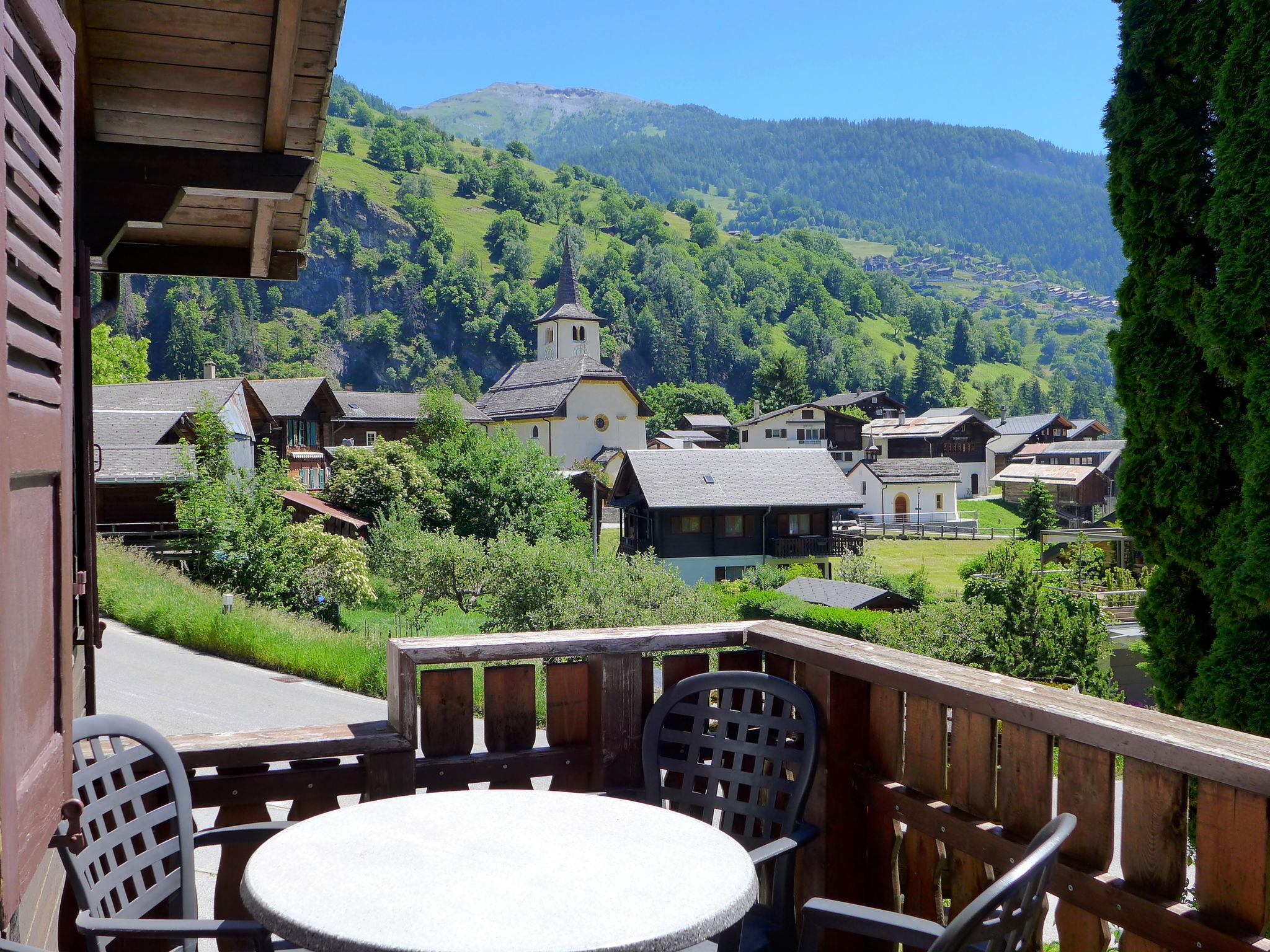 "Zur Säge", 3-Zimmer-Wohnung 47 m2 im 1. Stock. Hell, einfach und komfortabel eingerichtet: Wohnzimmer mit Digital-TV und Radio. Ausgang zum Balkon. 1 Doppelzimmer mit 1 Doppelbett (2 x 90 cm, Länge 200 cm). 1 Zimmer mit 2 Betten (90 cm, Länge 200 cm). Kleine, offene Küche (Backofen, Geschirrspüler, 4 Glaskeramikplatten, Wasserkocher, Mikrowelle, elektrische Kaffeemaschine, Racletteofen, Fondue Set (Käse)) mit Esstisch. Bad/WC. E-Heizung. Balkon, Südlage. Balkonmöbel. Schöne Sicht auf die Berge, die Landschaft und die Ortschaft. Zur Verfügung: Haartrockner. Internet (WLAN, gratis). Bitte beachten: Nichtraucher-Unterkunft.