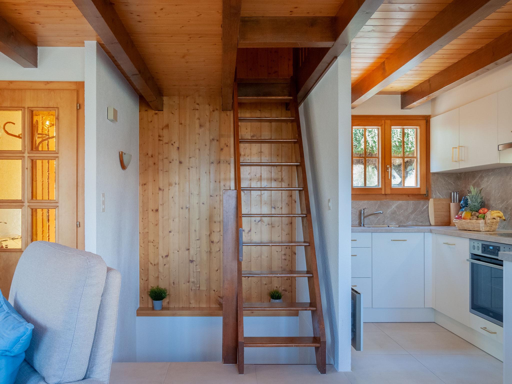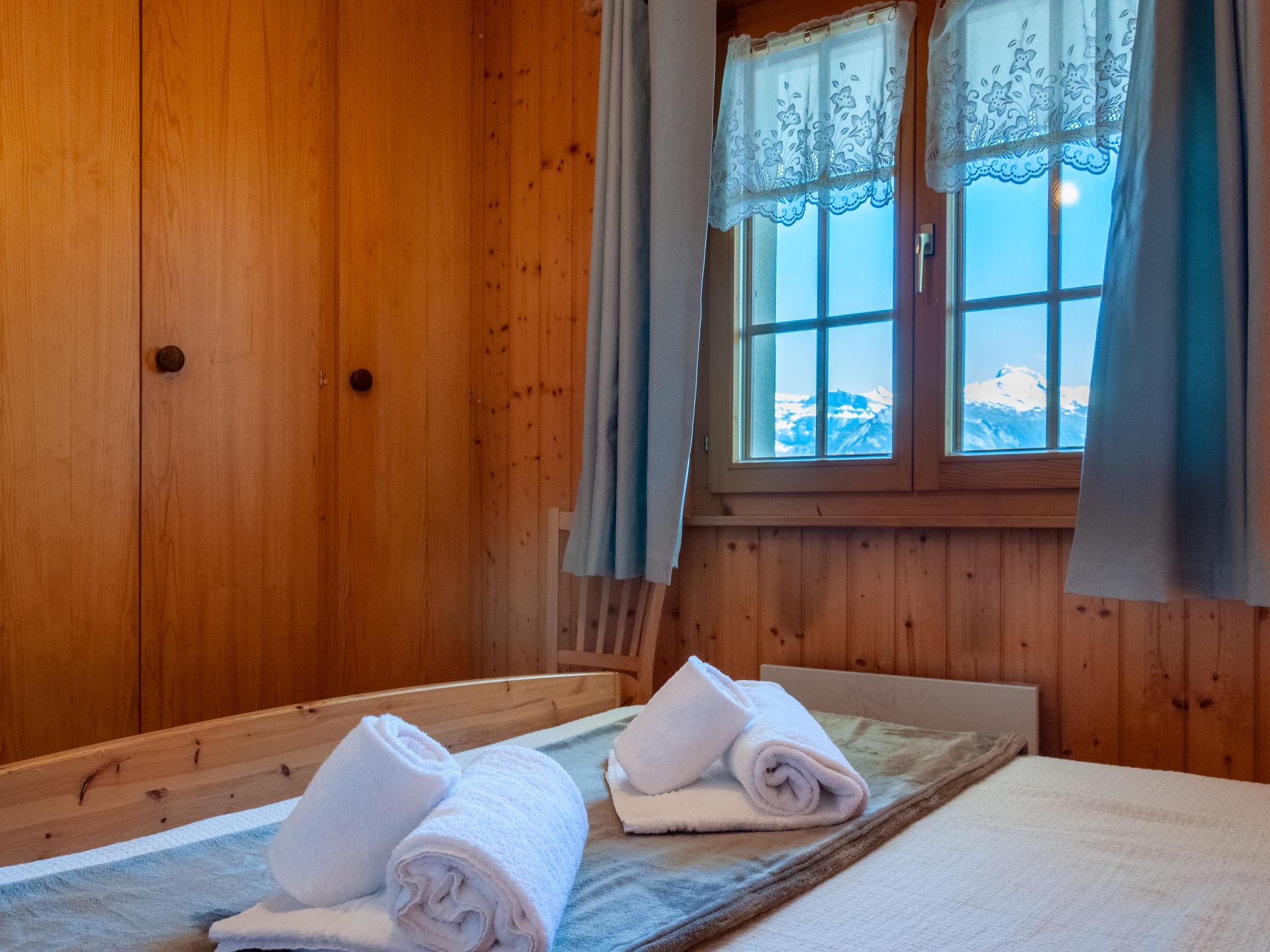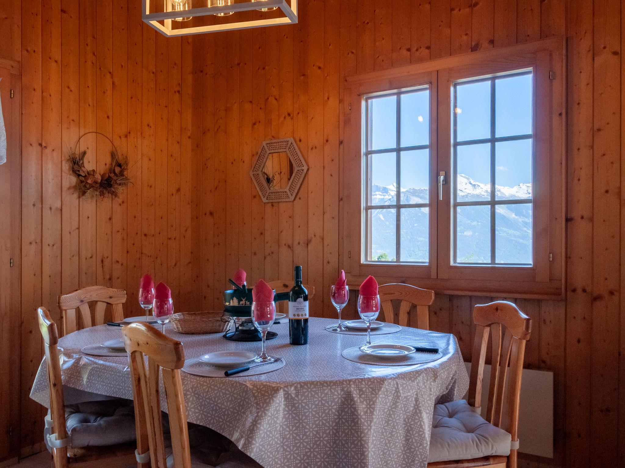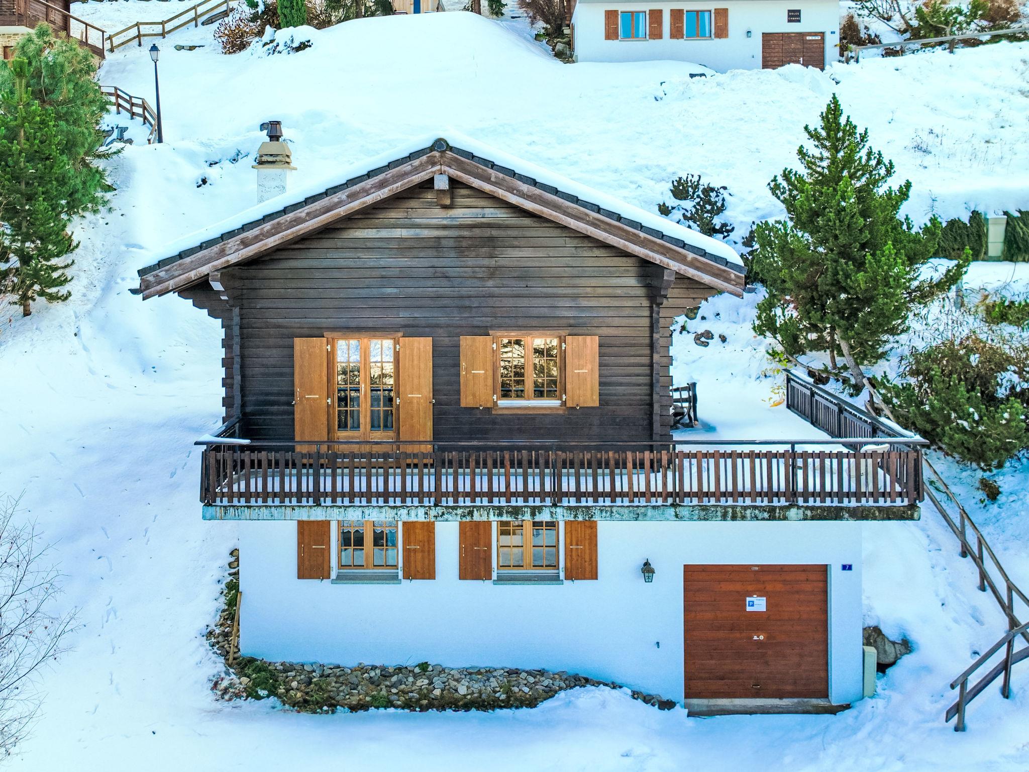 "Anusach", 3-Zimmer-Chalet 80 m2 auf 2 Stockwerken. Teilweise renoviert im Jahre 2022, komfortabel und mit viel Holz eingerichtet: kleiner Eingang. Wohn-/Esszimmer mit Schwedenofen und Kabel-TV. Ausgang zur Terrasse, Richtung Norden und Richtung Westen. Offene Küche (Backofen, Geschirrspüler, 4 Glaskeramikplatten, Toaster, Wasserkocher, Mikrowelle, elektrische Kaffeemaschine, Racletteofen, Fondue Set (Käse)). Dusche/WC. E-Heizung. Unteres Geschoss: 1 Zimmer mit 1 franz. Bett (1 x 160 cm, Länge 200 cm). 1 Zimmer mit 1 x 2 Etagenbetten (90 cm, Länge 190 cm). Bad/WC. Obergeschoss: (steile Treppe) abgeschrägte, offene Galerie mit 2 Betten (90 cm, Länge 190 cm). Terrasse, Nordlage. Sehr schöne Sicht auf die Berge und das Tal. Zur Verfügung: Waschmaschine, Haartrockner. Internet (Wireless LAN, gratis). Garage (1 Auto), Höhe 200 cm, Breite 225 cm. Bitte beachten: Nichtraucher-Unterkunft. 1 kleines Haustier/Hund erlaubt. Anstelle eines abgeschlossenen Schlafzimmers befinden sich manche Schlafplätze in einem offenen Bereich (Galerie, Nische etc.).