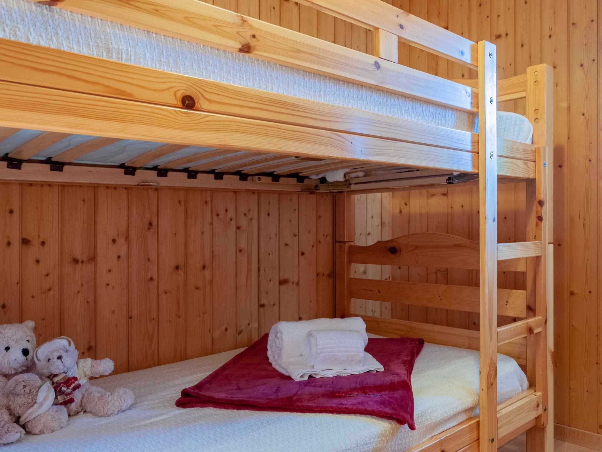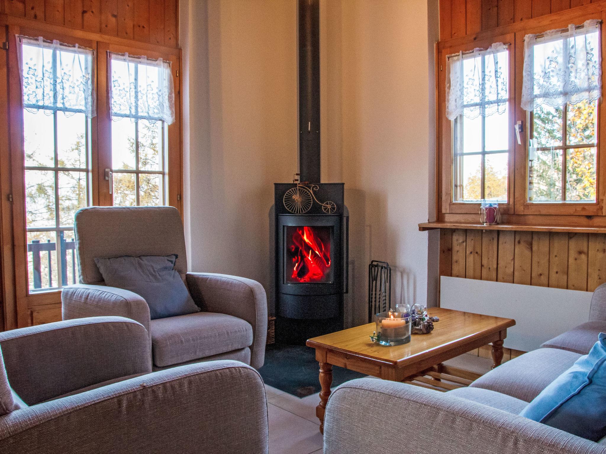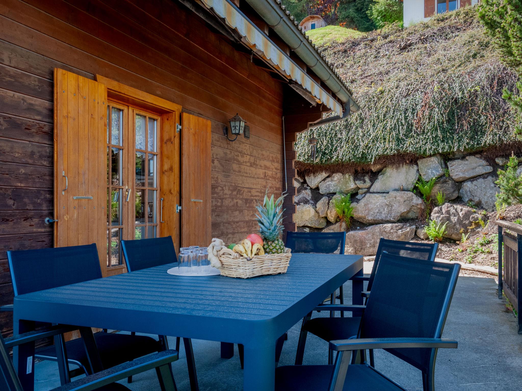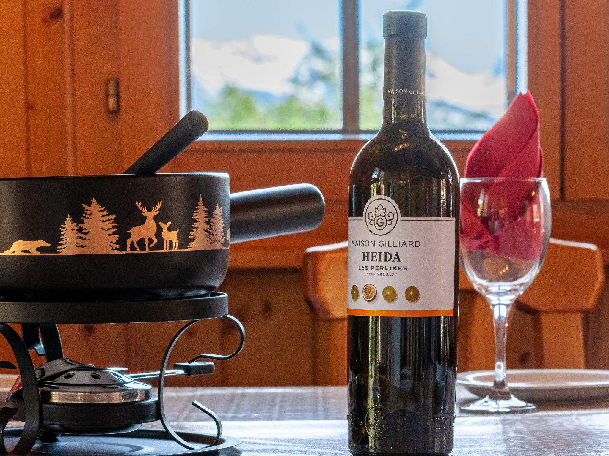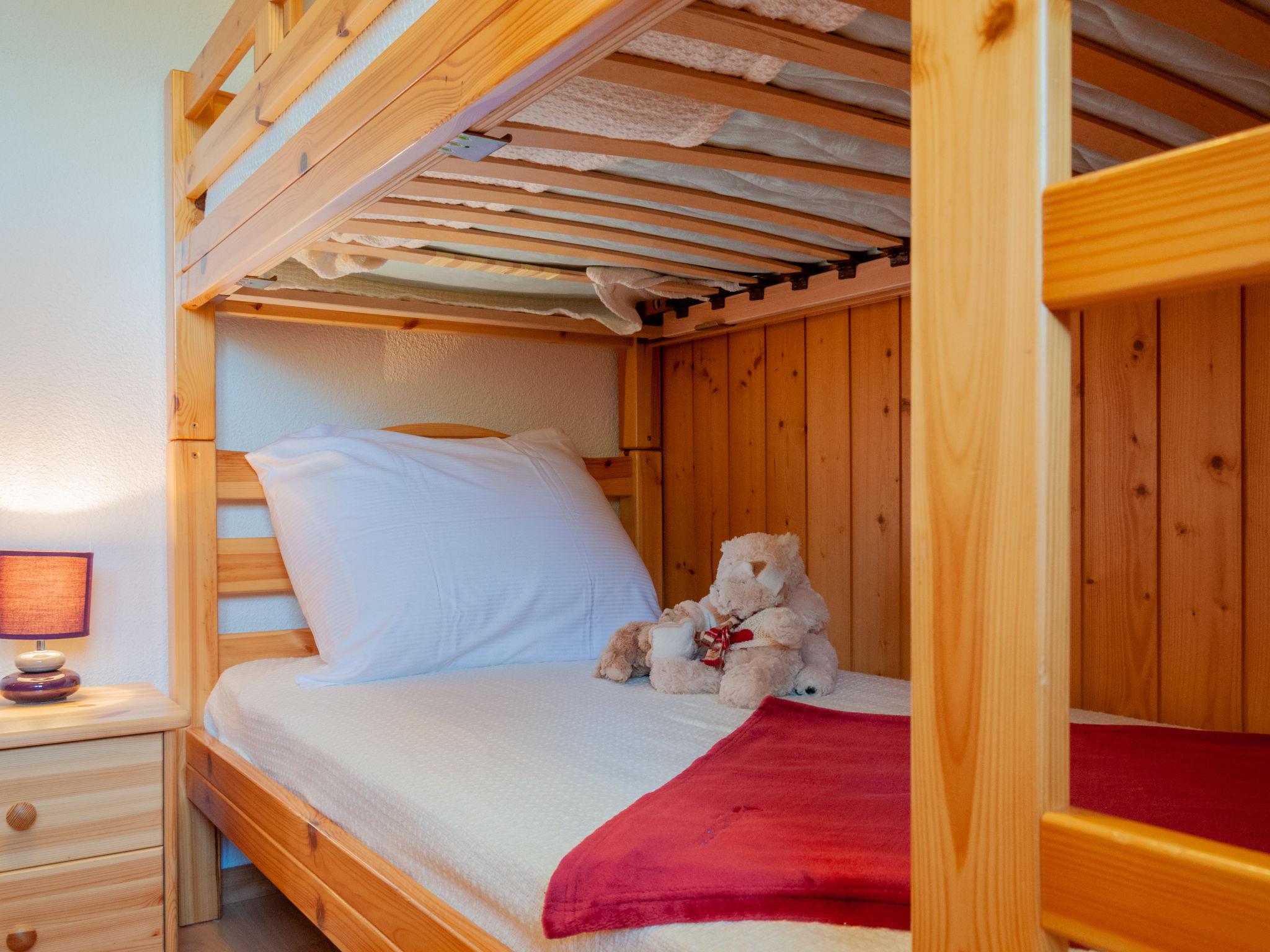 "Anusach", 3-Zimmer-Chalet 80 m2 auf 2 Stockwerken. Teilweise renoviert im Jahre 2022, komfortabel und mit viel Holz eingerichtet: kleiner Eingang. Wohn-/Esszimmer mit Schwedenofen und Kabel-TV. Ausgang zur Terrasse, Richtung Norden und Richtung Westen. Offene Küche (Backofen, Geschirrspüler, 4 Glaskeramikplatten, Toaster, Wasserkocher, Mikrowelle, elektrische Kaffeemaschine, Racletteofen, Fondue Set (Käse)). Dusche/WC. E-Heizung. Unteres Geschoss: 1 Zimmer mit 1 franz. Bett (1 x 160 cm, Länge 200 cm). 1 Zimmer mit 1 x 2 Etagenbetten (90 cm, Länge 190 cm). Bad/WC. Obergeschoss: (steile Treppe) abgeschrägte, offene Galerie mit 2 Betten (90 cm, Länge 190 cm). Terrasse, Nordlage. Sehr schöne Sicht auf die Berge und das Tal. Zur Verfügung: Waschmaschine, Haartrockner. Internet (Wireless LAN, gratis). Garage (1 Auto), Höhe 200 cm, Breite 225 cm. Bitte beachten: Nichtraucher-Unterkunft. 1 kleines Haustier/Hund erlaubt. Anstelle eines abgeschlossenen Schlafzimmers befinden sich manche Schlafplätze in einem offenen Bereich (Galerie, Nische etc.).