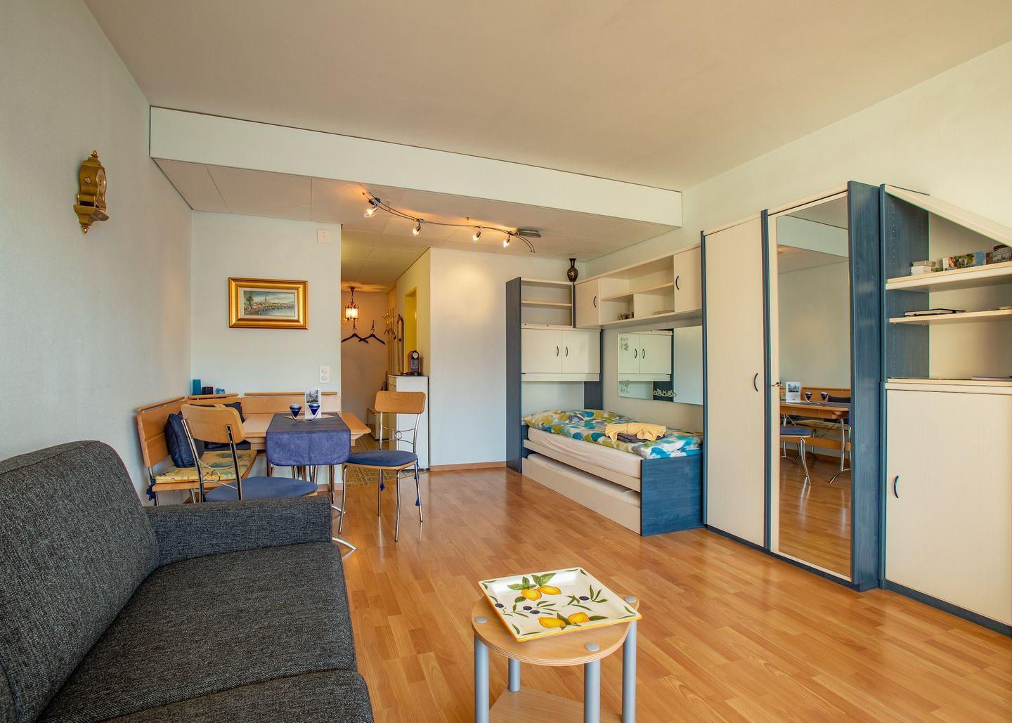 Wohn-, Ess- und Schlafzimmer mit Bettsofa (160x195).