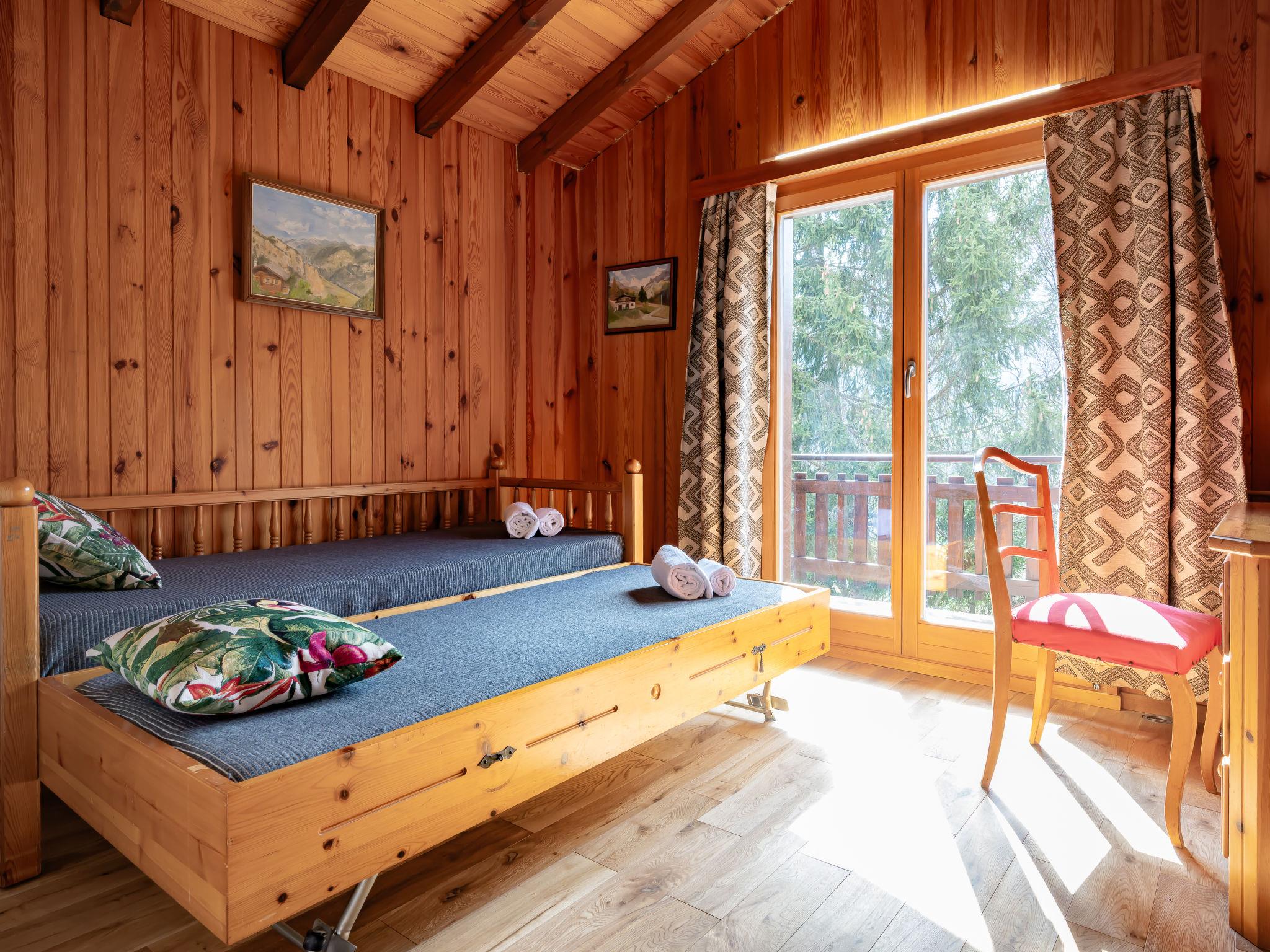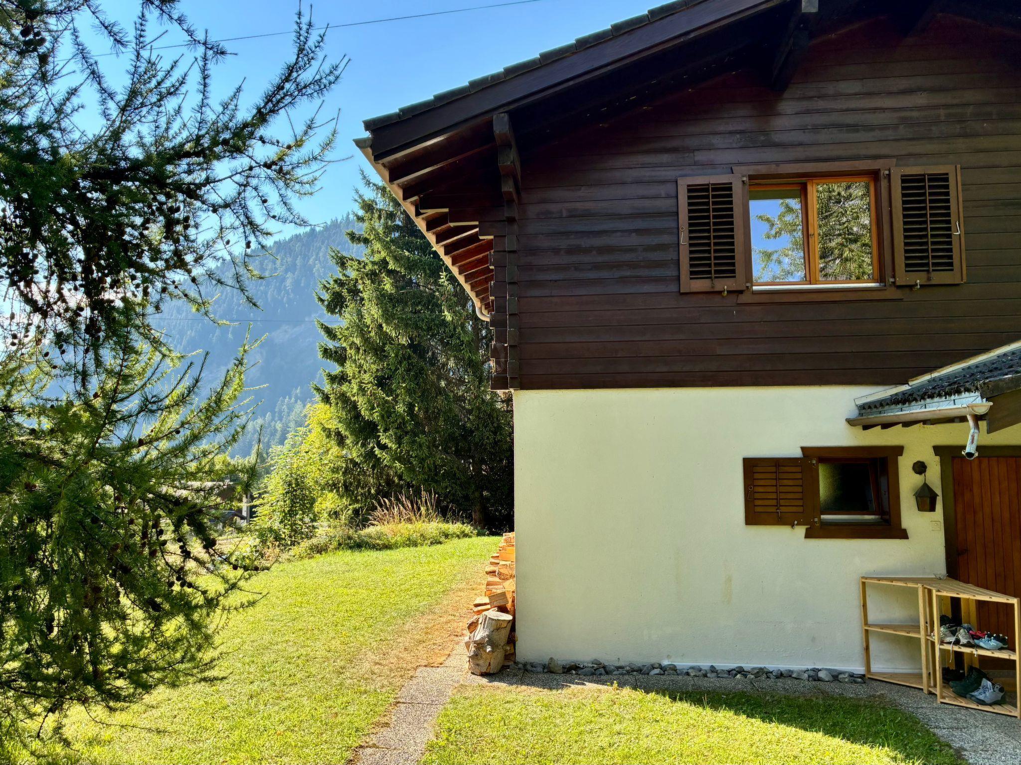"Chalet Le Katanga", 4-Zimmer-Chalet 102 m2 auf 2 Stockwerken. Teilweise renoviert im Jahre 2025, komfortabel und schön eingerichtet: Eingang mit sep. WC. Wohn-/Esszimmer mit offenem Kamin, Kabel-TV, Stereoanlage und Warmluftheizung. Ausgang zur Terrasse, Richtung Süden. Offene Küche (Backofen, Geschirrspüler, 4 Glaskeramikplatten, Toaster, Wasserkocher, elektrische Kaffeemaschine, Kapseln für die Kaffeemaschine (Nespresso) extra, Racletteofen, Fondue Set (Käse)). Ausgang zur Terrasse, Richtung Südwesten. Obergeschoss: 1 Kinderzimmer mit 1 x 2 Etagenbetten (80 cm, Länge 190 cm), Heizofen. 1 Zimmer mit 2 Betten (90 cm, Länge 190 cm), Heizofen. Ausgang zum Balkon, Richtung Süden. 1 Zimmer mit 1 Ausziehbett (2 Pers. 2 x 80 cm, Länge 190 cm), Heizofen. Ausgang zum Balkon, Richtung Süden. Bad/WC. E-Heizung. Parkettboden, Teppichboden. Grosse Terrasse, Südlage, grosser, Rasen. Terrassenmöbel, Gartengrill, Liegestühle (2). Schöne Panoramasicht auf die Berge. Zur Verfügung: Kinderhochstuhl, Babybett bis 3 Jahre, Haartrockner. Internet (WLAN, gratis). Parkplatz (2 Autos) in 20 m. Bitte beachten: geeignet für Familien. Nichtraucher-Unterkunft.