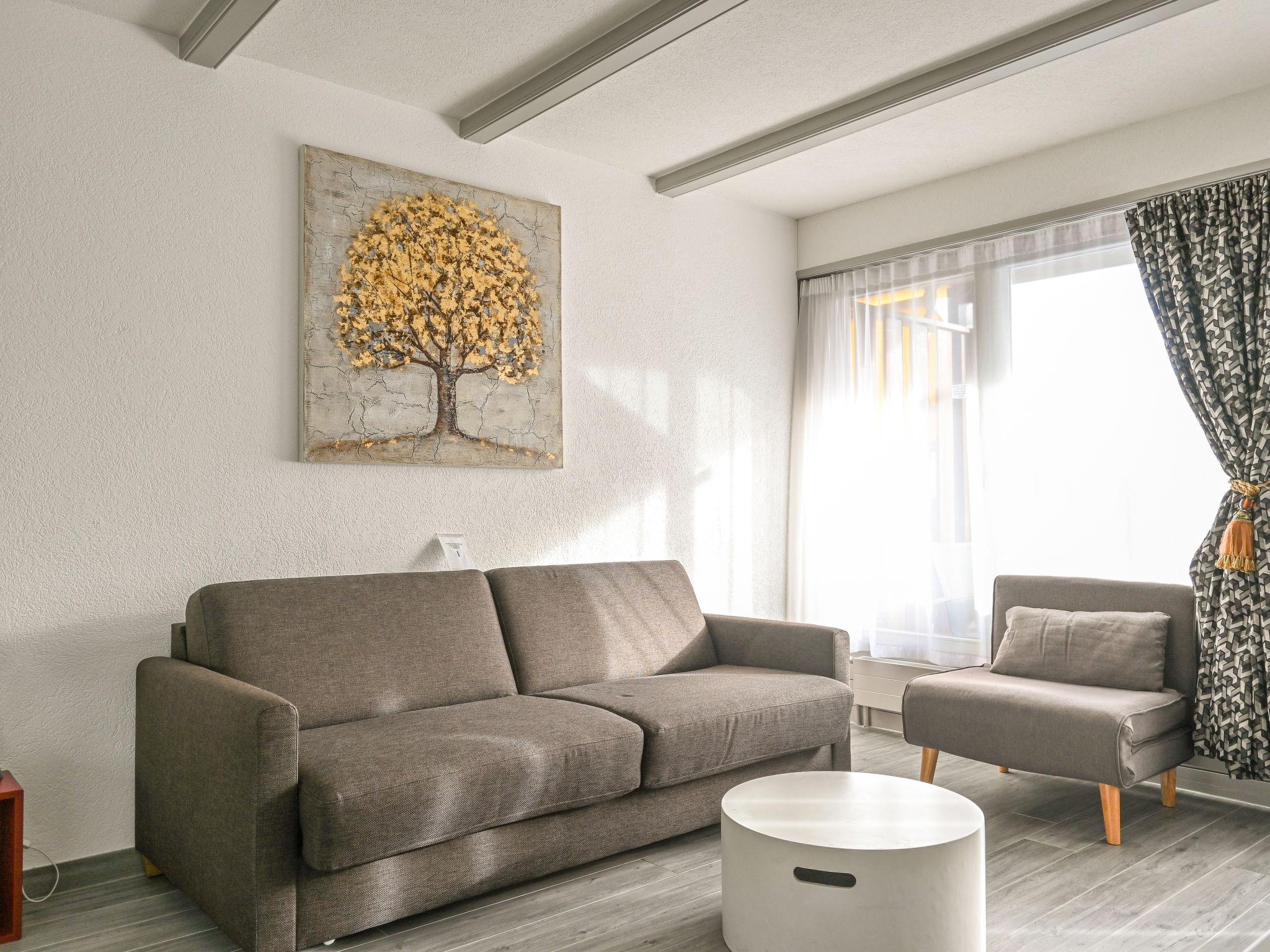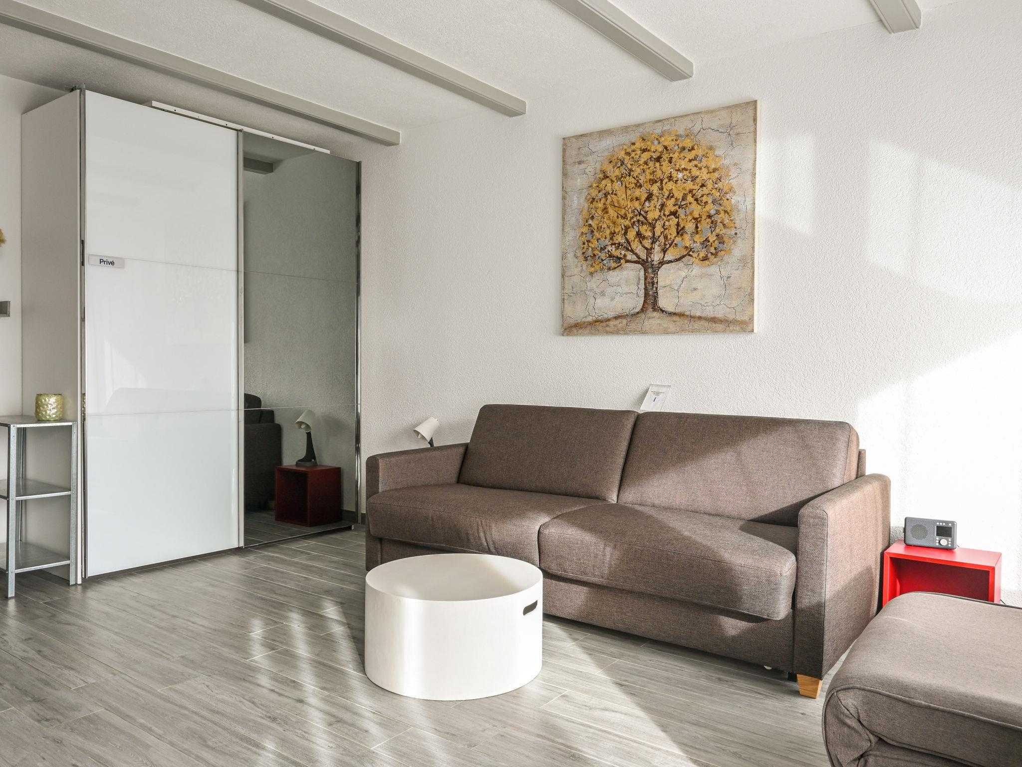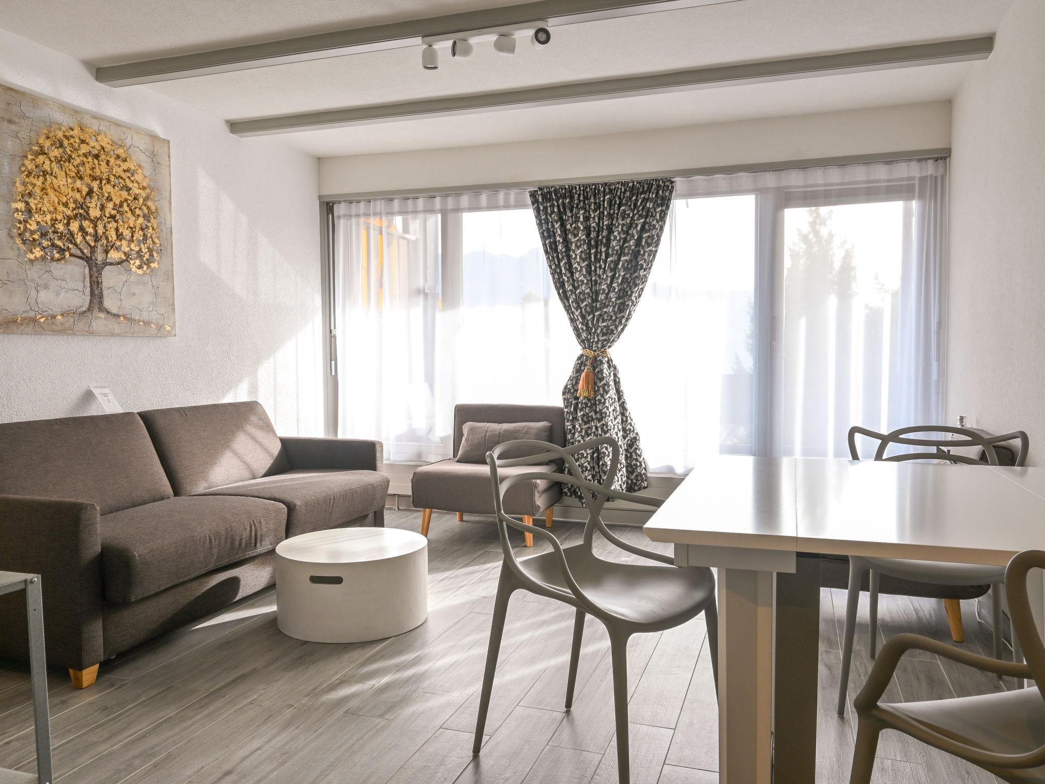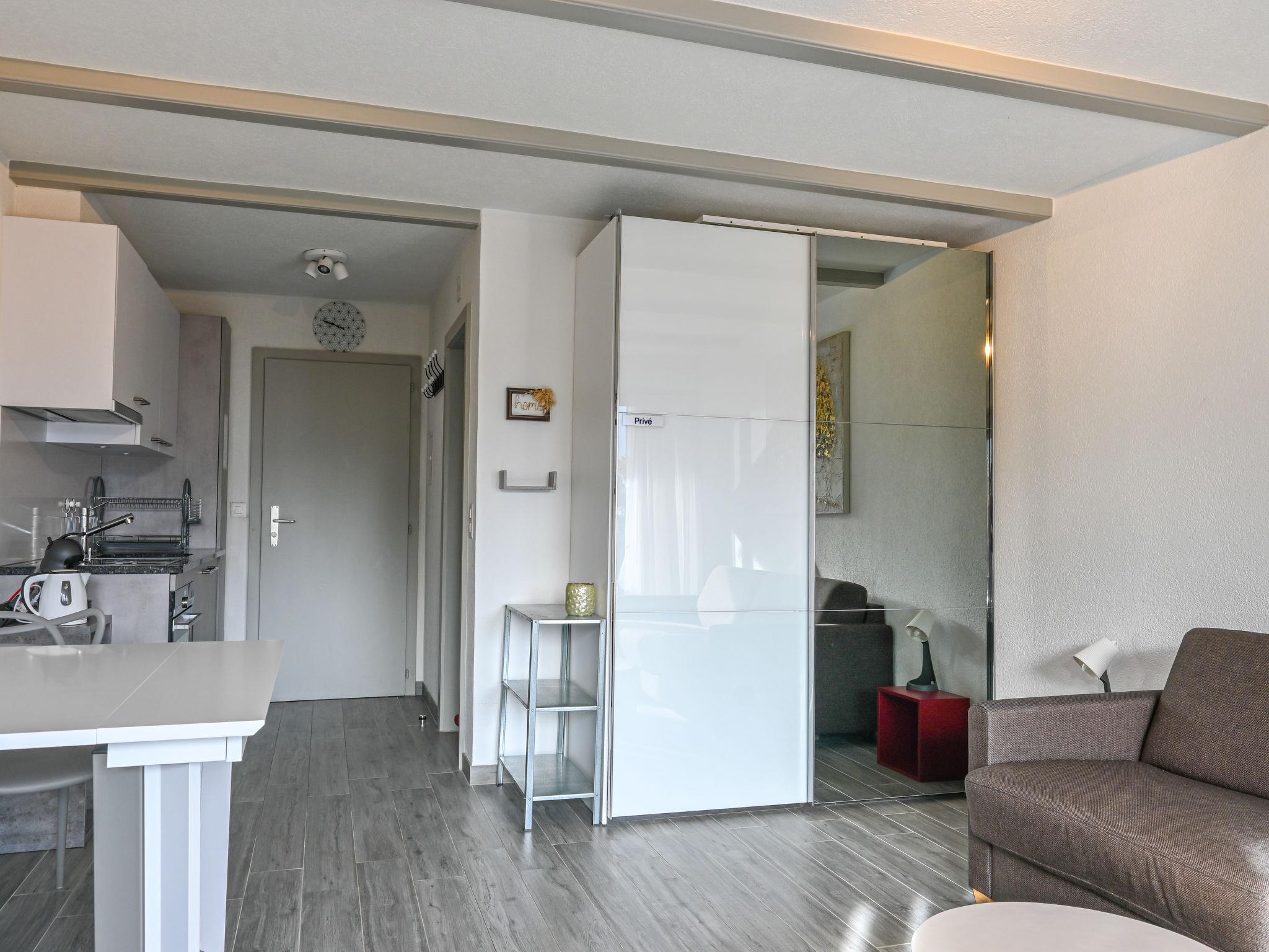 "Orion RS6", 1-Zimmer-Studio 28 m2, im erhöhten Erdgeschoss, Südlage. Vollständig renoviert, komfortabel und modern eingerichtet: Wohnzimmer mit 1 Doppeldiwanbett (180 cm, Länge 190 cm). Ausgang zum Balkon, Richtung Süden. Küche (Backofen, 4 Induktionskochplatten, Wasserkocher, elektrische Kaffeemaschine, Kapseln für die Kaffeemaschine (Dolcegusto) extra, Fondue Set (Chinoise, Käse)) mit Esstisch. Dusche/WC. Kleiner Balkon 6 m2, Südlage. Balkonmöbel. Sehr schöne Sicht auf die Berge. Zur Verfügung: Haartrockner. Internet (Wireless LAN, gratis). Parkplatz (eingezäunt, 1 Auto). Bitte beachten: Nichtraucher-Unterkunft.