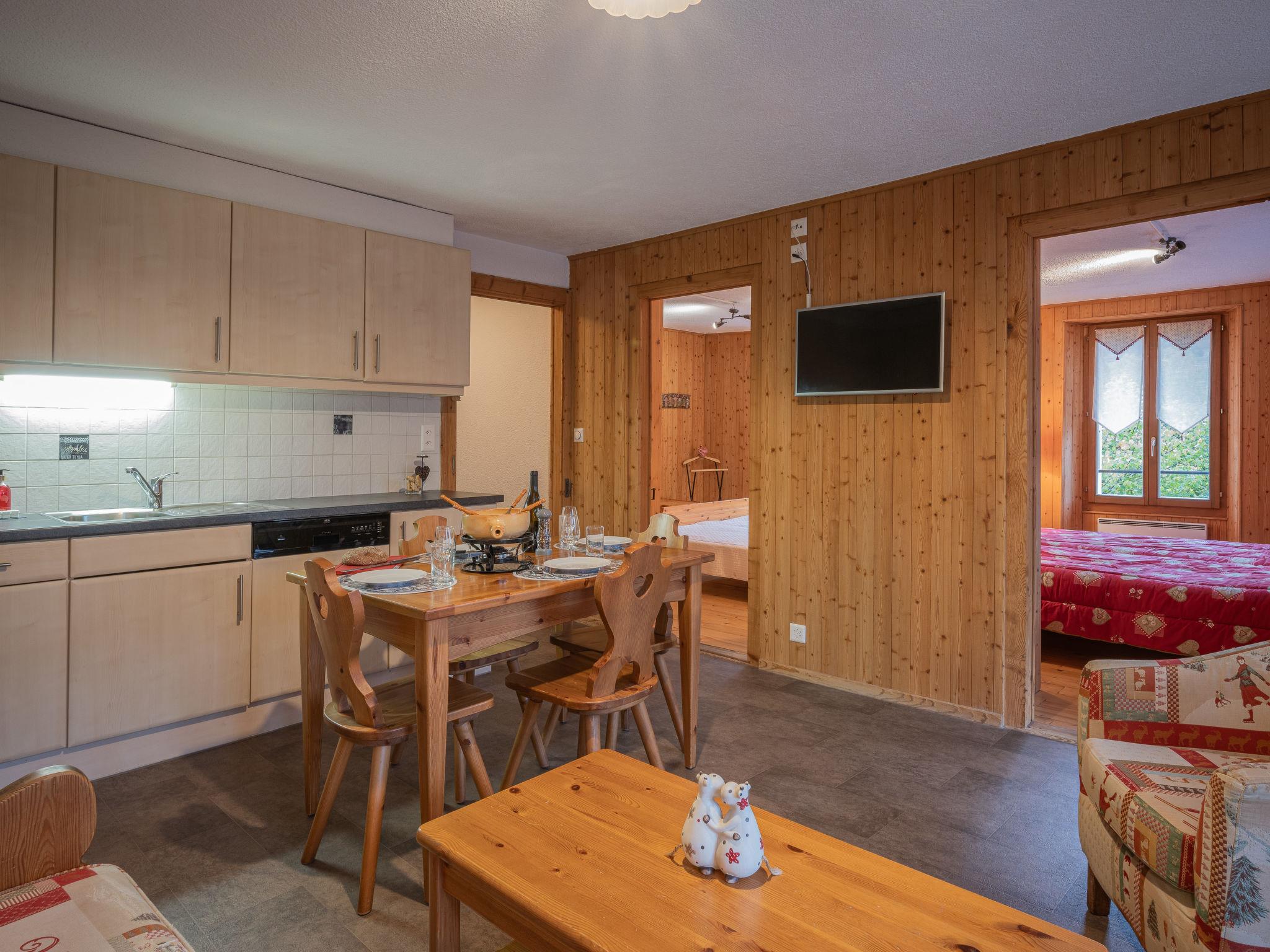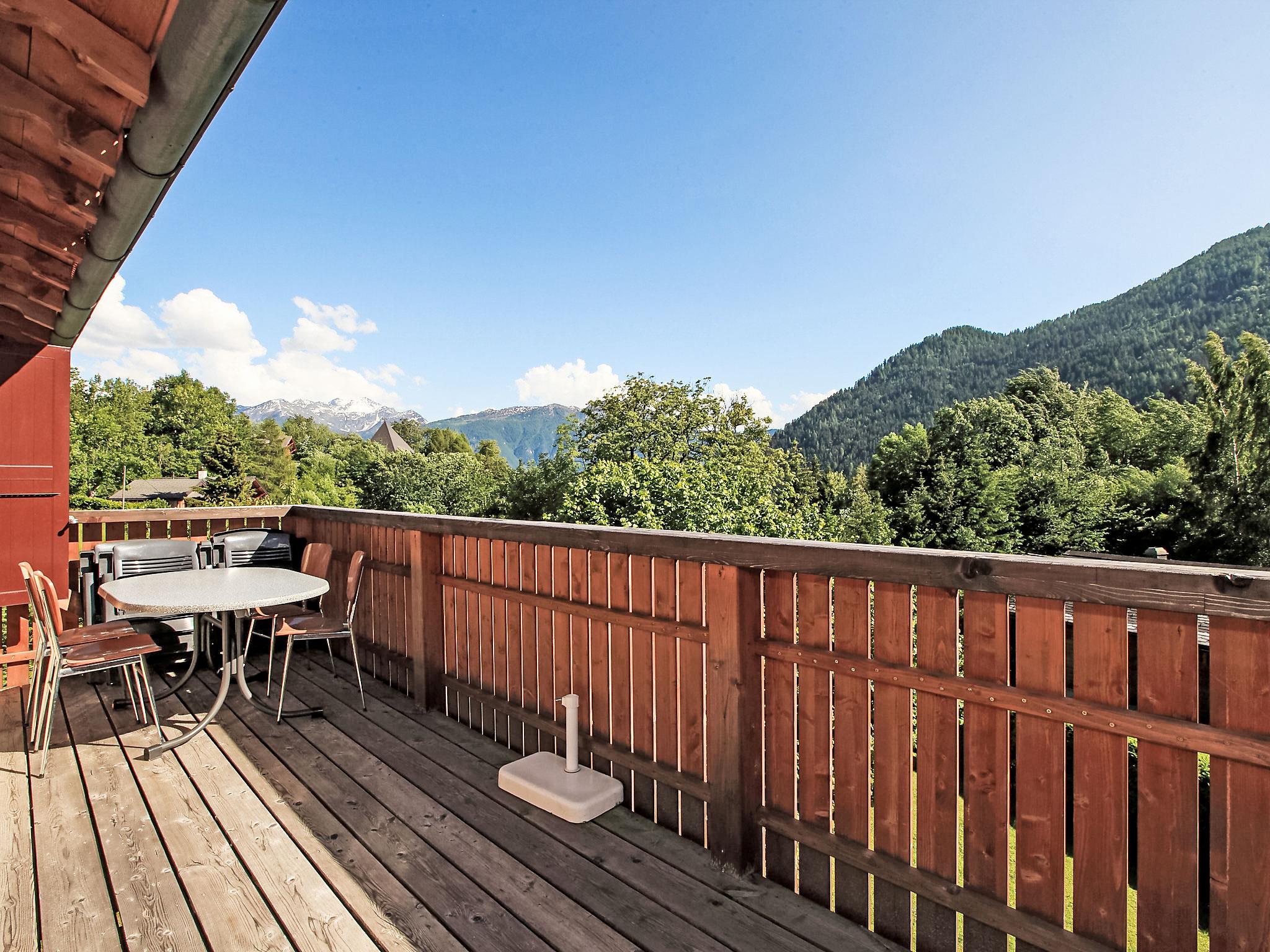 "Vers Saille", 3-Zimmer-Reihenhaus 55 m2, im Obergeschoss. Komfortabel und schön eingerichtet: Wohn-/Esszimmer mit Esstisch, Kabel-TV, Radio, CD und E-Heizung. Ausgang zum Balkon, Richtung Südwesten. 1 Zimmer mit 2 Betten (90 cm, Länge 200 cm). 1 Zimmer mit 1 Doppelbett (180 cm, Länge 200 cm). Offene Küche (Backofen, Geschirrspüler, Racletteofen, Fondue Set (Käse)). Dusche/WC. Balkon Terrasse 40 m2, Rasen. Terrassenmöbel, Balkonmöbel. Schöne Sicht auf die Berge. Zur Verfügung: Internet (Wireless LAN, gratis). Parkplatz beim Haus. Bitte beachten: Nichtraucher-Unterkunft. Eigener Eingang.