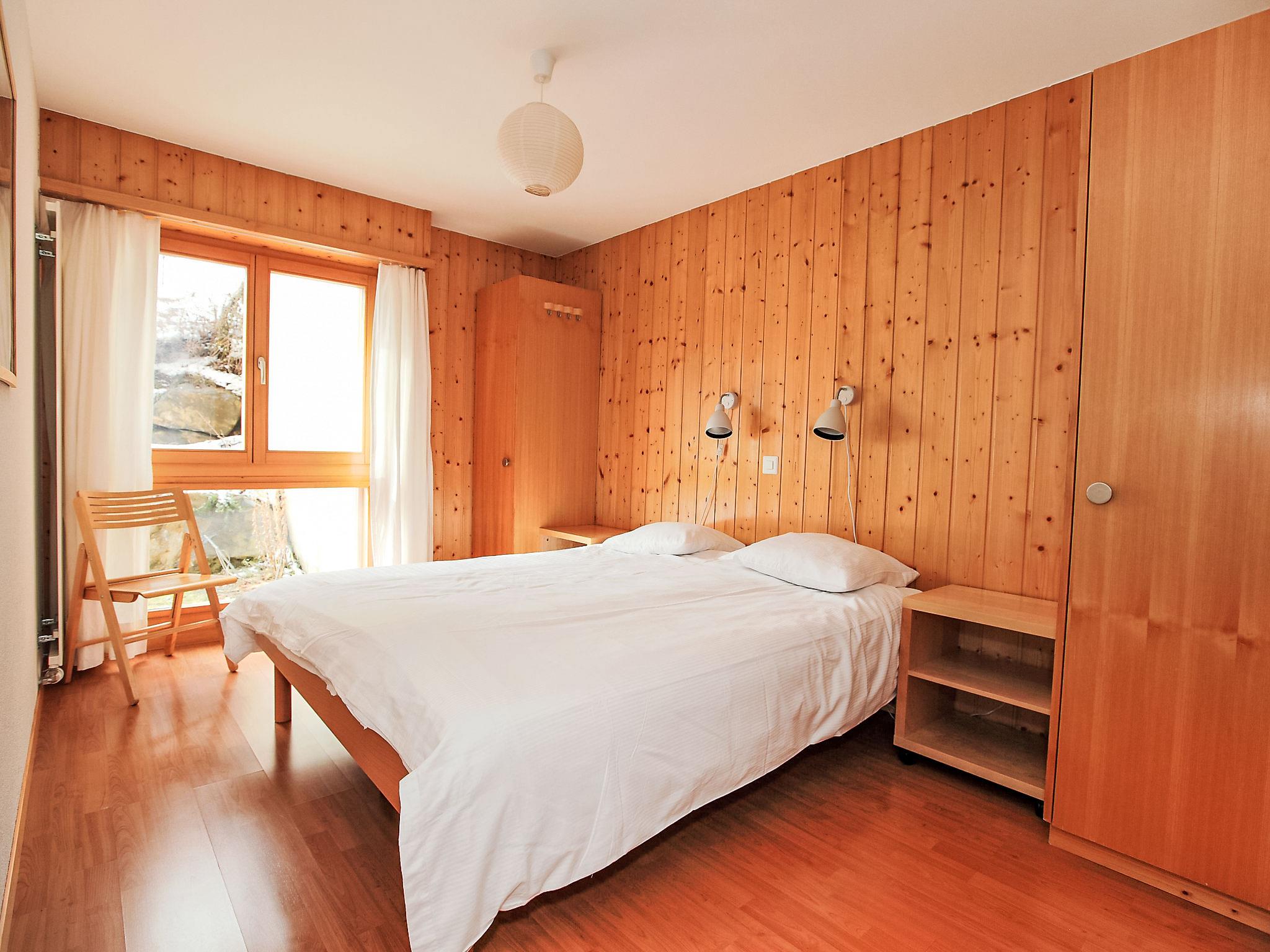 "Fénestral R01", 3-Zimmer-Wohnung 70 m2, im Erdgeschoss. Wohn-/Esszimmer mit 1 Doppeldiwanbett, Esstisch, Kabel-TV und DVD. Ausgang zur Terrasse, Richtung Südwesten. 2 Zimmer, jedes Zimmer mit 2 Betten (90 cm, Länge 200 cm). (Geschirrspüler, 4 Glaskeramikplatten, Mikrowelle, elektrische Kaffeemaschine, Kapseln für die Kaffeemaschine (Nespresso) extra, Fondue Set (Käse)). Bad/WC, Dusche/WC. Terrasse. Terrassenmöbel. Schöne Sicht auf die Berge. Zur Verfügung: Internet (Wireless LAN, gratis). Garage Nr. R0 1. Geeignet für Familien.